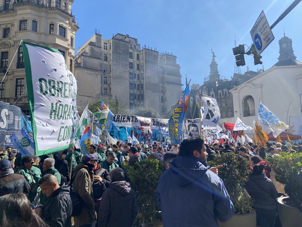 From there we planned to walk to the central plaza de Mayo, but somehow the street got fuller and fuller of people with huge posters in their hands.. and faster than we could see we were in the middle of a huge protest of many different groups against the new laws of the current president. Compared to political protests there were wayyyy more flags and every 100 meters there was a barbecue where you could get freshly grilled Choripan. Although being impressed by the protests we felt the tension and made our way out of there as fast as we could to