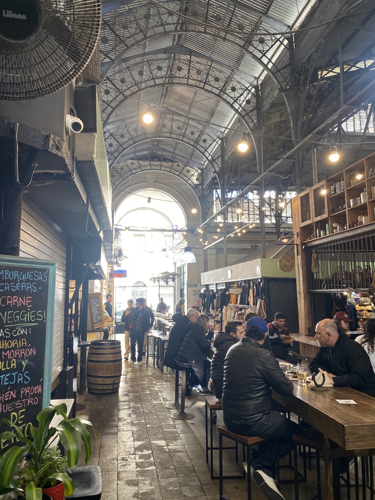 It is a very old roofed market which reminded us a little of Markthalle 9 in Kreuzberg in Berlin. For whatever reason it was pretty empty but not too empty so we could fully soak in the beautiful architecture, the smells and the noises of this market. We sat down at a crowded Choripan place and had yet another amazing Choripan with a beer (The beers here in Argentina are mostly really really good)