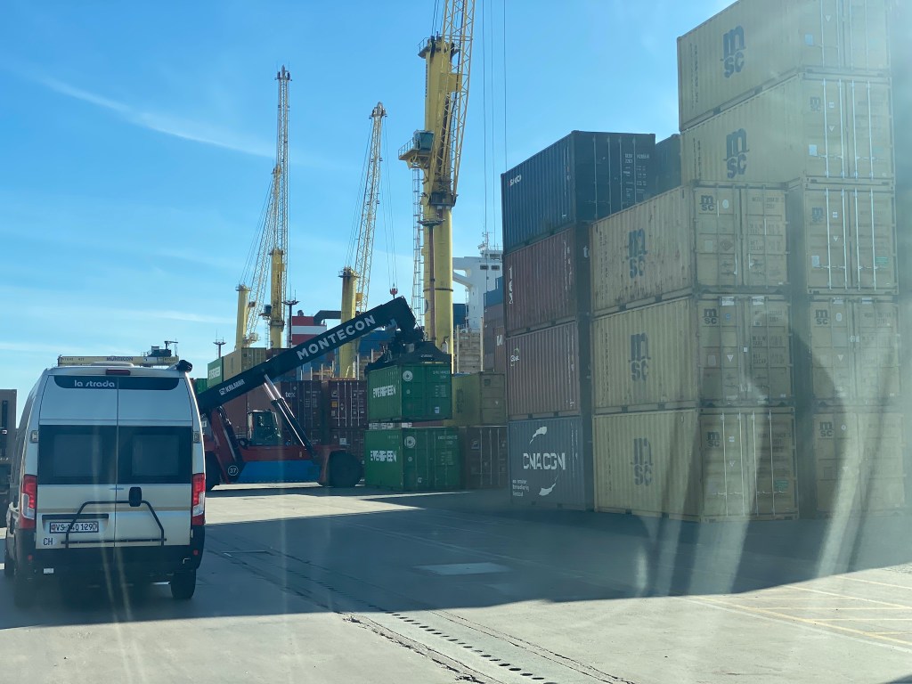 After waiting for such a long time for the ship to arrive it was crazy to see that we could actually see it from our Apartment window and a few hours later would track again the GPS that we had hidden in Rosi. (Check out extra page we built to introduce Rosi) So we knew the van was safely on land. Next steps was  to handle all the important organisational steps: