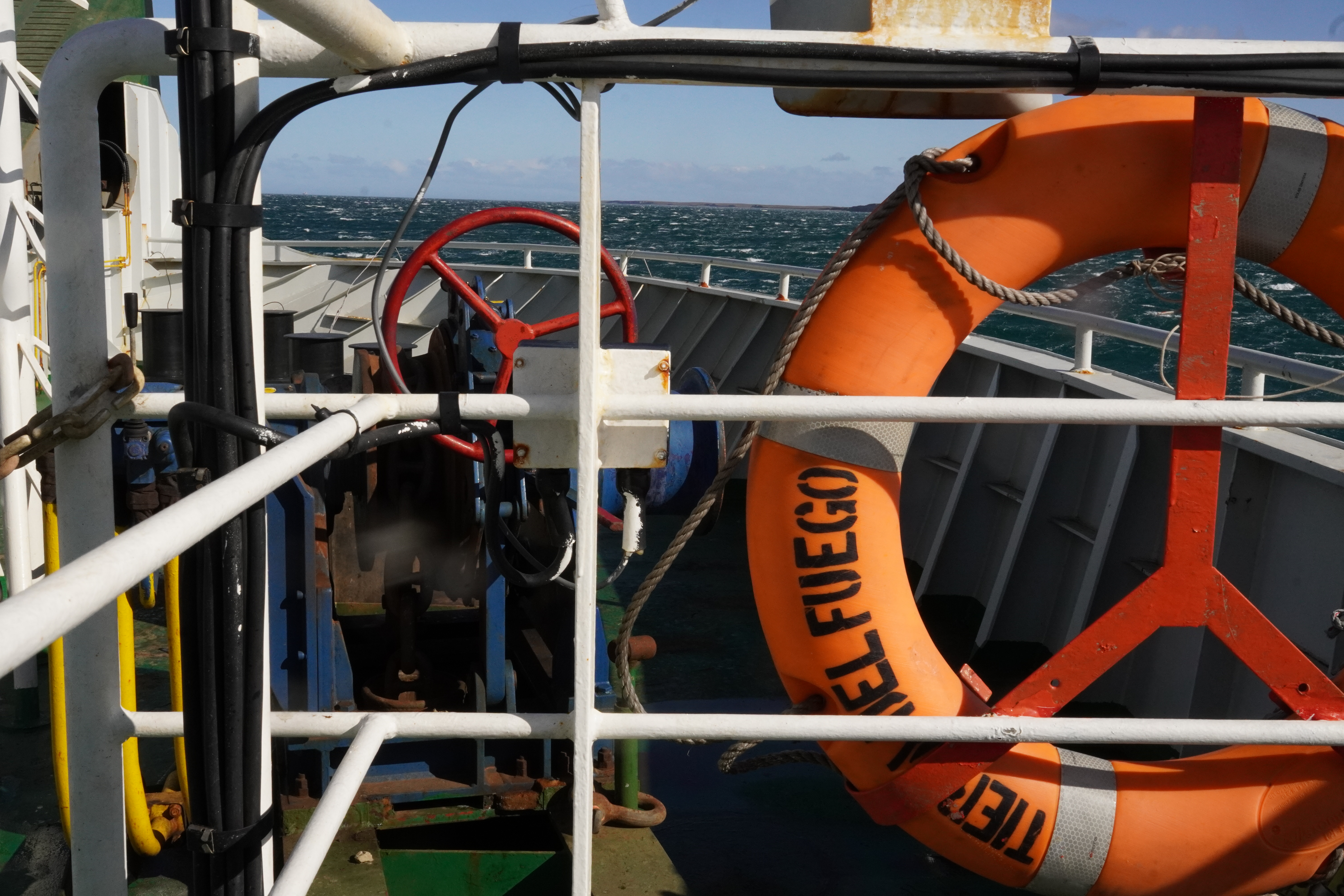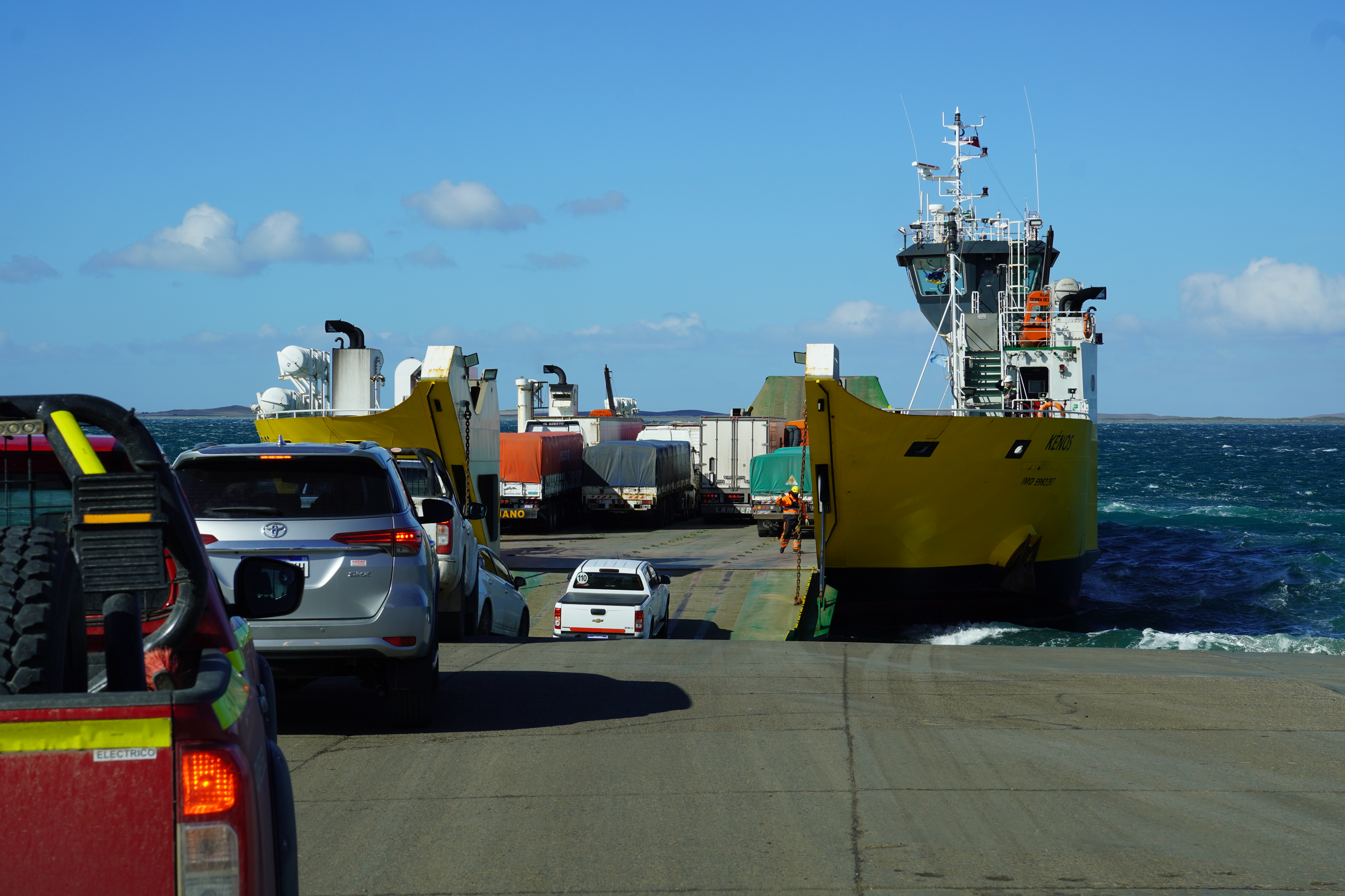 Shörtly after came Monte Ayond, the first border crossing. We checked out ourselves and Rosi, and a young customs officer looked into the fridge, nodding us and the potatoes through. After 60km and a very windy drive, we arrived at the ferry terminal. Crossing the Magellan Strait. Imagine this: the road ends, and you just line up. Cars and campers (we had the only camper van) on the left, trucks on the right. That’s it. Everyone waits for the next ferry. There’s no terminal, the road just leads straight to the water. We waited about 20 minutes and looked at the lighthouse. We drove onto the ferry, paid on the ferry (about €25) as it was already moving, and put the ticket on the windshield. There was a small shop on board, but it only accepted cash. Since we didn’t have any Chilean money, we couldn’t buy anything. A kind Chilean gave us a coffee for free, and I was so grateful for the really good espresso. On the outer deck, the wind was so strong, and the waves sometimes splashed water onto the deck. The crossing took about 30 minutes. The ferry doesn’t run in strong winds. We wondered what “strong wind” actually meant. It was already extremely stormy.