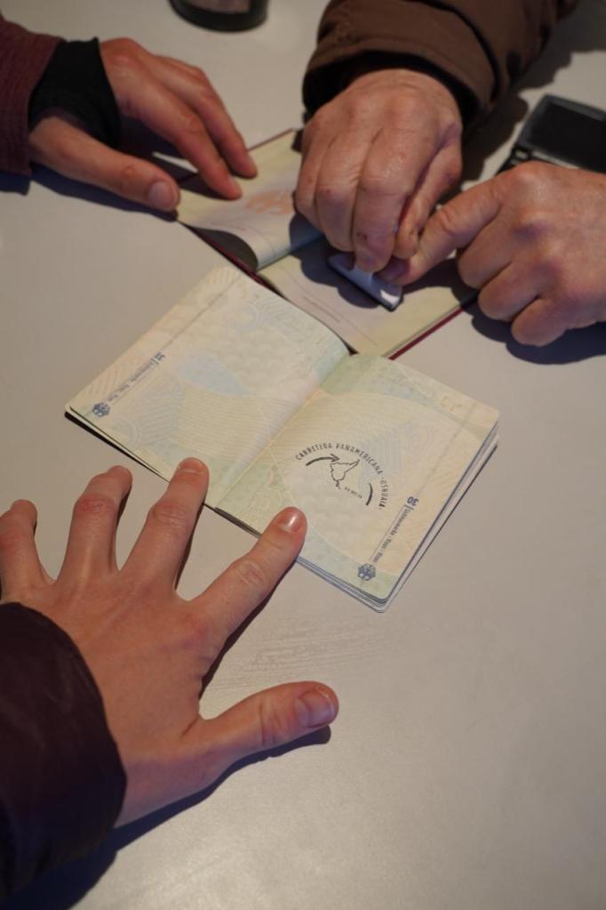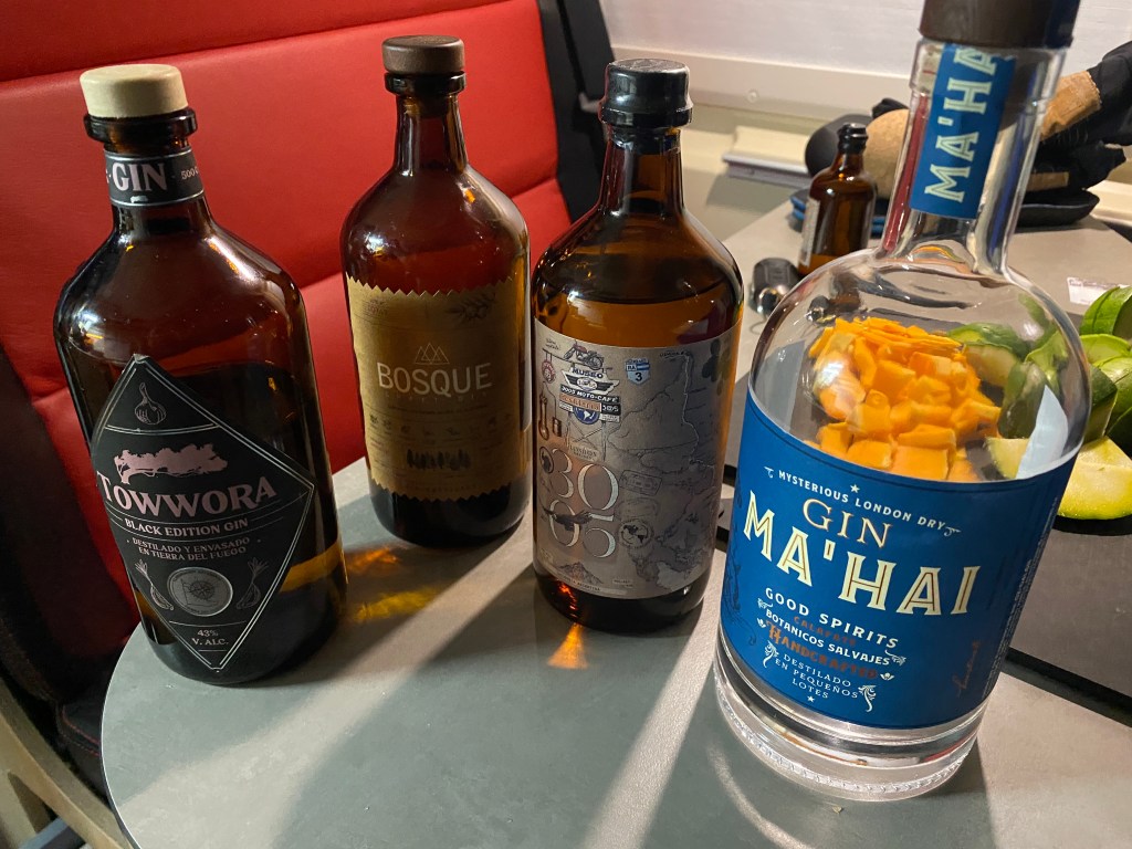 Nevertheless this short ski season was worth it and after giving back our rental equipment, we tried again the gin distillery. This time it was open and it is hard to explain the scenery. The distillery is linked to an old motorbike museum, which is one big room stuffed with old motorbikes and behind a bar there stands a friendly looking Santa Claus surrounded by gin bottles. Santa was the owner and very friendly he explained us why the gin was called 3005 (the old km mark of Ruta 3 of the distillery) and all the botanicals that were added to the gin. He gave us a little shot to taste and that (combined with the charisma and the attitude of Santa) convinced us directly to buy a bottle of this gin. Now we have four different gins in Rosi to choose from for our G&T… (Thanks @Frederik for the drawer, it is now our bar). Also he gave us half a stamp… For the other half we have to be in a very specific location in Alaska… Lets see if we make it. Happily we headed towards Ushuaia to the first camp ground we had to pay for since we left Uruguay. It was a small parking lot, next to a house and the owner greeted us very friendly. Although the place was not a really campground we enjoyed the hot shower as if it would have been a full evening at the spa. We were happy and sore and ready for the end of the road, the most southern point we can reach with Rosi.