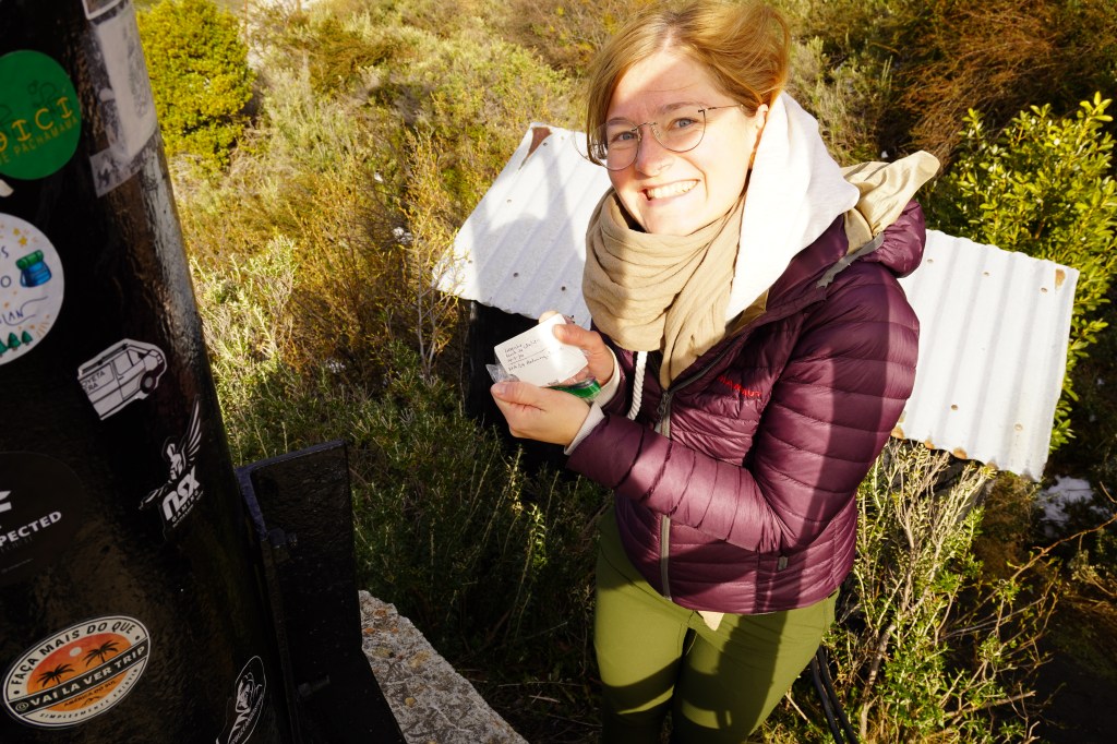 Of course it is not the „end of the world“, since the earth is round….:-P…. and since there are places that are more south than Ushuaia. After Argentina started to claim the „end of the world“ title Chile just established the little village Puerto Williams on the southern side of the Beagle Channel and destroyed Argentinas claim of the most southern city. Nevertheless, the end of ruta 3 is the most southern point we can reach with Rosi, without spending hundreds of thousands of dollars to ship Rosi into the Antarctica. For us it felt like the end of the road and we were pretty proud. But it was not enough for Linda, so we started a hike along the south boundary of the Nationalpark for a Geocash, that was really at the most southern point we could get to. Geocaching is a little like a treasure hunt for a logbook, you can sign when you find it, sometimes there is even a little treasure in the container. There is a huge Geacashing community and millions of „cashs“ world wide and every now and then we look for some of these. Linda has been doing it for a long time and „of course“ the gamification factor and „rewards“ you earn for special cashes is also a factor.