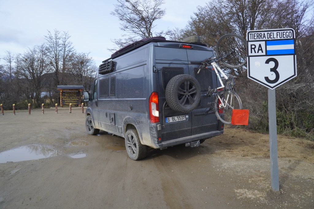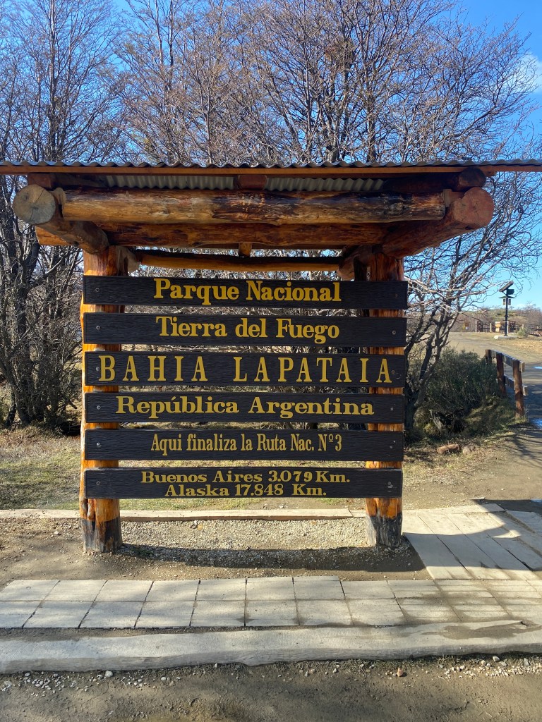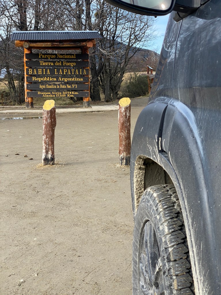 There we are at the end of the world…as the Argentinians call it. It is marked by a big wooden sign that marks the end of the ruta 3, that we have been travelling almost since Buenos Aires. We have a real love hate relationships with this road, since it was the lifeline of our trip to the south, but than at times the out-of-nowhere-potholes or a completely disappearing pavement made it hard to love the ruta 3. In the end it was a weird feeling to be at the end of the road, especially since it also mentions the distance to Alaska.
