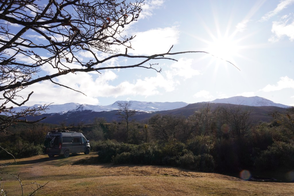 A while after leaving Tolhuin, we passed again the „tree border“. South of this border there were a lot of trees everywhere on fire land, north of this border there was again the big nothing of just grassy hills and some small bushes and wind….. a lot of wind. A different level of wind. So much wind that the few moto bikes, that passed us, basically were leaning in a 45 degree angle into the wind while driving straight. Every time they passed a car, that covered the wind, they jumped a meter in the other direction, before they leaned again in a weird angel. It was crazy to see and was a good preview of what we will experience in Chile.