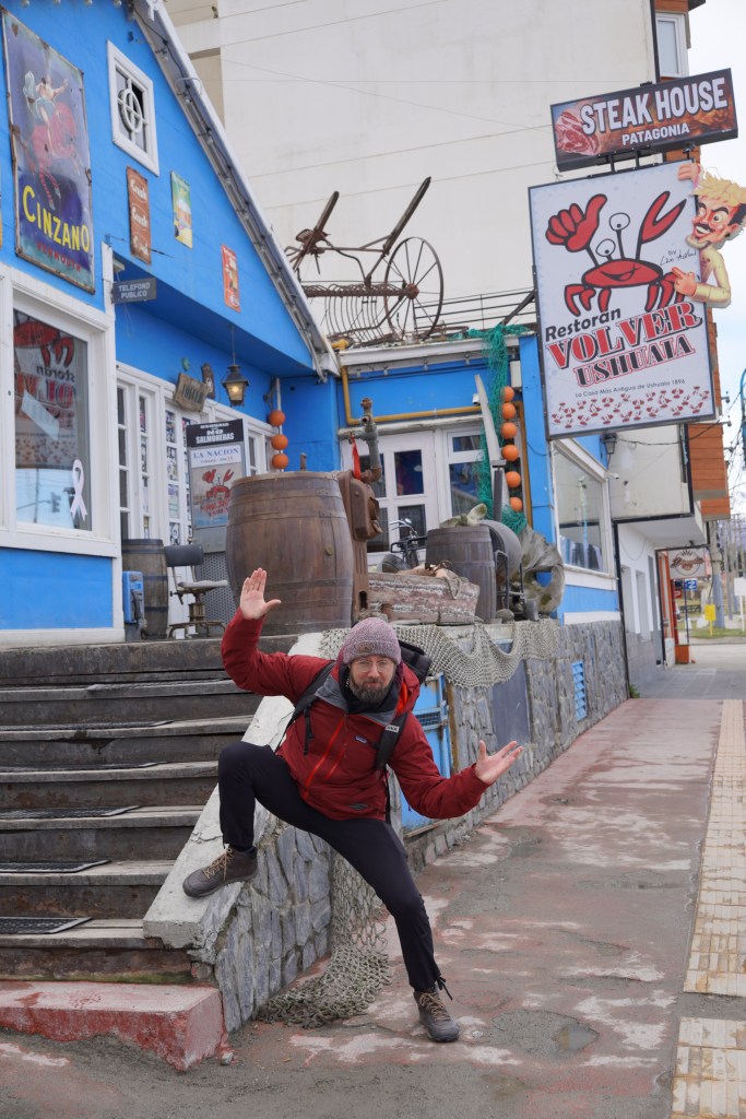 In Ushuaia we made a little walk along the harbour and had to admit that the view of the surrounding mountains and the beagle channel was pretty nice. The town itself is cute, but pretty touristy, so we did some touristy stuff: