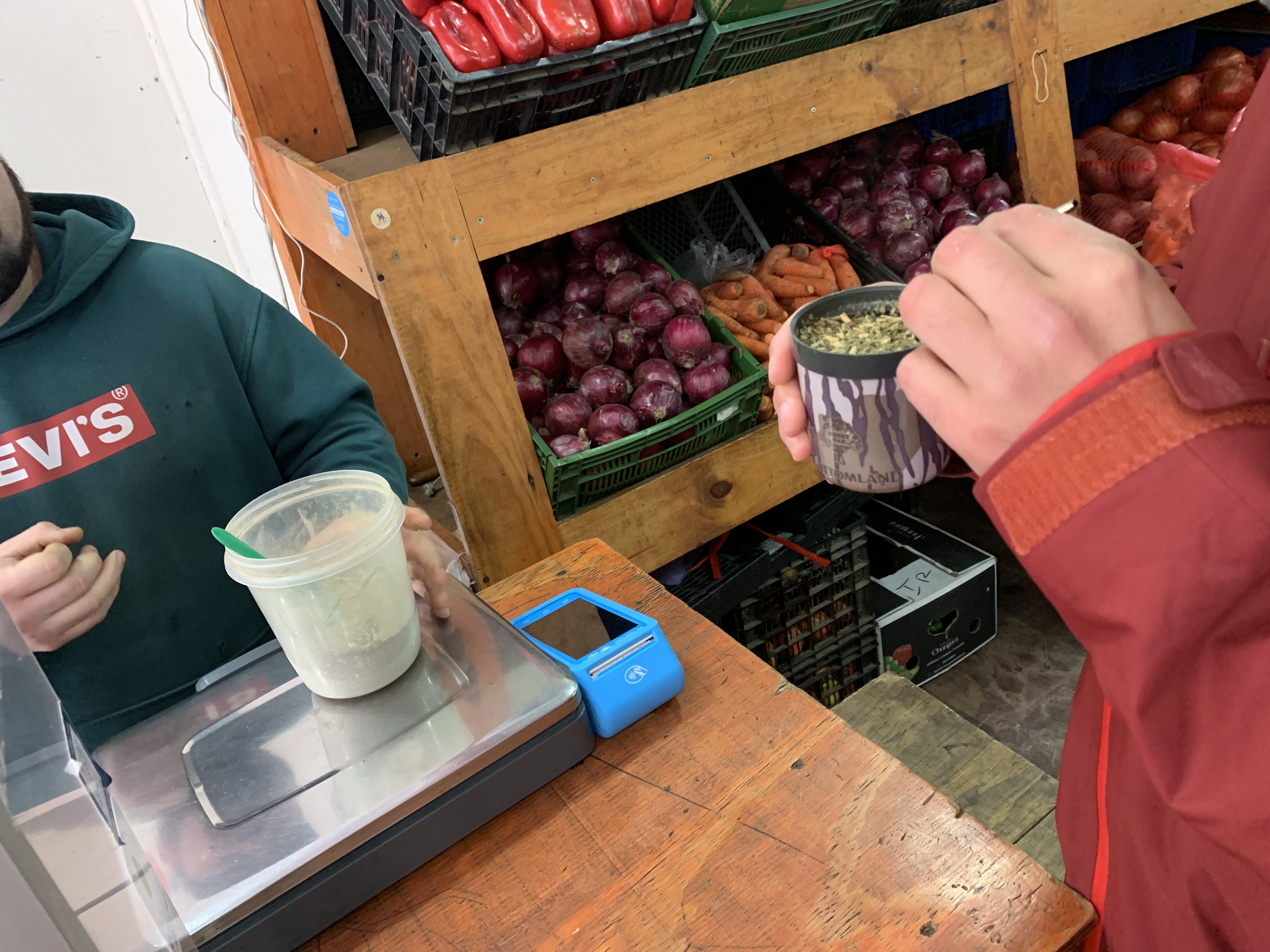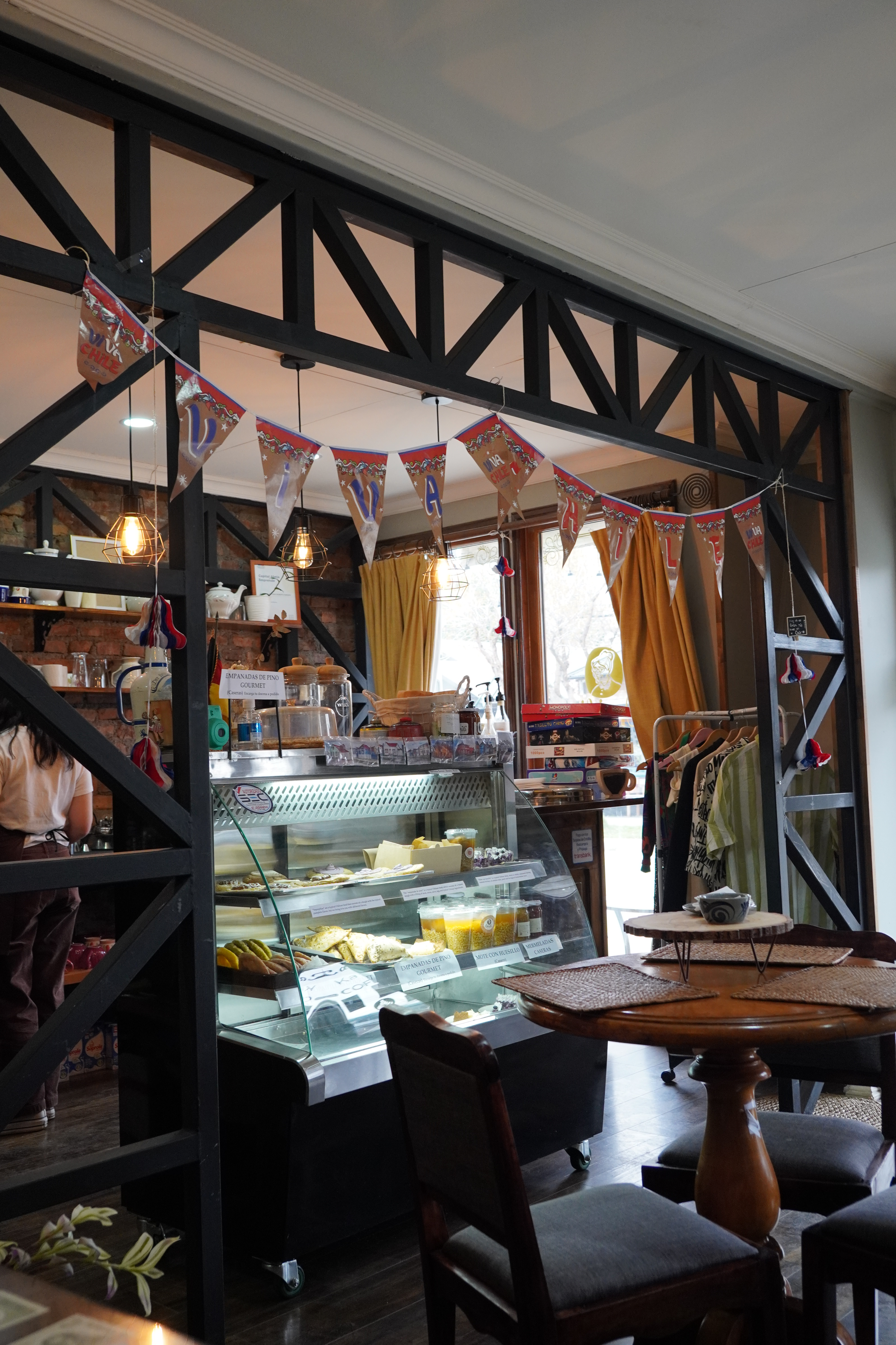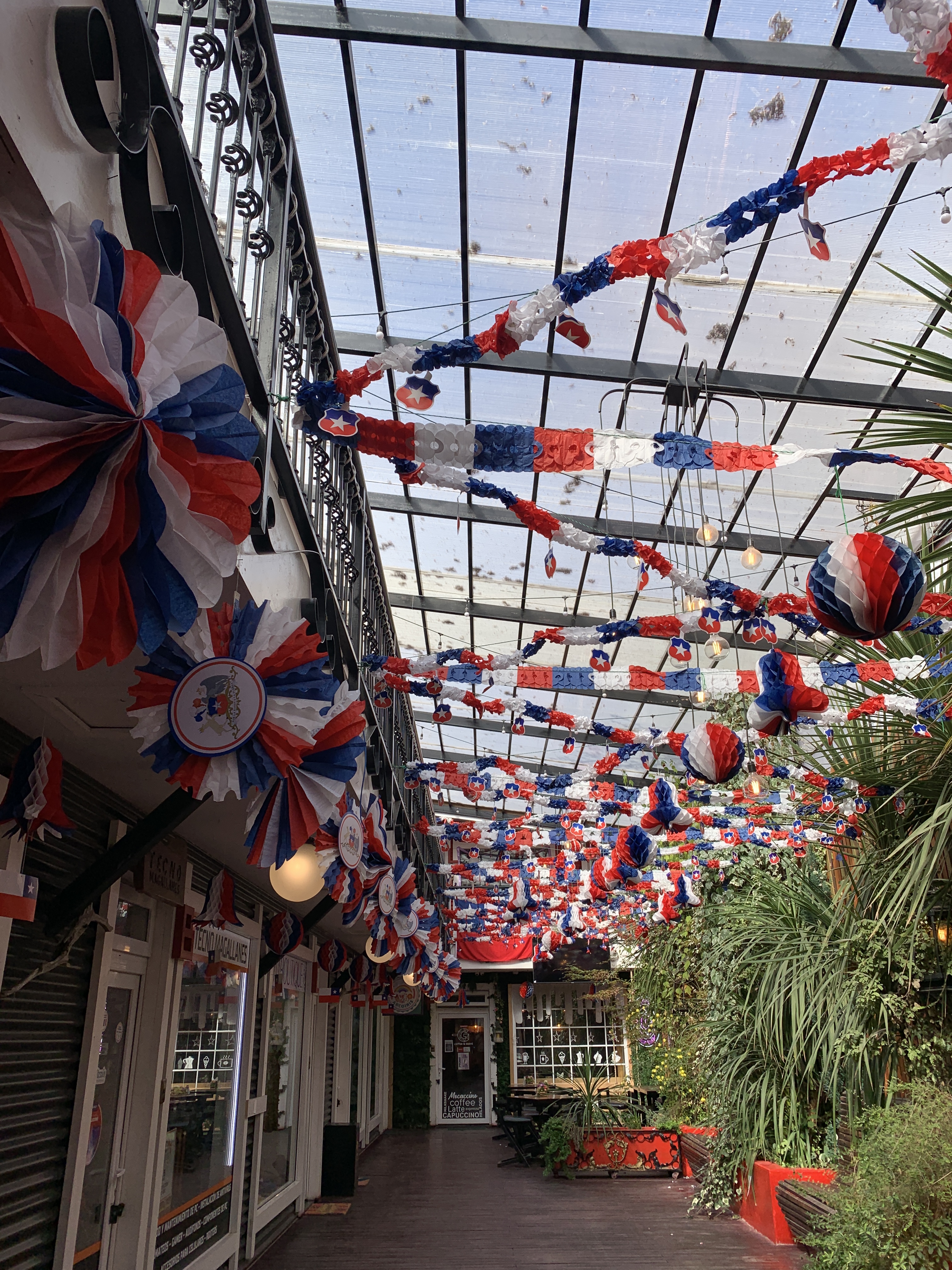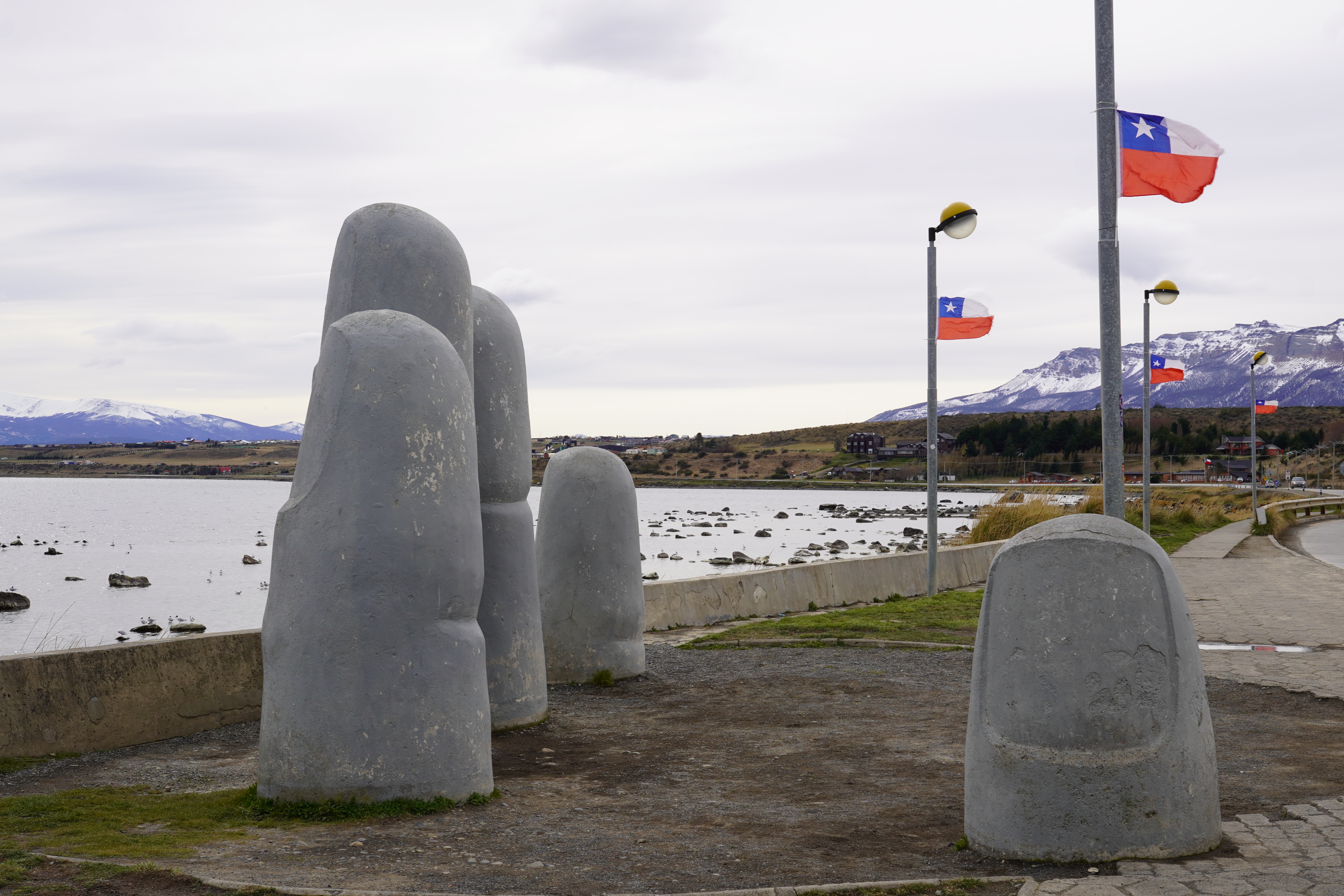 The next morning, our day’s goal was Puerto Natales, to inform and equip ourselves for hikes in Torres del Paine. Our first stop was, however, a Transpetrol gas station on Ruta 9, which made two people very happy. Björn was happy about the diesel in Chile (European standard), and Linda about the really good coffee from the gas station. On the way into town, we passed a giant teapot in the landscape and were able to fill up our water container with drinking water at the entrance to the town. Due to the cool temperatures, our drinking water is still stored in a handy 12-liter tank on board of Rosi. Puerto Natales greeted us with clouds, black-necked swans (Cygnus melancoryphus) in Golfo Almte Montt, an abundance of Chilean flags (which we had already noticed at the border crossings), and a different ghost town atmosphere. Everything was closed, even the shop where we wanted to buy SIM cards for our phones. When we withdrew Chilean cash at the bank counter and had Wi-Fi, we found out that today and tomorrow were holidays. On September 18th, it’s Independence Day, and on September 19th, it’s the Day of the Glorious Army. These two days together form the center of the so-called Fiestas Patrias, one of the most important celebration weeks in Chile. In Puerto Natales, there was a market with stands and festivities in town. We searched for an open café, which wasn’t easy to find. We finally ended up at Omili Haus, a café run by German immigrants after World War II. There was nothing German, except for a stack of photo albums of ancestors. We sat under a German flag with the federal eagle, drank coffee, and enjoyed Chilean specialties: Empanada de Pino (the best I’ve had so far in South America – it also contains olives and boiled eggs) and Mote con Huesillo. A traditional drink made from dried peaches and cooked wheat semolina. Very sweet and tasty. After our visit to the café, we wondered if the ancestors might have been SS refugees. However, one would probably not advertise that and lay out the photo albums with dates and names. Probably.