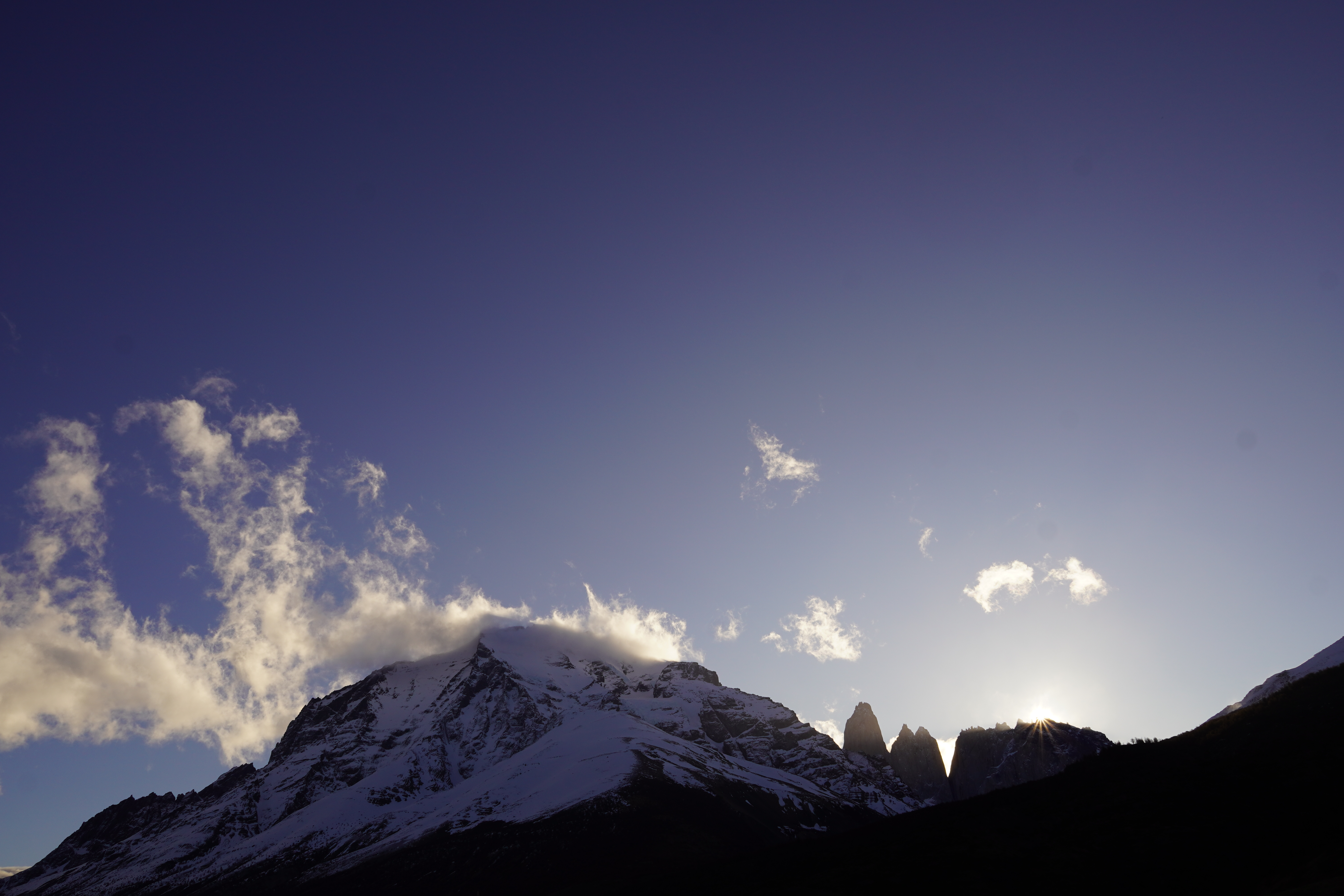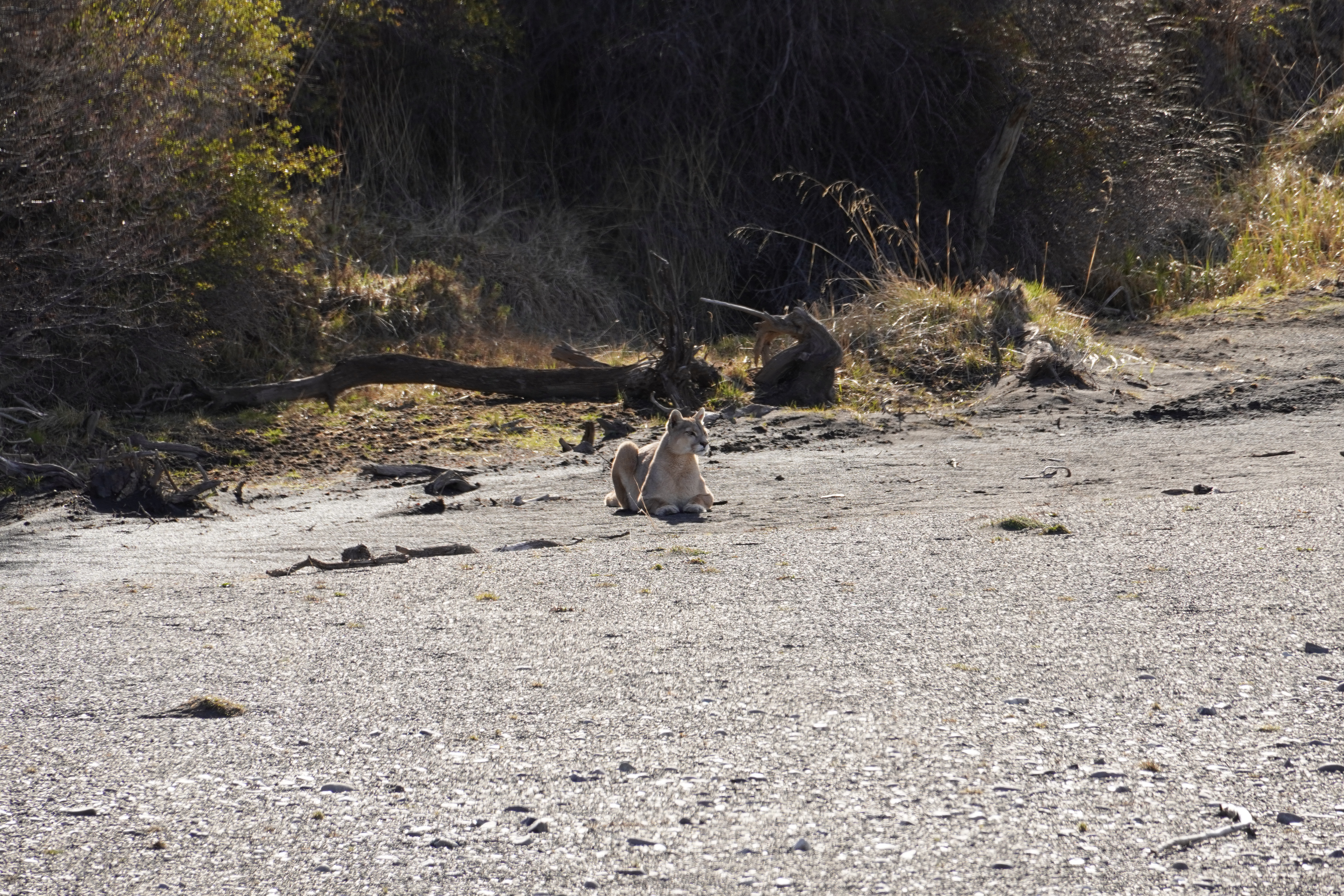 The last kilometers before the national park required us to drive on the gravel road next to the newly paved highway. Unfortunately, the new road was not yet finished. At the entrance of the national park (the only place where we had free Wi-Fi via Star Link in the park), we paid about 80€ admission because we wanted to stay longer than 3 nights and we’re not Chilean. The very young employees could not provide us with any information about hikes, weather conditions, or closed trails. However, we knew that the refugios would not open until October, and we could not do the W-Track. The W-Trek in Torres del Paine is an 80-kilometer multi-day hike which reaches heights of over 2,800 meters, which is shaped like a “W.” In sunny and cool temperatures, we made our way to the Welcome Center, one of the few places where you can camp for free. On the way there, we could hardly believe our eyes. We spotted a puma on the riverbank, lounging in the sun and watching until it slowly disappeared into the bushes. What a great encounter! At the Welcome Center, we enjoyed a beautiful sunset with a view of the Torres, Patagonia beer and chocolate and prepared for the hike (one section of the W-Track) the next morning.