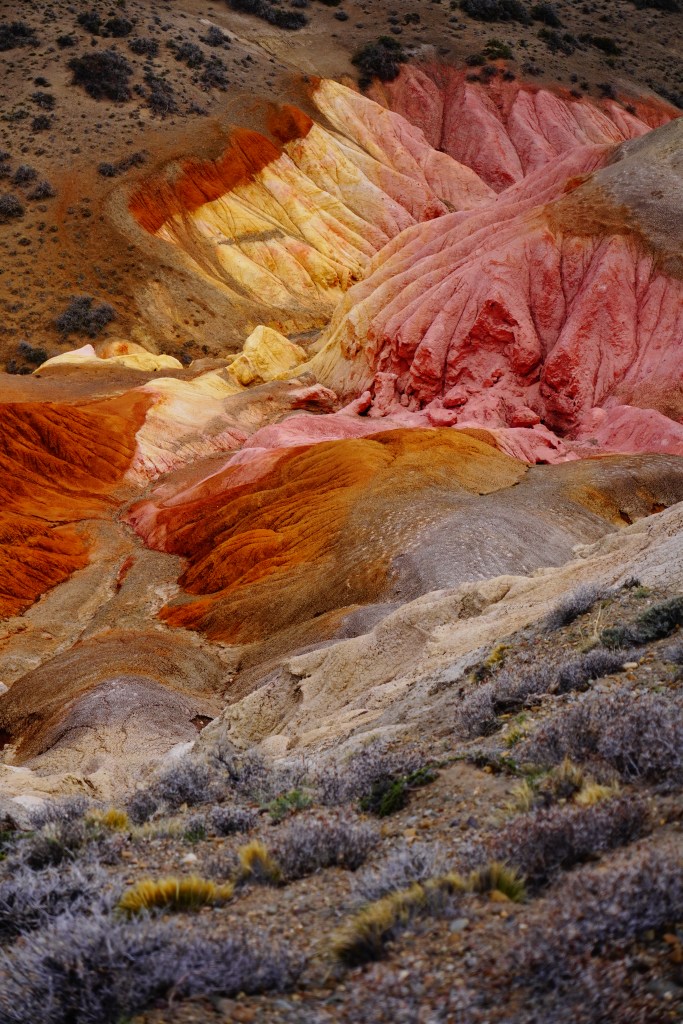 After a good nights sleep next to two other overlanders at the local YPF gas station and stocked up with medialunas from the local bakery, we continued our way up north. It was quite a long way that we wanted to cover that day, almost until the chilean border. There are a lot of really cool things to see here in Argentina but we both agreed that we cannot visit every place if we really want to make it to Alaska. So we skipped the famous cave with ancient hand paintings and decided to just make a mid day short hike at the parque patagonia. This protected area is not a national park. It is private property that is being marketed as if it is a national park. in their brochure it is described as: „This park is the result of the collective dream of developing an economic model where wildlife and people thrive as their natural ecosystems recover“. Sounds to me like a business model based on nature, I am fine as long as nature is protected by it. The funny thing is, that we did not have to pay any entrance. And to add to the confusion this private „parque Patagonia“ is right next to „Parque National Patagonia“ and the „parque Provincial cueva las manos“ is within the private „Parque Patagonia“. Also you find on the chilenien side another “Parque National Patagonia“, just that this one belongs to Chile and not to Argentina. Anyone not confused yet? We were in the private „Parque Patagonia“ and did the hike that was called „earth of colors“…. and they did not exaggerate here. At one point it looked like we were within a classical ice cream jar, with bright yellow, red and brown right next to each other. It was pretty impressive, although we were almost blown away by the strong wind that was blowing during that little hike. On every long day of driving we try to at least do a little hike to keep moving during the days that we spent mostly in the van. After a short shopping stop in Perito Moreno (the town, not the glacier and not the national park (they really try to confuse you with names here (almost like I try to confuse you now with brackets within brackets))) we found a beautiful camp spot in a national park. I am not joking, but this was AGAIN the national park Patagonia, just a different part of it. It really looked like an old farm, they had a little fair in two rooms, where locals sold local products on four stalls and we bought two hand made alfajores, that were incredibly tasty. The way to the camp ground was very narrow for Rosi, but we managed and enjoyed a tasty beer overlooking Lago Argentina and seeing the Andes after a long day of driving.