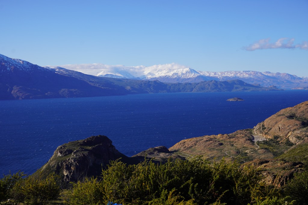 After being fully stocked up we started our way in the direction of the famous highway number 7, the carretera austral. Dictator Pinochet decided that this road needs to be built to connect the more rural communities in the south of Chile. But to get there we still had 120 km dirt road in front of us. The dirt road was in pretty god condition and the views were breathtaking. The road went along the Lago Argentina which is named Lago General Carrera on the Chilenean side. It went high up and than down again until you almost touch the water. Always with a backdrop of the Andes covered in snow. It is hard to describe but we were both fascinated and it showed again that on this trip it is essential to value what you see while driving. We spent so much time on the road and it sounds cliche, but the way is more important than the destination. Our goal for the night was to find a wind sheltered spot. We talked to a local farmer, who was woodworking with a chainsaw and 5 dogs around him wearing a typical gaucho hat. He was grumpy at first, but when I asked in spanish, he let us stay on a small wind sheltered stretch next to the road for the night.