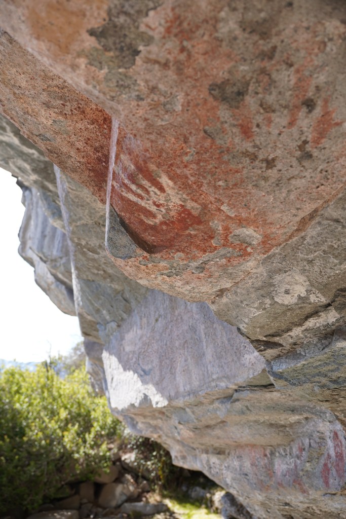 After 40 more kilometers dirt road we turned right and saw the first big sign that we finally made it to the Carretera Austral. Scenery did not change and the road also did not get better, but the views just stayed amazing. We just adjusted our travel speed and enjoyed the scenery. In the afternoon we had made it to Villa Cerro Castillo in the shadow of the mountain with the same name. Next morning we decided to do a little hike that we found on Komoot and sstill got the chance to see ancient painted hands. It was a beautiful little hike and we did not meet anyone. Only the local police was interested in us…. but more in our trip than us. The ancient hand paintings were impressive. It just feels different when you imagine that someone held his or her hand at the same spot where we did it and than spat the painting to make a negative painting of their hand. These paintings are found all over the region and the true meaning is not yet discovered. From there we made our way north and the valley suddenly opened up and more people were on the streets, also the street was paved again and you saw more fields and cows and all in all it really seemed like the Allgäu in Germany. In the bigger town of Cohaique we went shopping and drove further north and the village like structures became fewer again. We found again an incredibly beautiful sleeping spot, not even a kilometer off the main road. In the green grass, next to a river with views on the surrounding mountains and new born lambs running around Rosi.