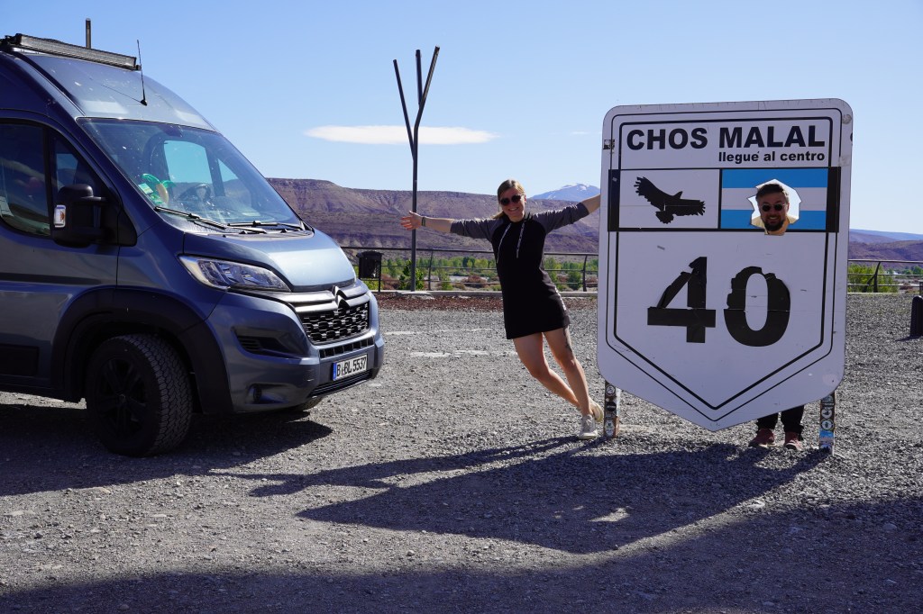 First stop in Mendoza was the windshield repair. We were dragging the long crack in our windshield now already for multiple weeks and it constantly grew. A mechanic in Frutillar in Chile had told us that nothing can happen and the crack will most probably continue to grow until the other side of the windshield, but it is possible to fix and stop the growth. This is what we wanted to do in Mendoza. So we googled a windshield repair shop and stopped next to it. It was a tiny little shop with a very narrow entrance for cars that are not to big. The friendly guy looked at the crack and said wayyy to fast that he can fix it, stop the crack from growing and make it less visible, but he can only do it tomorrow since he has another customer today. This customer was standing right next to him and after he saw us, he said, that he will come back tomorrow and he can fix our windshield now…. I was so surprised, happy and grateful. It would have not been a problem for us to come the next day as well, but in the end it was way easier like this. So he started right away. For that I had to drive Rosi into his shop, which was physically impossible, but it was enough for him that the front part was in his shop, because he could not use his equipment outside. That let to Rosi blocking the full sidewalk which nobody cared about …yet. While the windshield repair guy started right away, drilling holes in the windshield to release the tension and than filling them again with UV curing resin, I tried to get a new oil filter (which did not work) and an additive for the diesel particle filter. I have learned from other travellers that this might help more modern diesel vehicles to regenerate the particle filter in very high altitude. Also I tried to buy some fast food for us at a place around the corner, which looked more like a prison. While I was away Linda waited in the van and shortly before I came back somebody indeed cared that Rosi was blocking the sidewalk. An older blind person pretty much ran into Rosi and Linda (of course barefoot in that situation) tried to explain that a „coche grande“ a big car is in the way. So the bild person turned left to the street. But to reach the street you needed to jump of a water spillway that was easily 70cm deep. Linda jumped out of the car to prevent that poor man from falling in the ditch and guiding him around Rosi. When I came back proud with my two sandwiches, fires and a coke, Linda was still shaking from almost guiding the blind person into a spillway. Exactly when I returned the windshield was ready and I could only see it since I knew it was there before. I was happy and after paying 38€ and getting some more travel tips we drove off. Our next goal was a big dream of me.