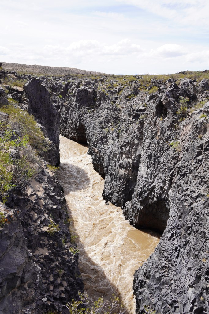 The next morning we knew that we had a challenging part of road ahead of us as the route 40 was again unpaved for many kilometres, but the views compensated for that. We drove through an unreal landscape. Hundreds of volcanos around us, and the land was shaped by the lava from these volcanos. Huge platoes with black rocks, deep and wide canyons, we had to drive through and narrow canyons shaped by Lava filled with wild rivers. It was incredible. I really suffered from the bad road conditions and the washboards streets let everything rattle, but Linda reminded me that we this is what we came for and she is right. We just took our time and tried to enjoy the scenery.