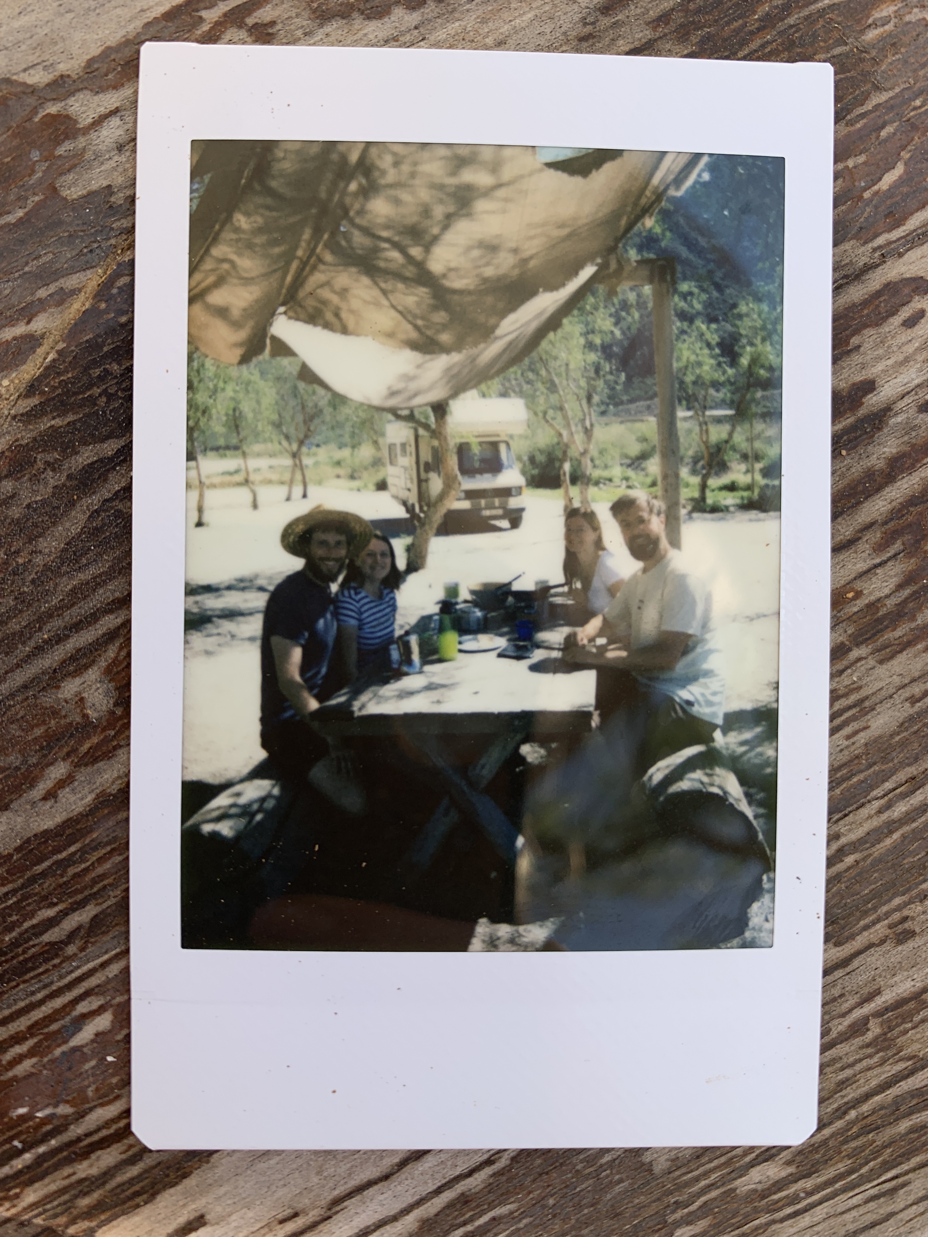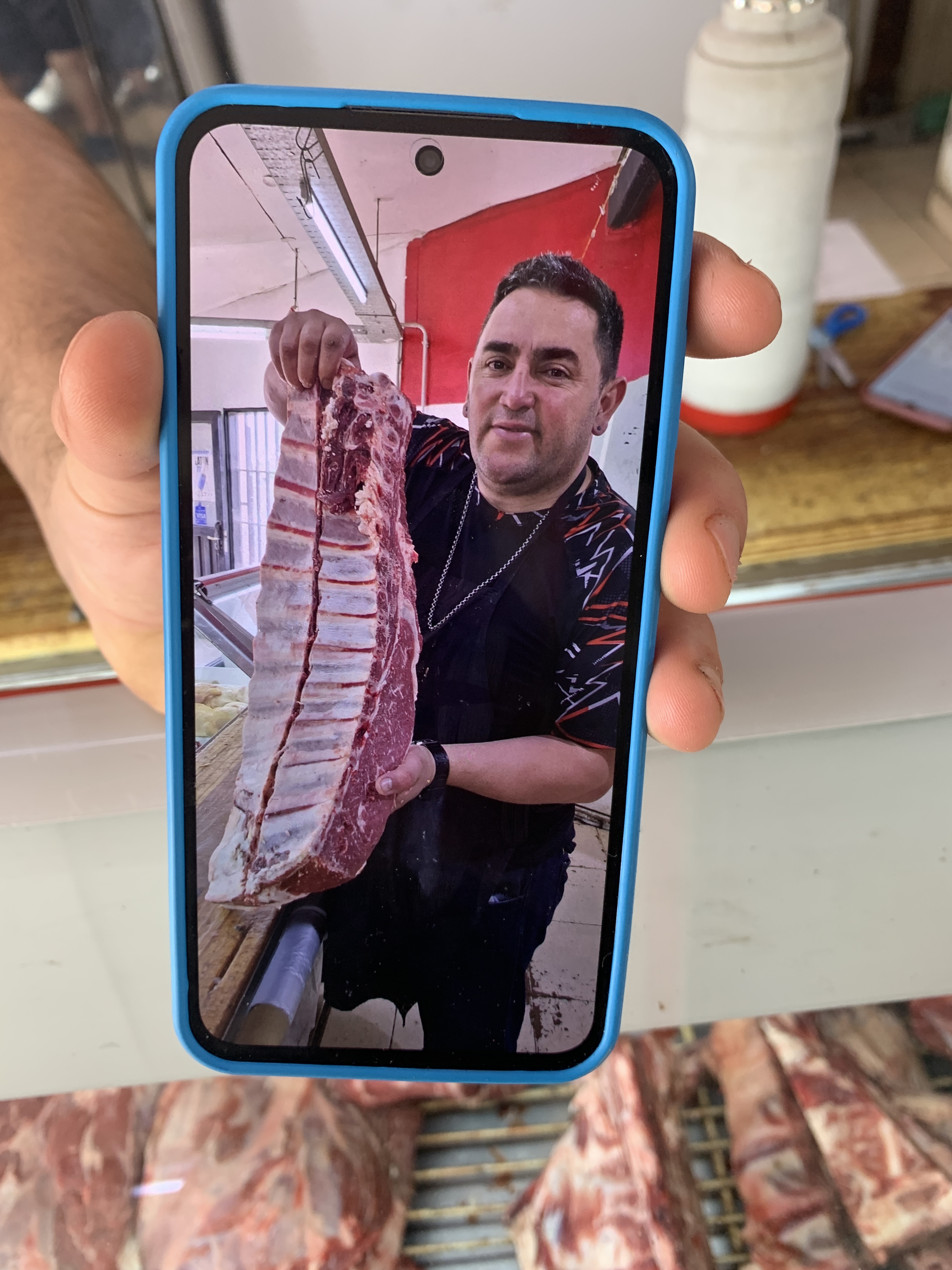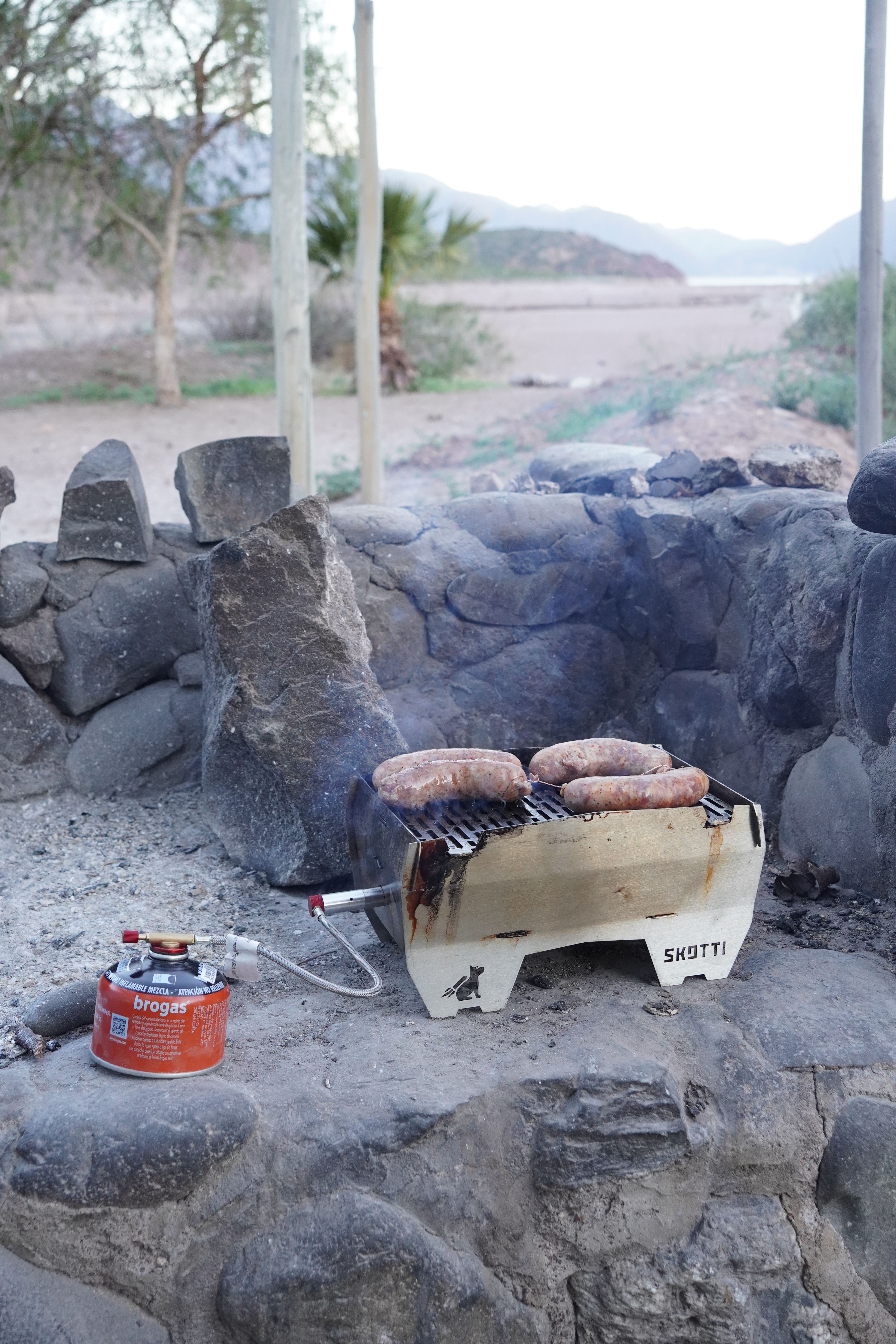 The next morning, we all had varying degrees of hangovers. Still, we planned to go rafting at Argentina Rafting and headed to the Mendoza River, near Potrerillos, close to the Chilean border. On the way, we bought Argentine steak, firewood, and ice cubes at a quirky little shop for the evening (Supermercado Los Abuelos). It was a small shop, mostly selling meat, with 6 people working there. They were so proud of their meat, that I had to take a picture of a picture of meat on their cellphone. We moved on.. The rafting conditions were easy (Level 2-3), and we were ready for some action. We spent about an hour rafting down the river and got pretty wet. Our guide brought his 5-year-old son along and was up for any fun. He was also training another guide on the side. It was a lot of fun, we laughed a lot, and got a good arm workout. At the end, we had a nice hot shower, (replay, two hot showers in a row, that’s almost too much) and they even let us park at a small private spot nearby. It was a perfect campsite for us, one of the nicest we’ve had on our trip (if you exclude wild camping). We got a key for the gate and were allowed to make a campfire, with a beautiful view of the river and the barren landscape. We spent another lovely evening with Dominik and Saskia, grilling steaks, having delicious vegetables, enjoying an amazing starry sky and many great conversations until late into the night. A smell of puma or wild animals wafted through the air, which we tried to ignore. Around midnight, when the full moon rose, you didn’t even need a flashlight outside because it was almost as bright as day. We didn’t see any wild animals, but we did see a cat.