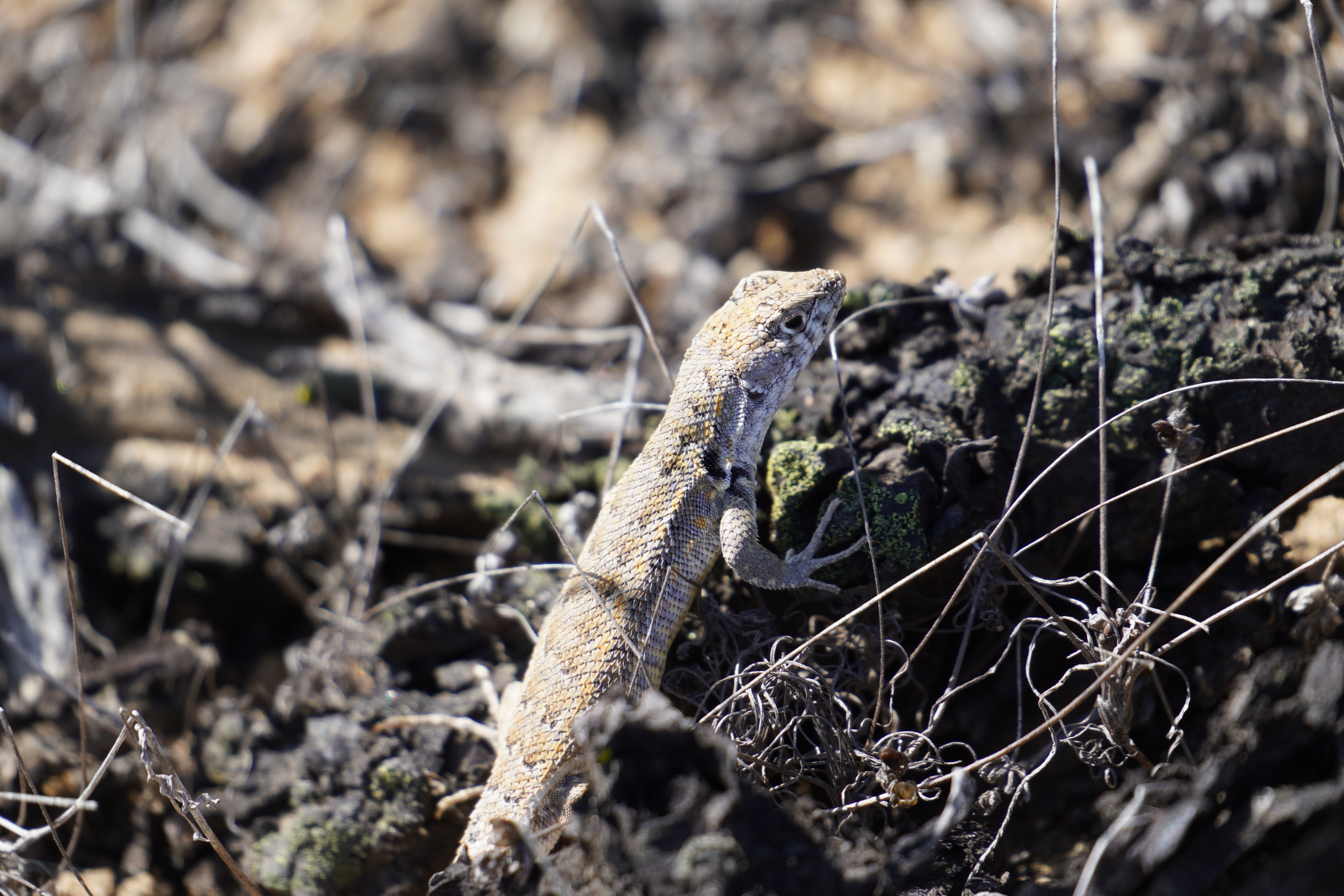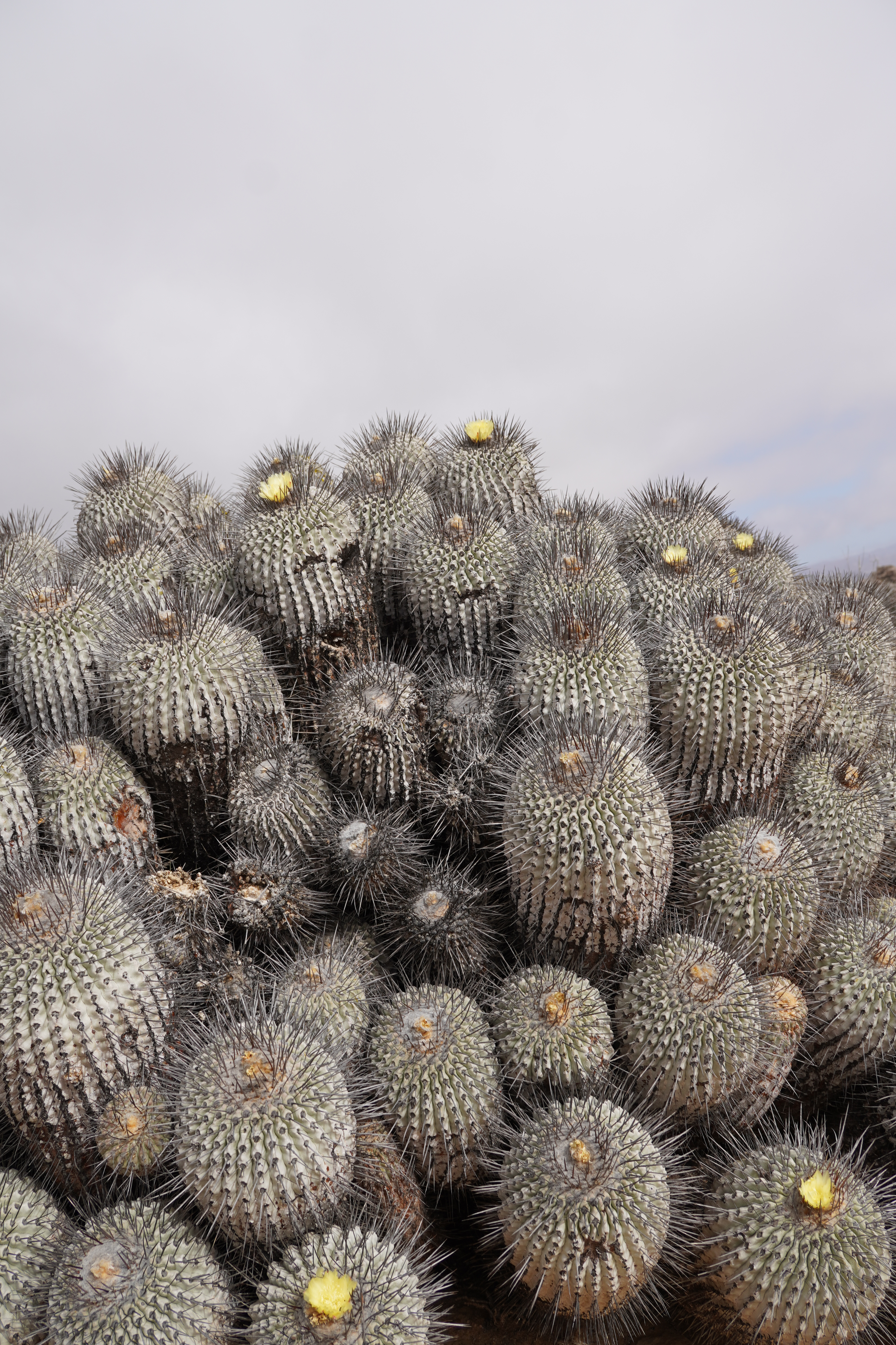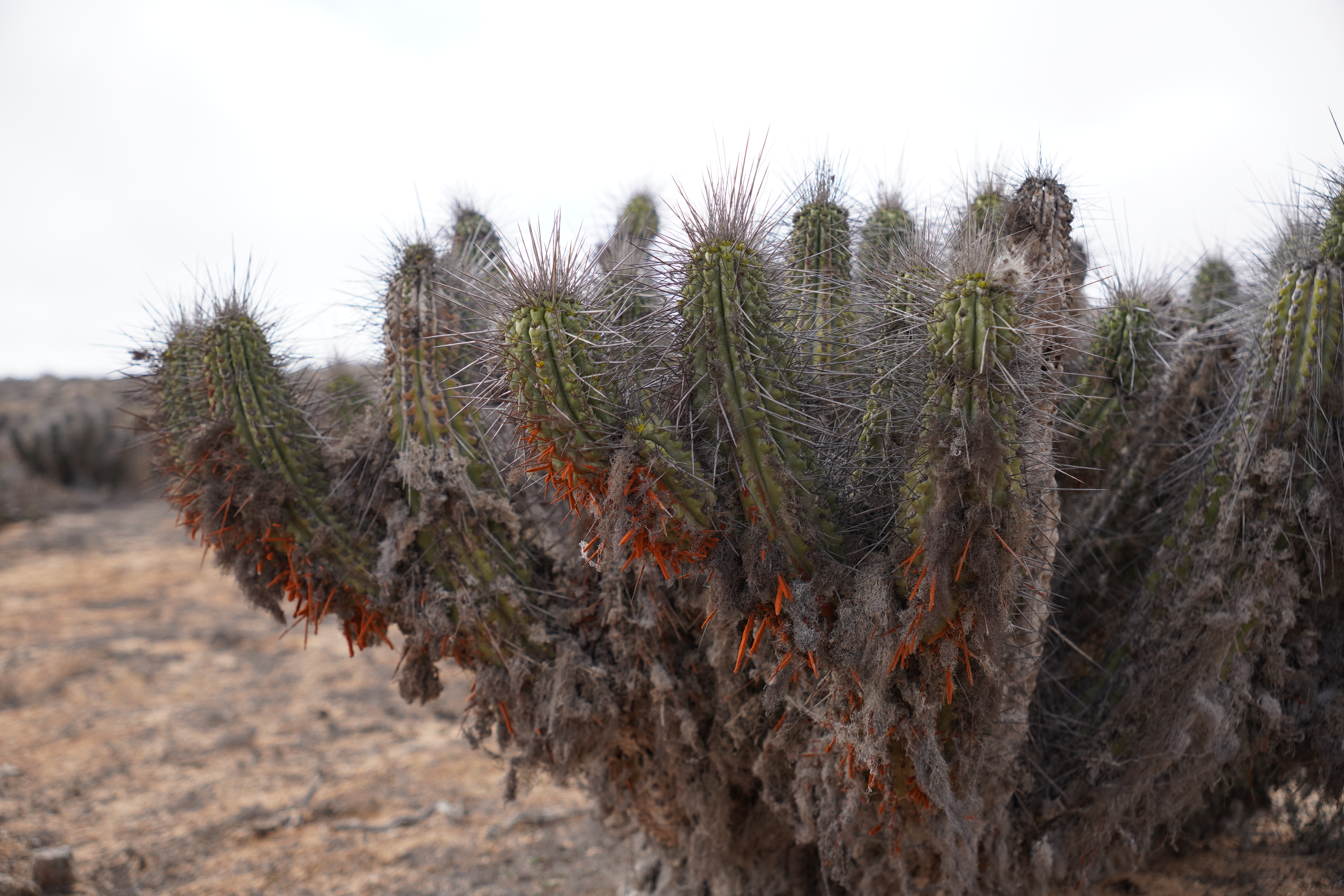 We started a hike along the beach under cloudy skies and did not really applied sunscreen. In the park, we noticed two people harvesting kelp. As we approached, they stopped. I doubt it’s allowed, though people seem to harvest and dry kelp along Chile’s coasts. Less pleasant was seeing jeep tracks in the dunes and on the beach. Our hike continued inland, where we saw numerous lizard species, cacti, and even a few tiny blooming plants. The ground was dotted with small holes, perhaps the lizards’ shelters during cold nights? Unfortunately, by the end of the hike, we both had painful sunburns on our legs. Despite the clouds and wind, the UV index here is extremely high. This was not my last South American sunburn… Aloe vera cream in hand, we drove north along the gorgeous, deserted coastline. The season here only starts in December, so we had the beaches to ourselves. The nature is stunning – if you can ignore the litter. Sadly, people here discard anything and everything in the wild. We’ve even spotted car batteries.