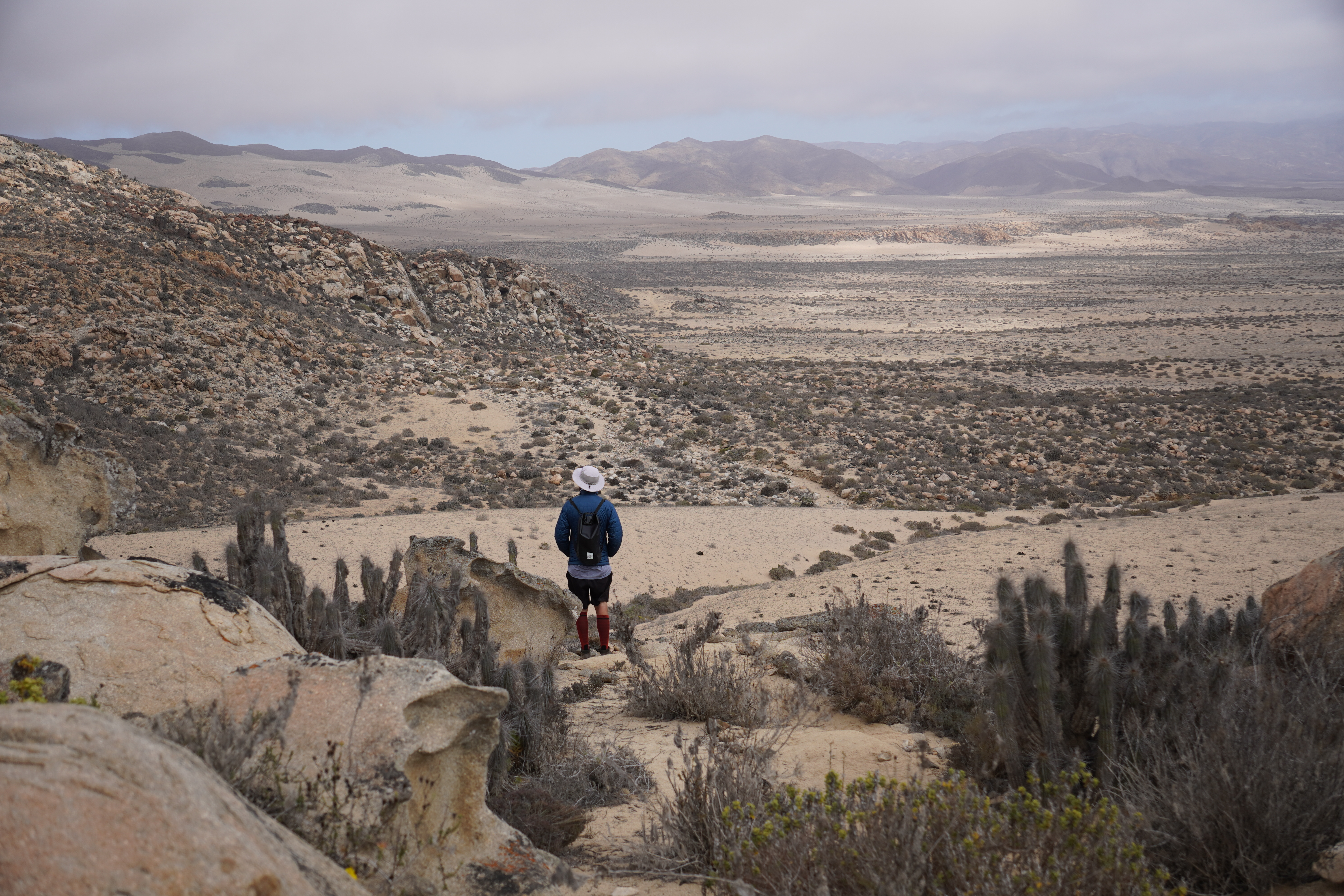 After getting out of the sand and sitting in the car, we couldn’t help but laugh. We high-fived each other and said it was good practice. This is the kind of adventure that comes with traveling. Besides, it would be a shame to take the sand tracks back to Germany unused. Not that we bought them new anyway – thanks to Kleinanzeigen! Back to the adventure: since meeting Dominik and Saskia (durchsuniversum.de) in Mendoza and hearing their stories about Bolivia’s legendary La Ruta de las Lagunas, the idea of driving it ourselves started taking root. We were 90% sure we’d do it. But we still had doubts and worries. Still, the feeling of getting out of the sand together lifted our spirits and gave us confidence. But first our next stop: the Atacama Desert. A traveling Chilean had told us that the Atacama sometimes blooms in November. I had imagined the Atacama as a huge sandbox, without plants or flowers. But I was wrong. The desert is incredibly diverse, with dramatic elevation changes, coastal stretches, canyons, mountain and lunar landscapes, dunes, and barren inland regions. Our first stop was Parque Nacional Llanos de Challe, which, in typical Chilean fashion, required an online ticket. As typical Germans, we complied, even though there wasn’t a soul around, and a public road went through the park. Of course, no one checked. But if the money goes to conservation, all the better. The park is part of the greater Desierto de Atacama ecosystem, renowned for its unique landscapes and biodiversity. The region supports remarkable ecosystems due to ocean fogs (camanchaca) and rare rains.