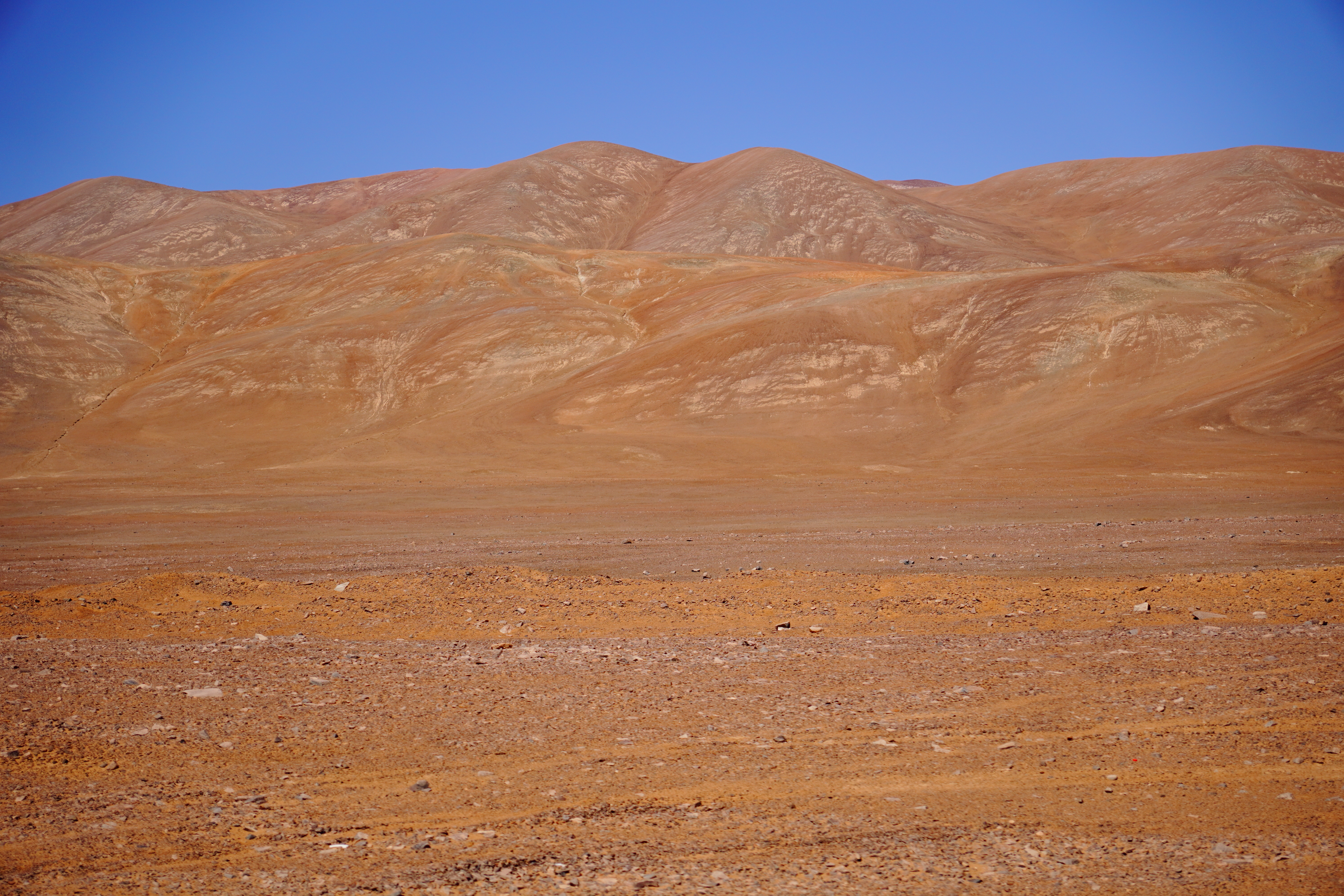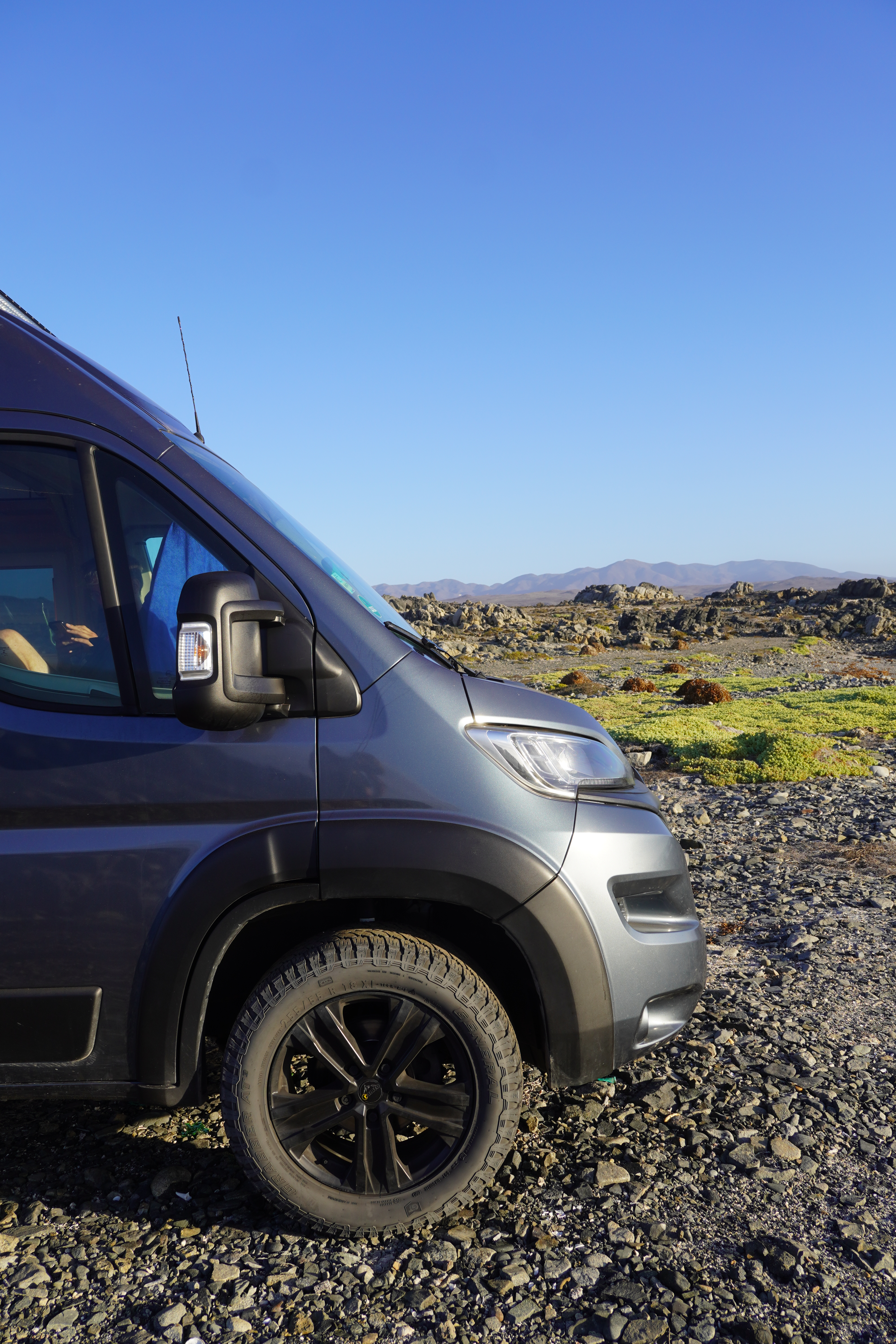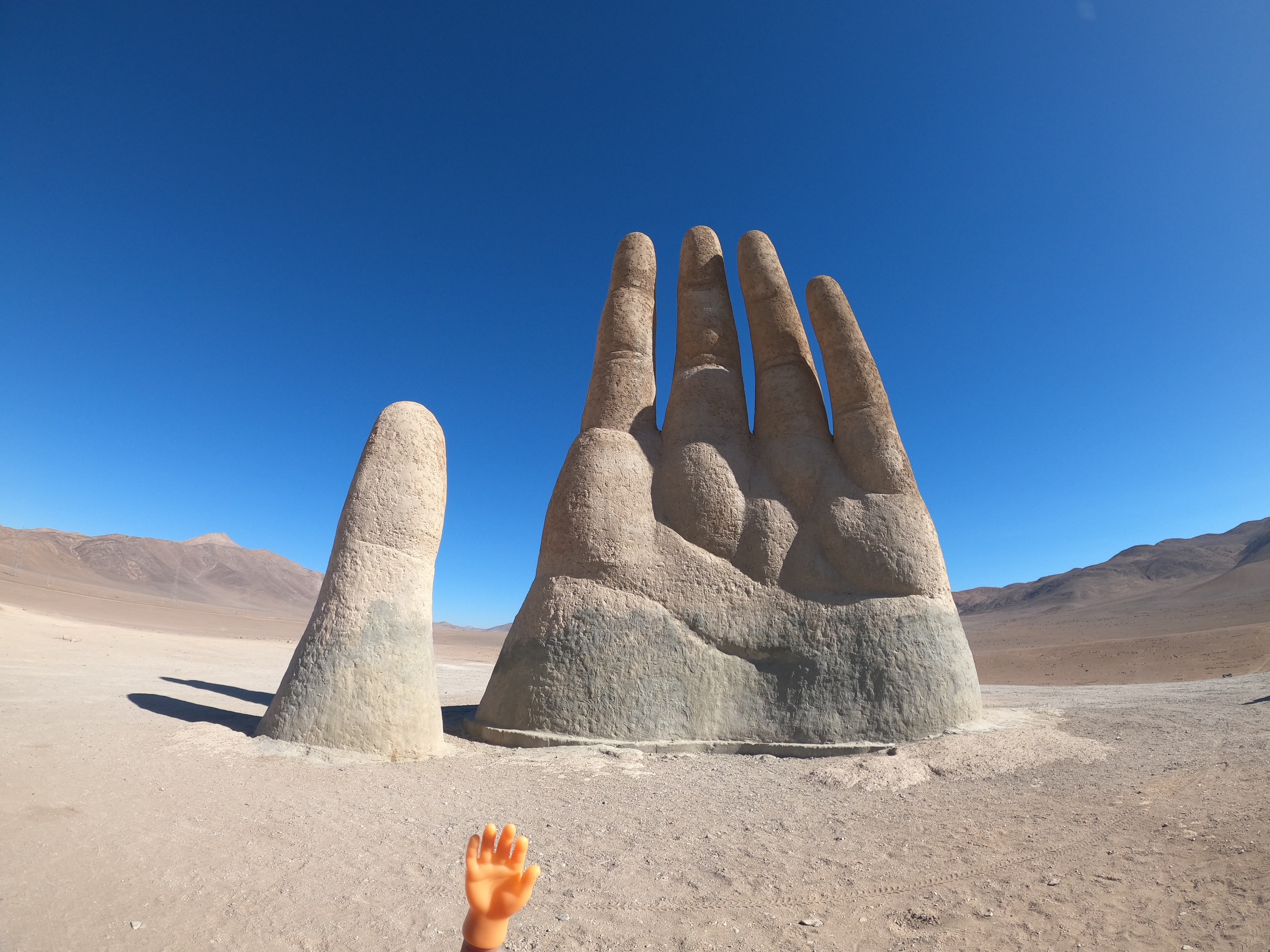 But before Antofagasta, we explored the spectacular Pan de Azúcar National Park. The dirt road here was so well-packed it felt like asphalt, a rare pleasure! The Atacama continued to amaze us with its variety. The park is home to an island off the coast where Magellanic penguins once lived. Sadly, an epidemic wiped them out. We moved on, driving along Ruta 1 to Paposo. Until the War of the Pacific (1879–1884), this area was actually part of Bolivia. Heading inland, the temperature rose sharply. Within seconds, the skies cleared, and it was over 30°C. The landscape turned red and barren, no cacti, no plants, just raw, Mars-like terrain. We passed the Paranal Observatory and saw the construction of the Extremely Large Telescope (ELT) on Cerro Armazones. Once completed in 2028, it will be the world’s largest optical telescope. The Atacama’s dryness, high altitude, and minimal light pollution make it ideal for astronomy. At the Mano del Desierto, we made a detour to see the famous hand sculpture. After seeing two similar giant hands (in Punta del Este, Uruguay, and Puerto Natales, Chile), we felt compelled to complete the trilogy. Reaching Antofagasta was exhausting, but the rooftop parking at the mall was high enough to enter with Rosi. While I stayed with Rosi, Björn bought a new iPhone and some delicious Pad Thai and bao buns.
