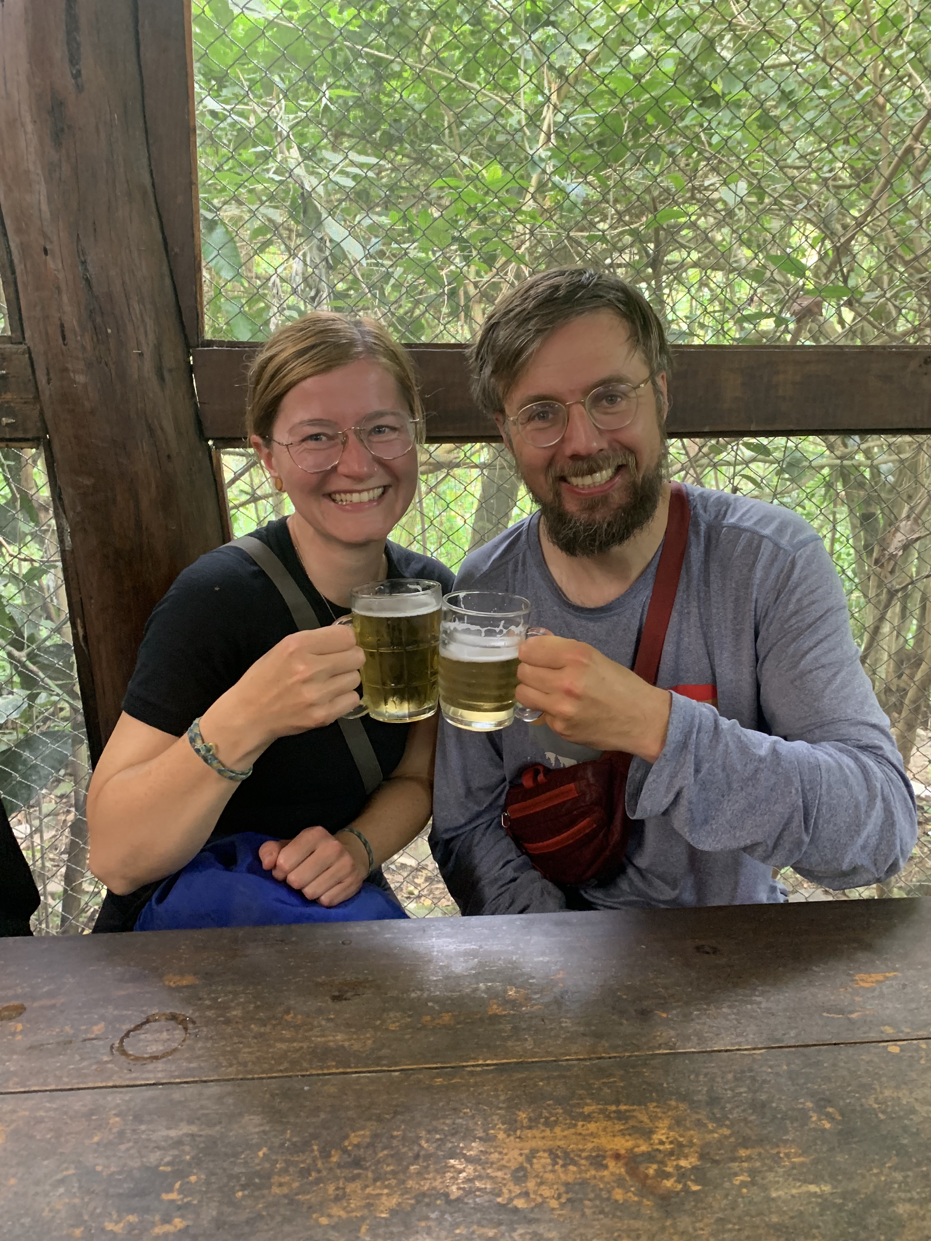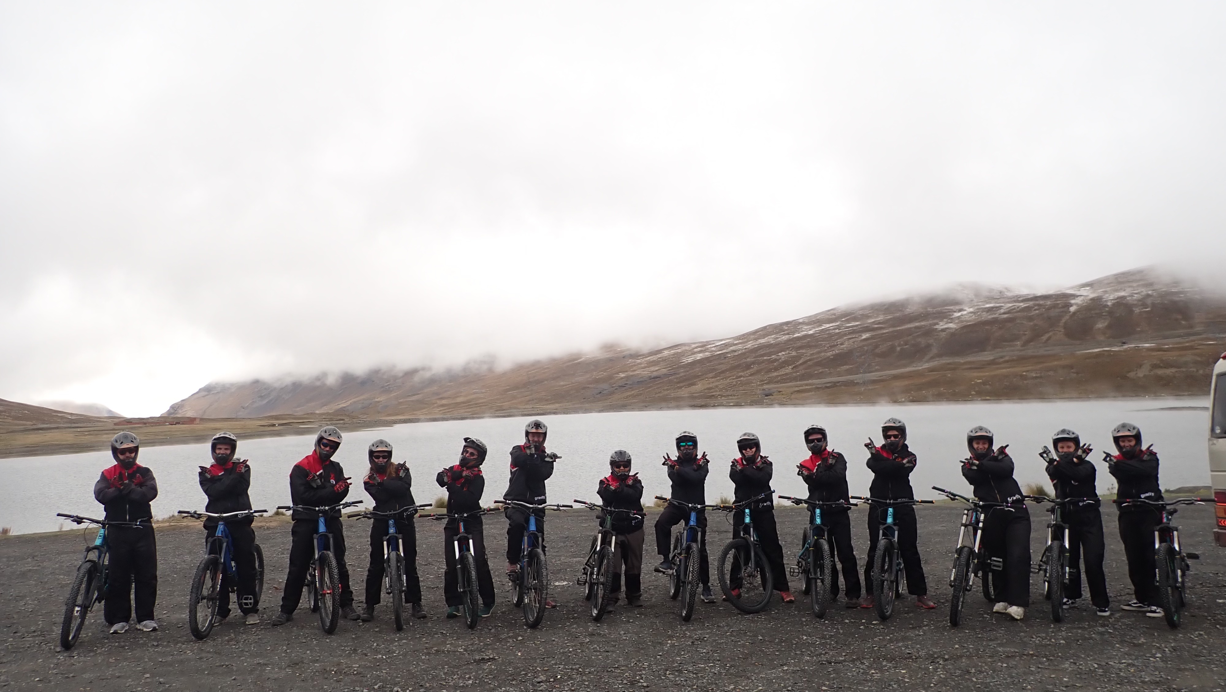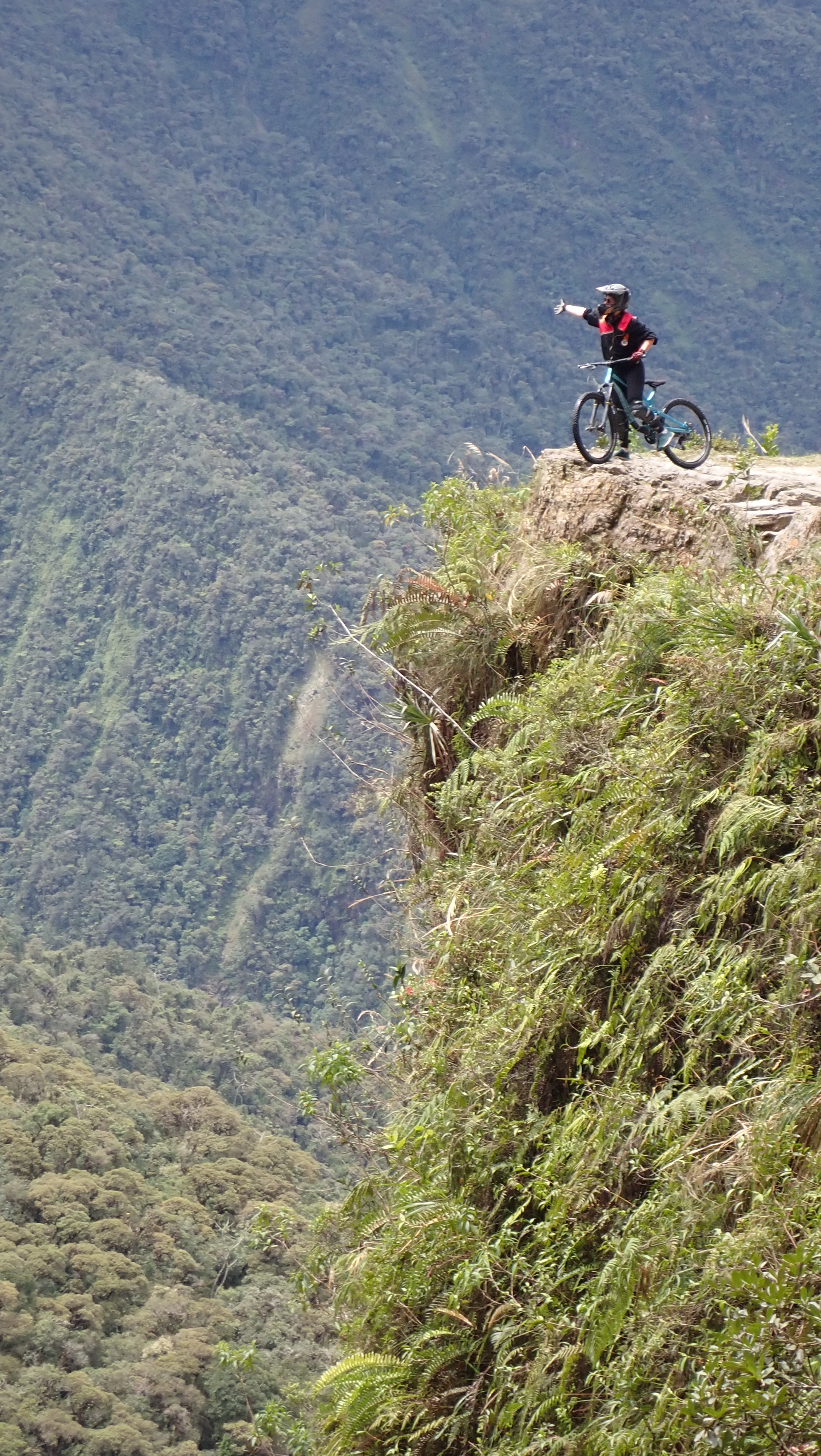 The next day, we booked a mountain bike tour over the Death Road. The Death Road (officially Yungas Road) is often called one of the most dangerous roads in the world. It was built in the 1930s by Paraguayan prisoners of war during the Chaco War. Due to the high number of fatal accidents, it got its name. Since the opening of a new, safer bypass road in 2006, the Death Road is hardly used by cars anymore. Currently, it can’t be fully traversed because a stone ledge recently slid onto the road and blocked it halfway. We booked with the highest-rated tour company, Gravity, because our safety was a priority. The next day, we woke up at 5 a.m., took an Uber into the city, and had breakfast with the group in La Paz. After breakfast, we drove for about an hour by minibus to the start of our tour. We started in the fog at 4650m at the snow-capped La Cumbre Pass, then rode downhill for 64 km, eventually reaching the tropical jungle at 1200m after several hours. Initially, we rode on paved roads before hitting the official Death Road. From there on, it required full concentration. Still, I preferred to ride at the front behind our guide since you could go the fastest there. It was amazing to admire the landscape, feel the wind in my hair, cross small rivers, and ride under waterfalls. It was an incredibly fun experience, which ended after several hours in the humid jungle with an altitude difference of almost 3500m. At the destination, we had spaghetti Bolognese, a cold beer, and the “I survived the Death Road T-shirt”. What an awesome experience. Even if the road had been passable by car, we wouldn’t have wanted to drive Rosi there. It’s a gravel road with a very narrow, uneven surface, often only 3 meters wide. On the route, vehicles must drive on the left, meaning you’re always on the edge, and the steep cliffs of up to 600 meters often have no guardrails. Also, fog, rain, and landslides make the road slippery and dangerous. Plus, there’s hardly any room to pass if you encounter traffic.