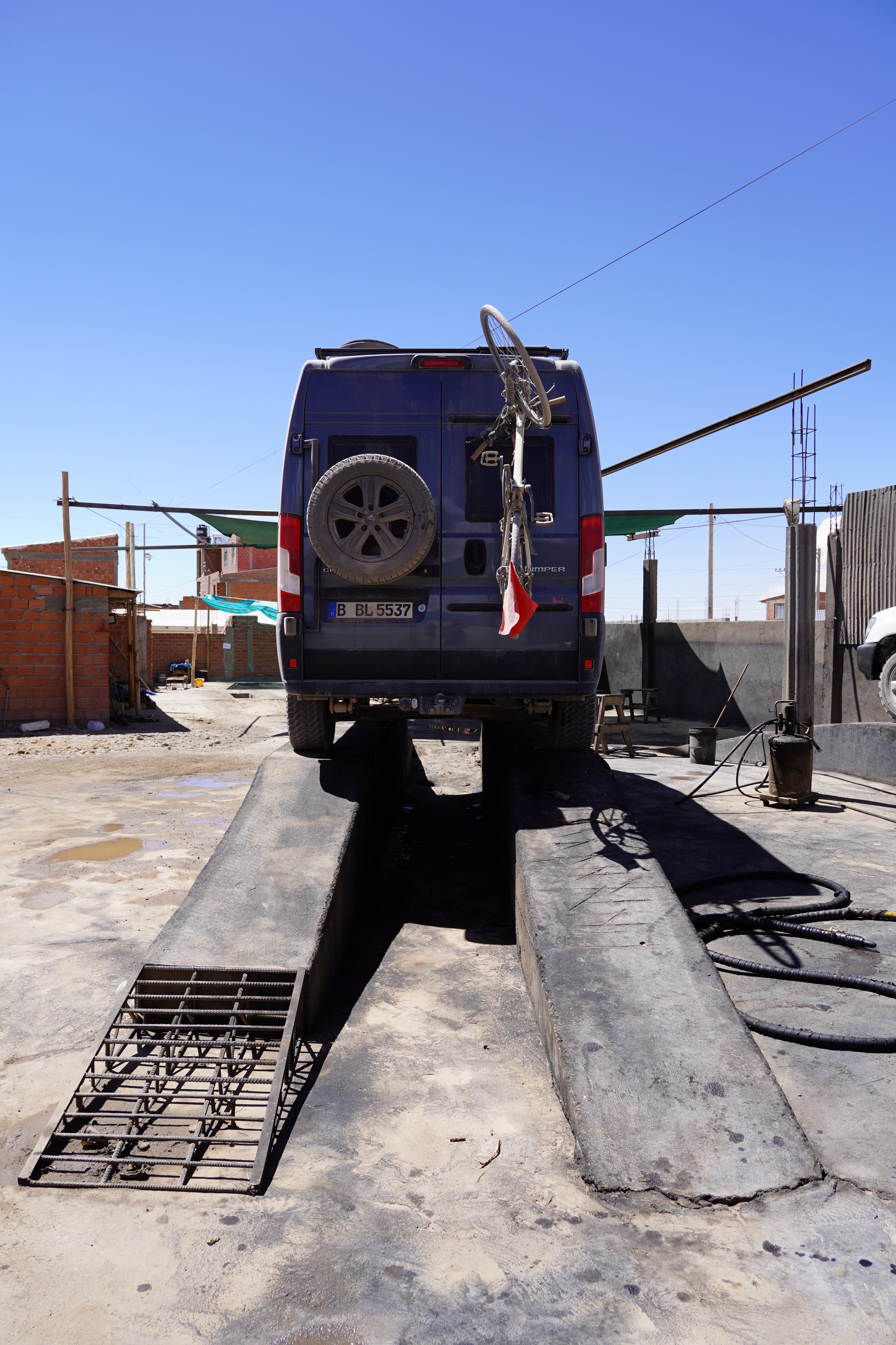 The next day, we headed north toward La Paz, crossing Bolivia. There were no roadblocks on this route; they were more common in the west of the country. But first, we went to the market together, filled up the diesel cans again (this time Björn had to go, and it worked again!!!), and said goodbye to the couple, who were now heading for the Lagoon Route. Thanks again to Michi, who gave me a sensor cleaning kit for our camera after all the dust and sand. Rosi got a very thorough car wash, which cost around €9 and took over half an hour. Several kilograms of sand came out from under Rosi’s underbody cover. And fist-sized stones (children’s fists). It’s important to clean the car after driving through the salt desert. Not that Rosi didn’t need it anyway. Afterward, she sparkled, and nothing was broken. Yay! Often parts break because the car washers gets a little too enthusiastic with the pressure washer, getting too close to sensitive parts.