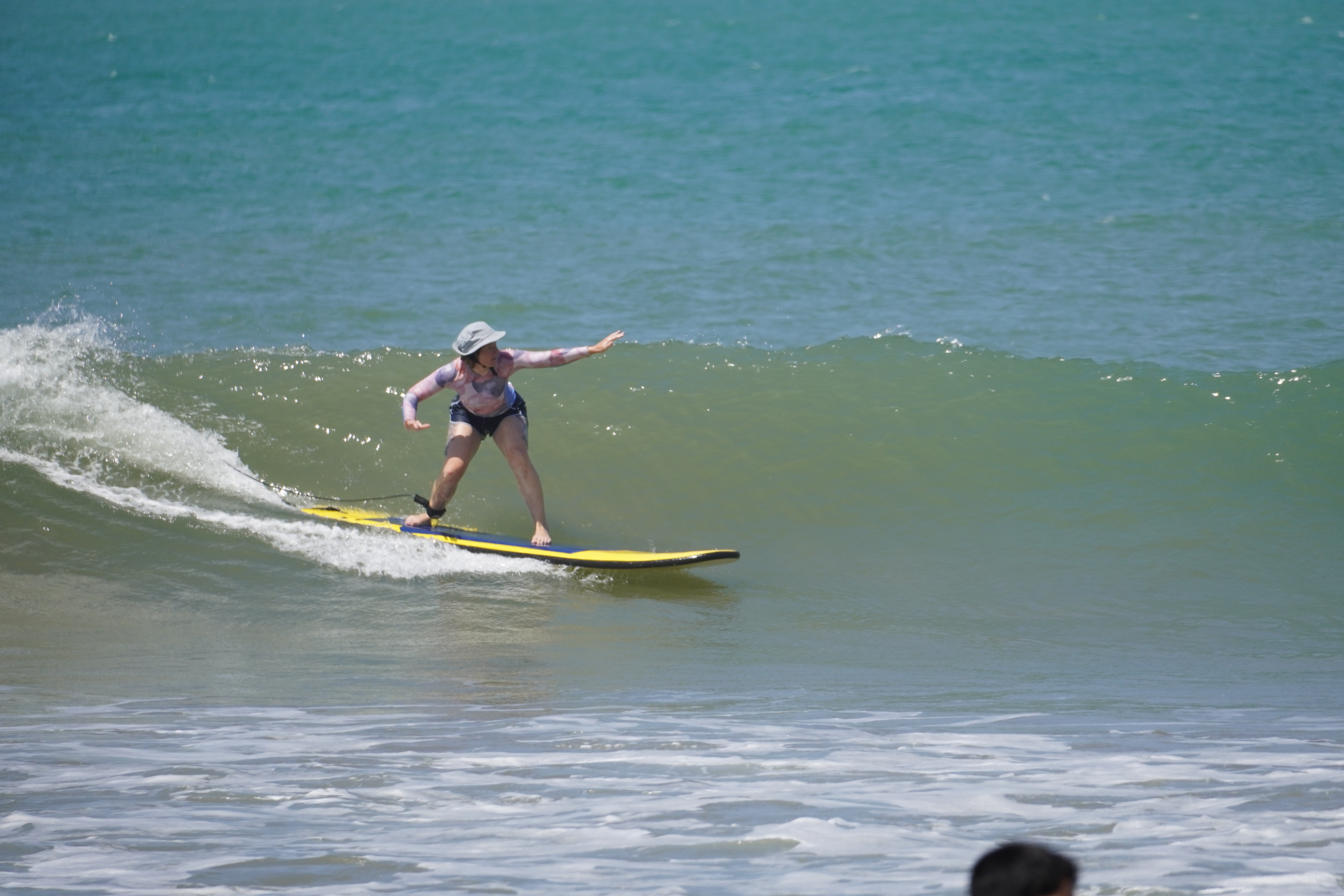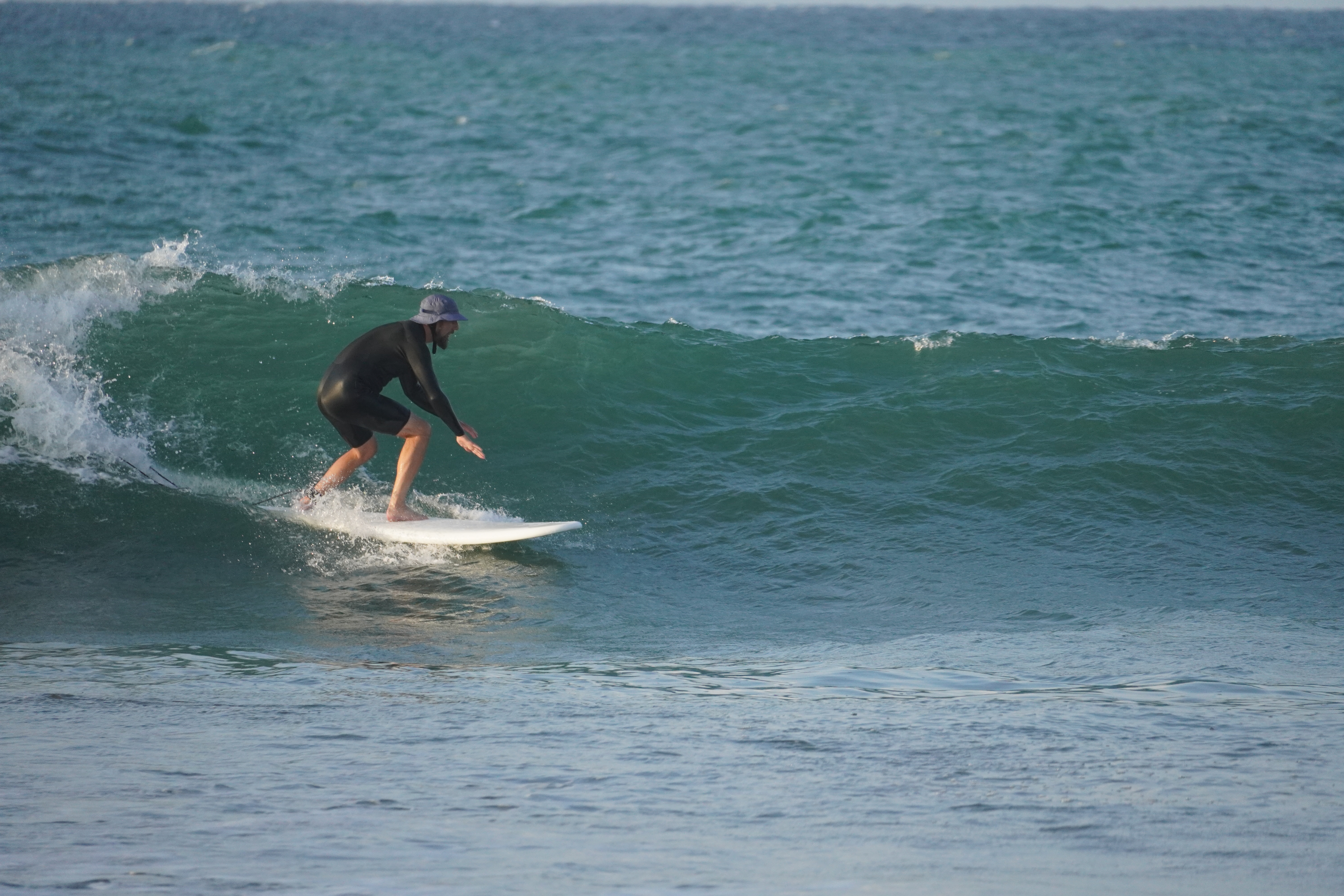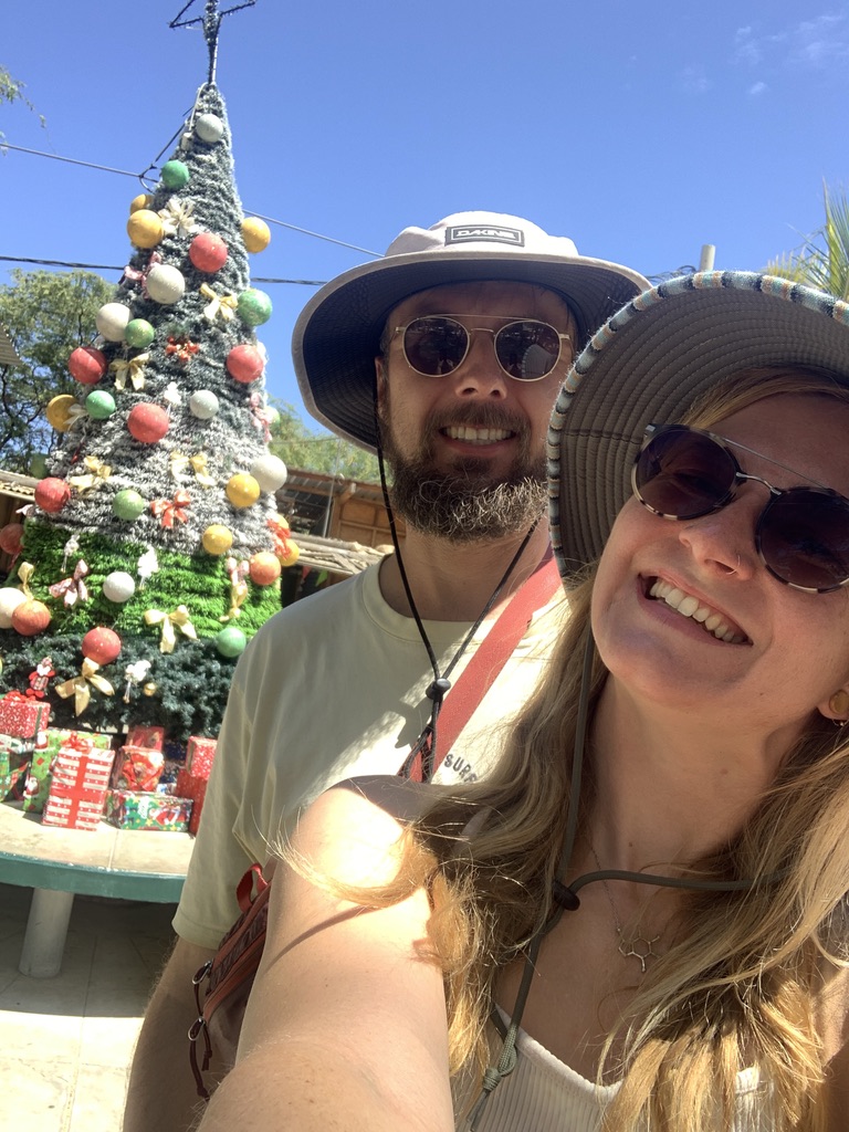 From el Brujo we had two long driving days all the way to the north cost of Peru and entered a nice little camp ground with direct access to the beach. It was initially our plan to stay there over Christmas and maybe even new years, but after we could not sleep at all the first night because of a party next door until 4am in the morning, we changed plans. Also we wanted some community over Christmas and meet other people, but once again we were completely alone on the little campground. Also we found out that the next surf spot was a one hour walk which was a little too far for us. All these reasons let to our decision to move to the next village, Mancora. Here we decided to book the only free room in the Hotel La Maison, which turned out to be the lodge. We wanted to get out of Rosi for a few nights, and here we could park directly in the Hotel and could enter the van just with a few steps from our room. The place was beautiful. It was the mixture of a Hotel and a Hostel, everything was build out of wood around a little common area with a pool. Instantly we got in contact with the other guests and some part of community feeling built up. To the beach it was a 5 minute walk, and right there was the surf spot as well. It was a long point break and pretty much all day people were surfing in the water. It felt so good to go surfing just by walking from the Hotel and I stood up every morning around 6AM to go in water for an early morning surf. The feeling of walking in half darkness and the mist of the sunrise to the beach and see the sun rise while sitting in the lineup between other surfers is just breathtaking. Even though the water filled up pretty fast with people competing for the wave, I enjoyed every morning. After the second day I recognized the other people and we greeted each other. Linda was also surfing a lot and took some classes with the oldest surf school in town, which lead to her catch a lot of waves. After every session she left the water with a huge smile on her face. Here in Mancora the people in the water with a surf coach basically have an automatic right of way. It was totally normal that they paddled into waves, that were already surfed from other people. In any other place I have surfed this would be a no go, but here in Peru people seem to surf like they drive…. recklessly and without any rules. For me it was therefore pretty difficult to catch waves, because I did not want to steal waves from the locals or the surf schools, so I had to be in position if somebody else made a mistake, which still lead to enough waves in every session. At some point I also booked a surf guide and now I got the right of way. In that hour I got way more waves than in all other sessions combined and I also learned a lot. All in all we both enjoyed every surf session we took. The jumping fish, the low flying pelicans and the sea turtles that popped their heads out of the water were just the tip of the iceberg for this great surfing experience.
