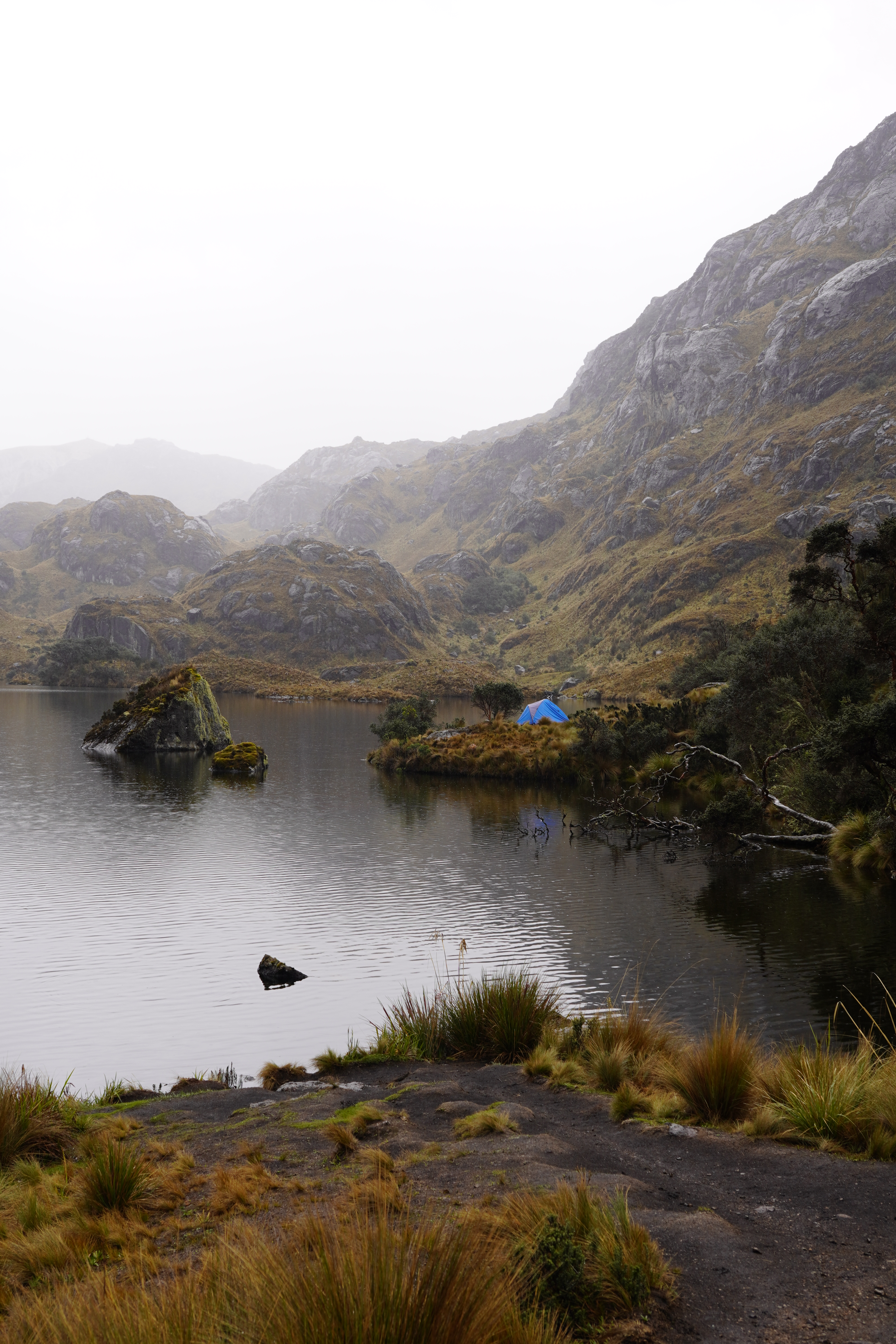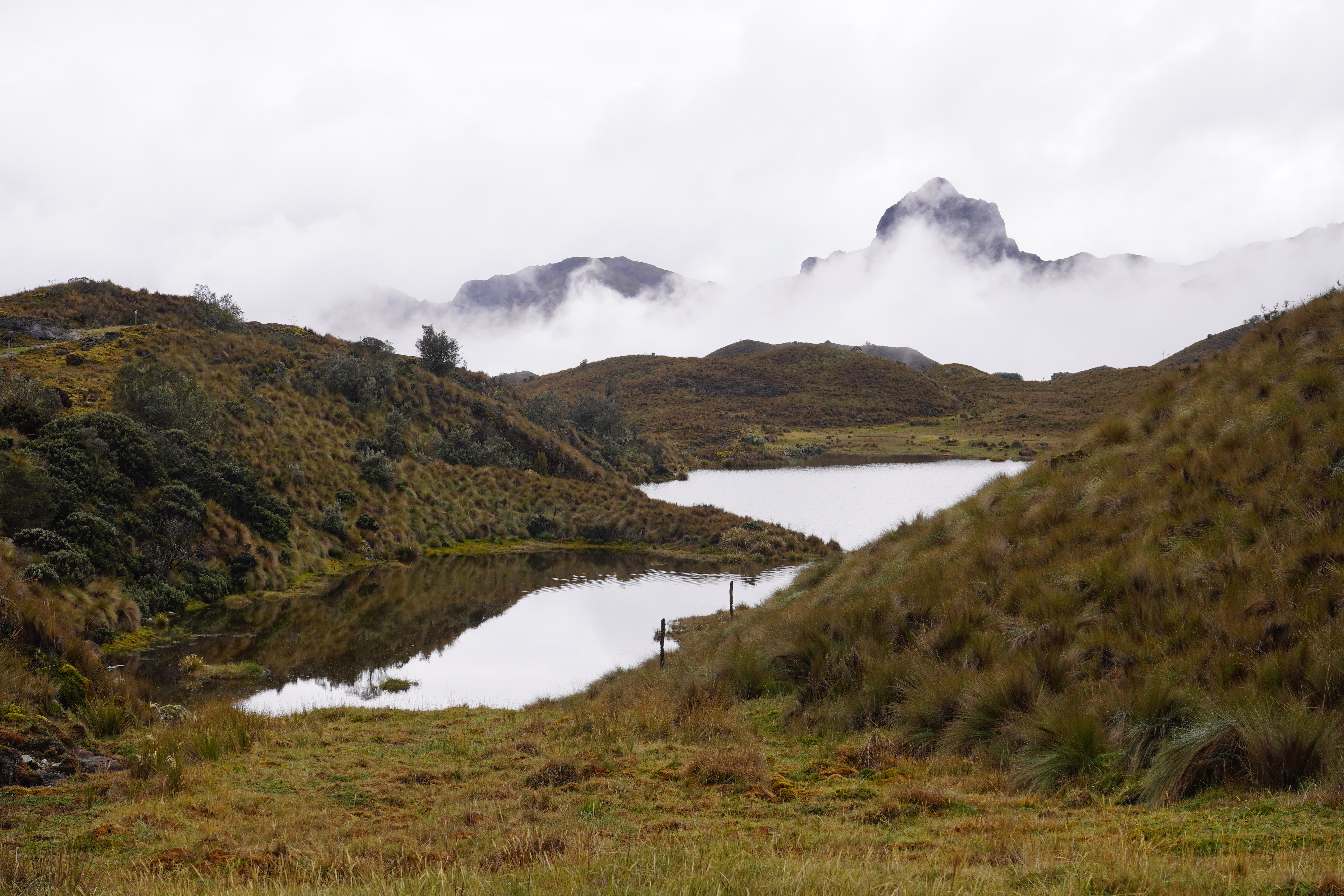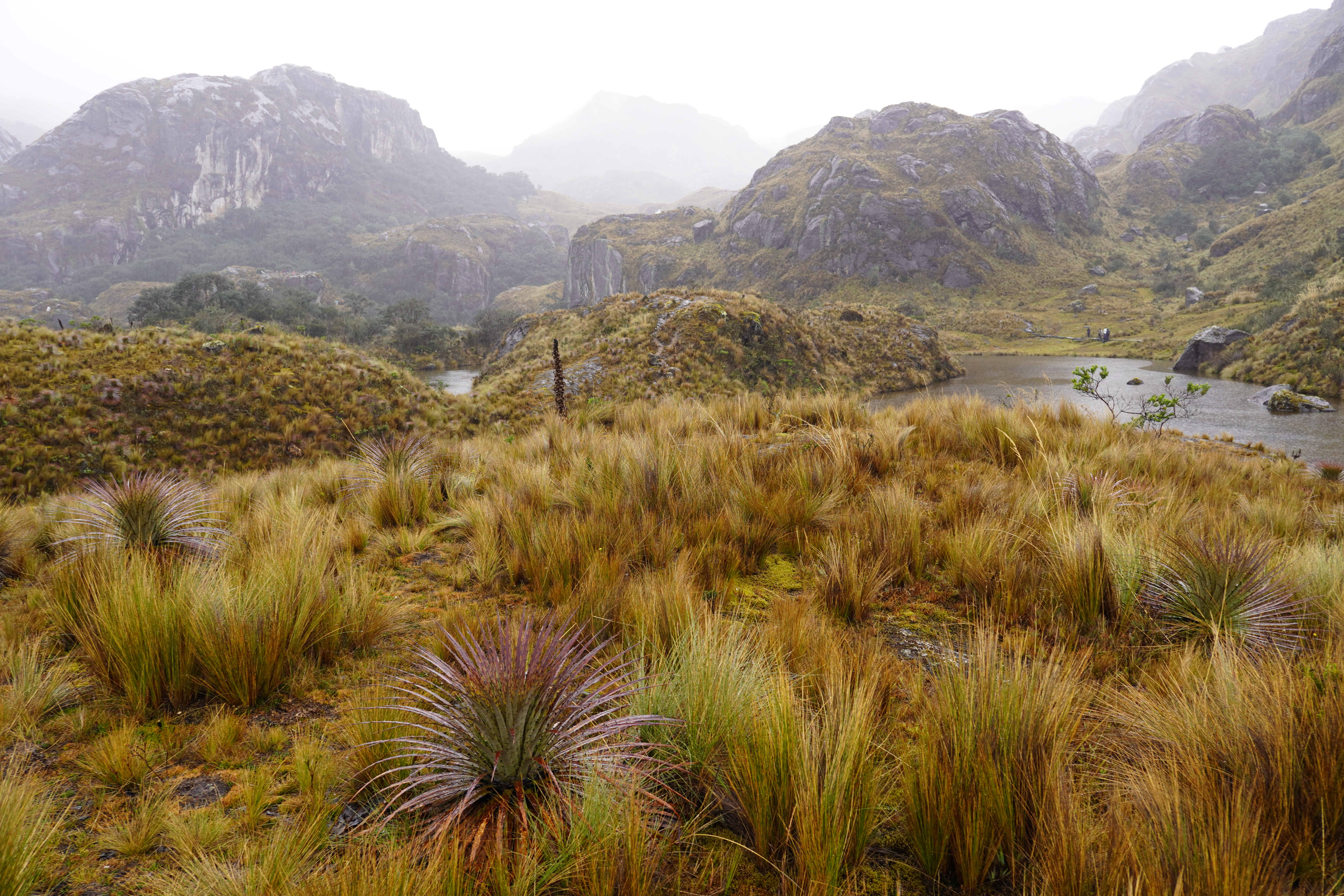 After two days in Cuenca, we continued to Cajas National Park. Even though the weather wasn’t on our side, we hiked for two days and got soaked to the skin both times. It was still beautiful. The landscape reminded me of Scotland or Ireland, just at over 3000 meters altitude. It was astonishing how suddenly it became cold and wet. Just a week ago, we had been surfing in Mancora in perfect weather. But it was the rainy season here. After the hikes, drinking a warm tea and heating up Rosi was especially nice. It warmed us up quickly and was very cozy. The next day, we planned to fish for trout in a pond and stay there overnight. We first had some tea and warmed up with soup at a restaurant. When we returned to Rosi, the floor and table were wet, and Björn quickly discovered where the moisture was coming from. It was dripping through the roof window, drop by drop. It had been raining for three days, and it didn’t look like it would stop anytime soon. We placed our dishwashing bowl on the back seat to catch the drops. All the tricks and tips to stop the dripping didn’t help. The plan to fish for a trout was put on hold. We decided to drive into the valley where it wasn’t raining. The next day, we wanted to visit a cocoa farm. On the spur of the moment, we decided to drive there because it was dry and about 30 degrees there. But first, we had to descend from the mountains into the valley, past a landslide that covered half the road and caused a long traffic jam. But the lower we got, the less it rained.