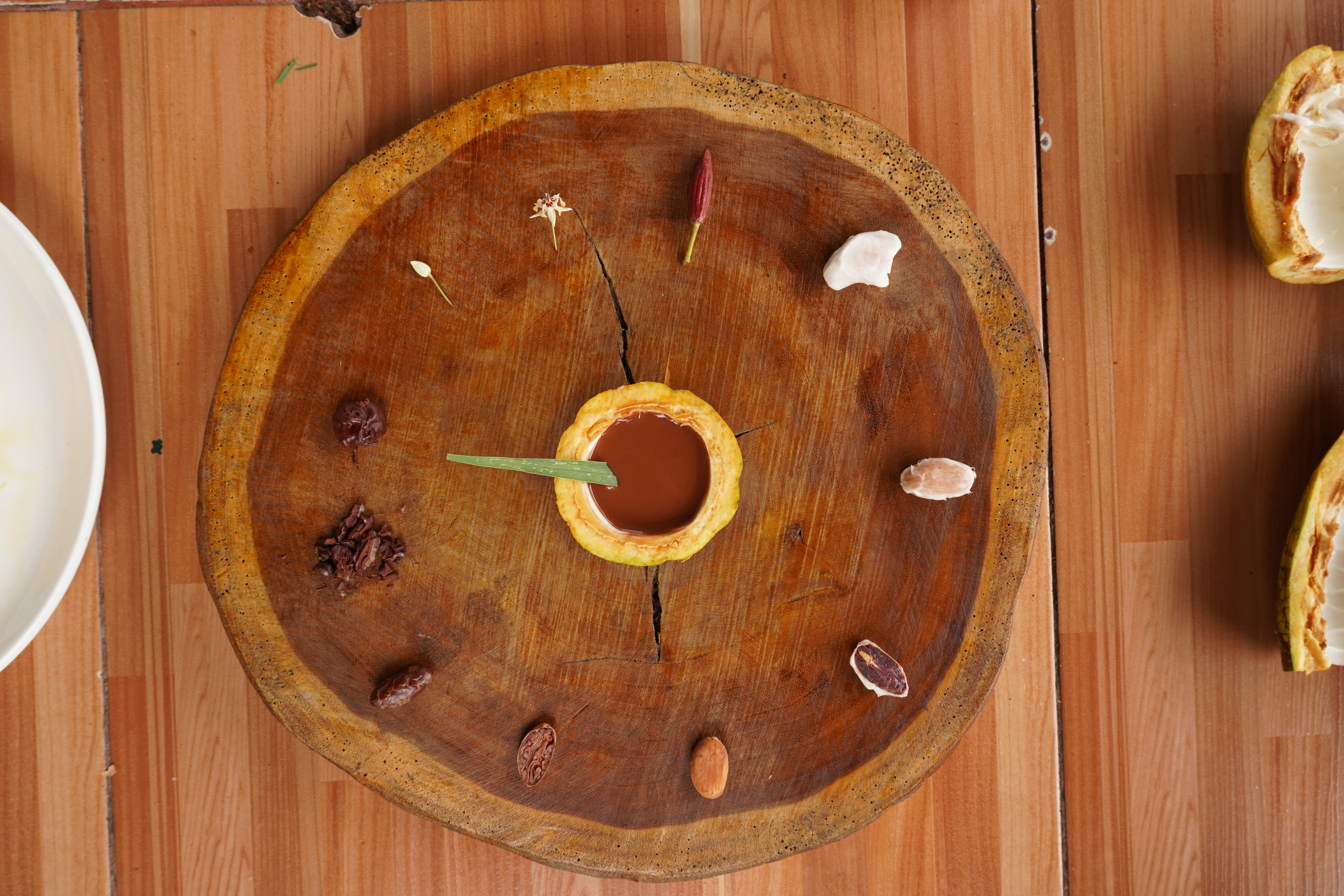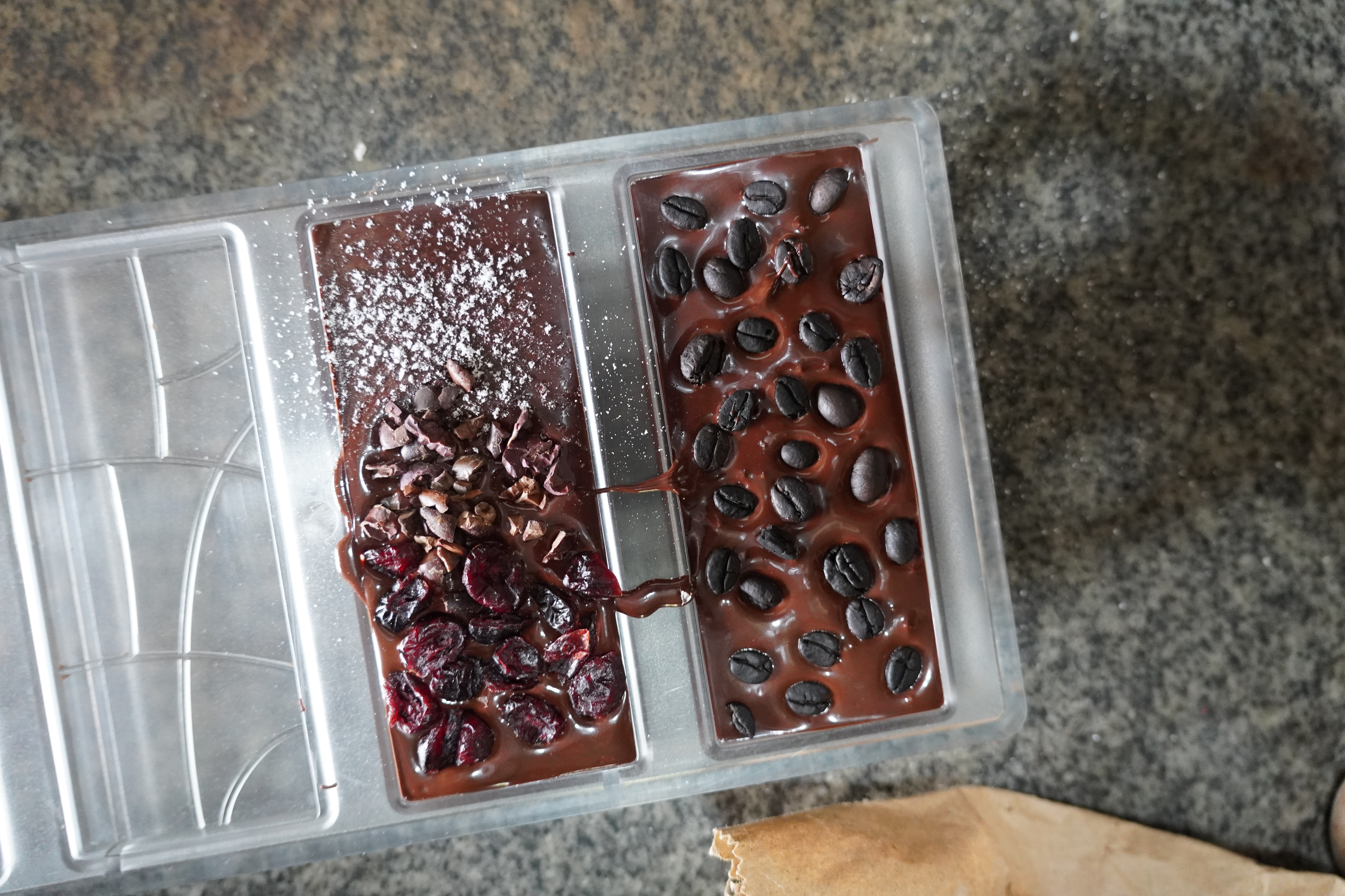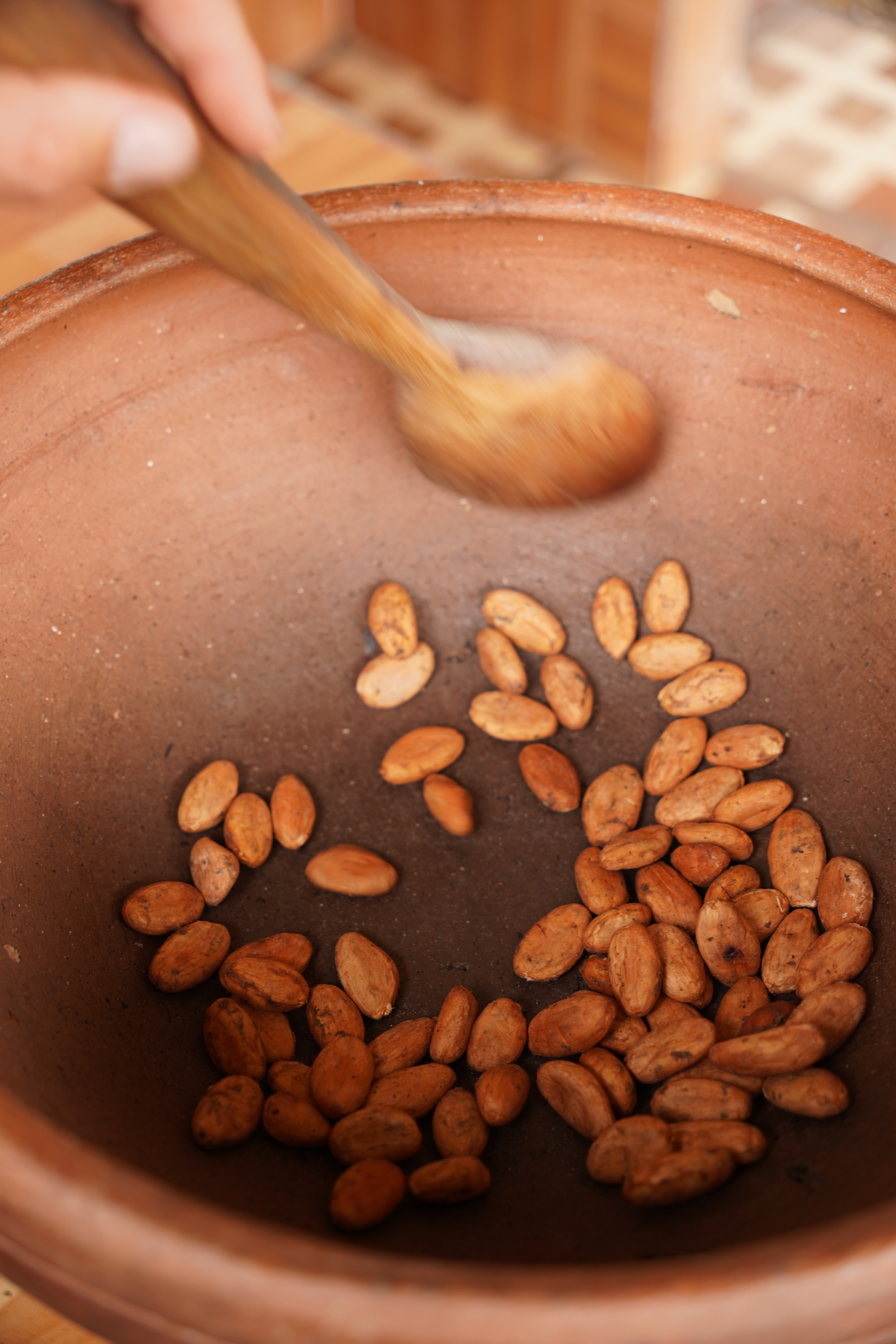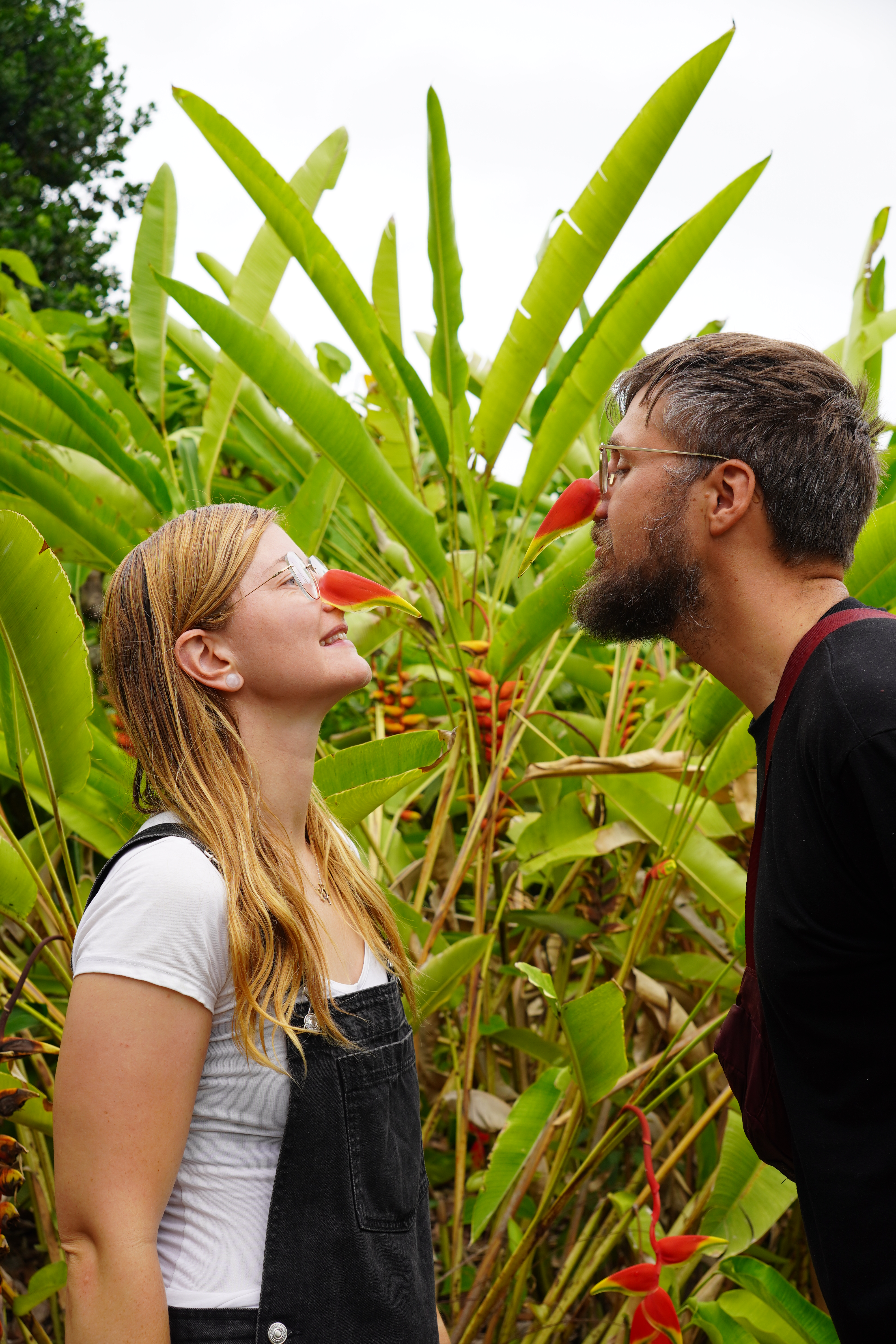The landscape changed. We were in the jungle. Now we saw the first cocoa plants with their dark red pods. At Hacienda Cacao y Mango https://ecuadorfarmtours.com – we dried our damp hiking clothes and boots. Although only about 100 km separate the national park in the mountains from the cocoa farm, the climate here was completely different. It was warm and humid and perfect weather for mosquitoes. I had never had so many mosquito bites at once in my life. Yet. We couldn’t repair the roof yet, that had to wait until the next big city, Guayaquil. But at least it wasn’t raining anymore, and Rosi was dry. The next morning, we quickly had coffee to wake up, and then we were off. At 9 a.m., our private cocoa tour with Jamil started in English. It was immediately clear: Jamil loves his job. He has a passion for what he does and conveys it with every sentence about cocoa production. I can say in advance, the experience on the cocoa farm was one of the highlights of our trip. We went into the plantation and took a close look at the cocoa plants. The pods can be harvested all year round, every two weeks. If they are not picked, they just stay on the tree. We saw all stages of the fruit: a very beautiful small white fragile flower, pods in all sizes and colors, up to the fully matured fruit. The flowers are so tiny that only very small insects, mostly mosquitoes, can pollinate them. Pollination is very complex, and only 10% mature into fruit. Since this is an organic farm, no additional chemicals are used, as they would also harm the mosquitoes and insects. The leaves and fruits simply fall to the ground, serving as fertilizer and food for the insects. The cocoa is grown here in a mixed culture alongside bananas, mangoes, avocados, limes, coffee, vanilla (I have never seen such a beautiful flower before), pepper, palm trees, and many other plants. The advantage of this mixed culture is that there is more shade, fewer pests, better soil quality, and a higher pollination rate for the cocoa. We spent about an hour in the plantation and learned a lot. I was thrilled by all the plants and fruits. We picked four different cocoa pods, including two red and two yellow varieties, to compare them. The red pods are cultivated hybrids with more pulp. CCN-51 is a hybrid cocoa variety widely grown in Ecuador. It was bred in the 1960s and stands for Cacao Colección Castro Naranjal, Plant No. 51. It is very resilient, resistant, and yields a high harvest. However, compared to the yellow Nacional (Arriba) cocoa bean, it is rather bitter and of lower quality. After harvesting, the cocoa beans are removed from the pod and fermented with their pulp for several days. We had the unique pleasure of drinking juice from the pulp. It was delicious. We also tried red berries that made the taste of a lemon sweet. Afterwards, the beans are roasted, which we also did. The smell was indescribably good. Now, similar to peanuts, you can remove the shell, break the bean with your fingers, and obtain delicious cocoa nibs. Pure freshly roasted cocoa bean. However, we put our roasted beans into a kind of meat grinder and obtained 100% cocoa paste. This only needs to be mixed with at least one other ingredient, such as panela (sugarcane sugar), and you get chocolate. We ate ours with freshly picked mango and banana. Along with it, we drank hot cocoa. Although I am not a chocolate fan, I was in heaven. The chocolate and cocoa had a completely different taste than what you know from Germany. Many Ecuadorians drink cocoa in the morning instead of coffee. Cocoa contains theobromine, a mild stimulating substance. It also contains many antioxidants and stimulates serotonin production. After our chocolate breakfast, we made our own chocolate bars. Björn took salt, cranberries and cacao nibs, and I took coffee beans as a topping. We also bought a large bag full of cocoa nibs. Many Ecuadorians benefit from cocoa production. Due to poor harvests in Africa, the price has risen from 2 to 8 dollars per kilo. Unlike banana plantations, which are only cultivated by a few large companies, almost everyone here in the country grows cocoa and can harvest it. By the way, only the hybrid beans are exported; the good cocoa from the yellow cocoa beans stays in the country. Here, it is processed directly into chocolate bars and sold. From tree to bar. Or in our case: from tree to mouth.