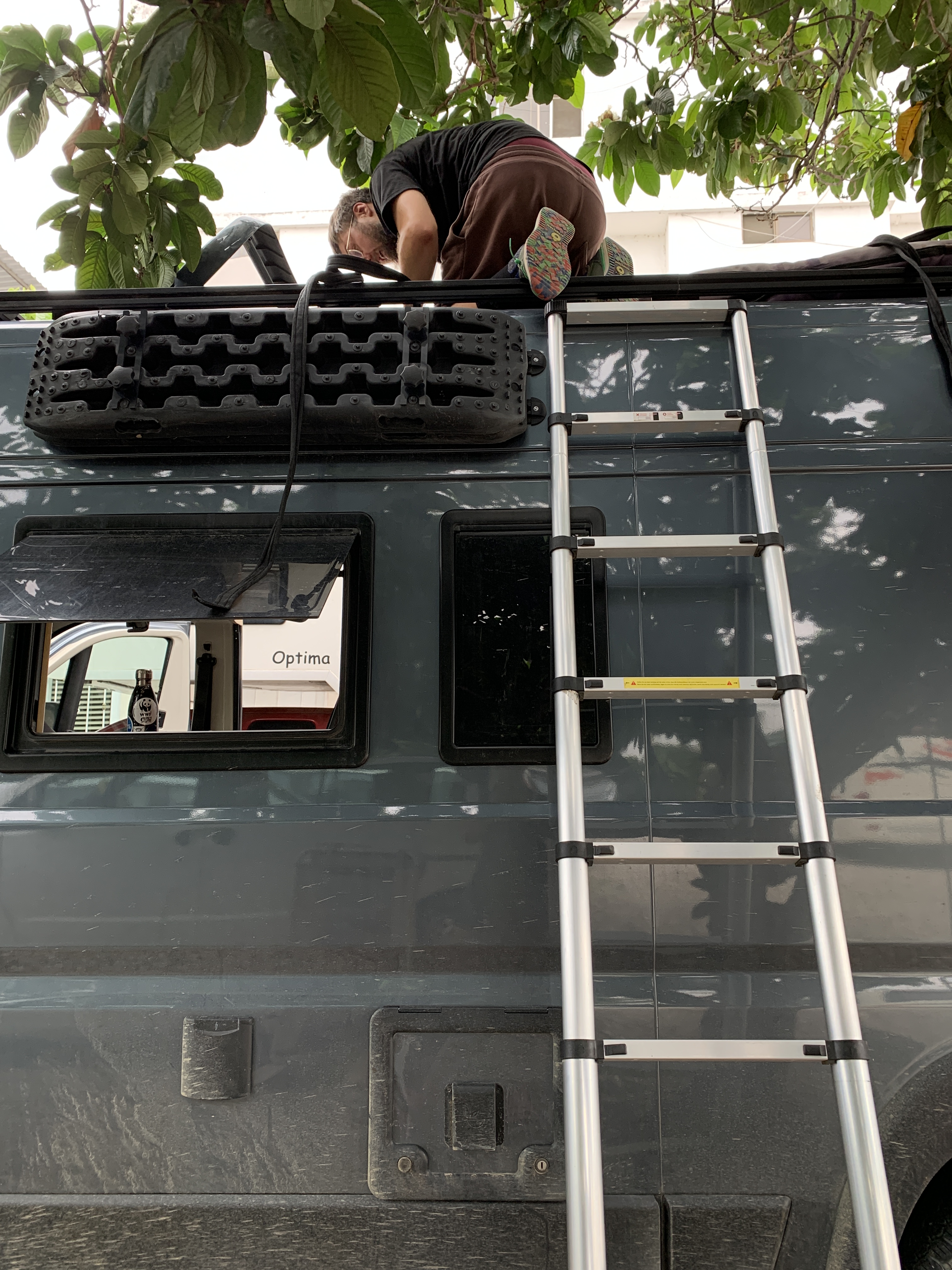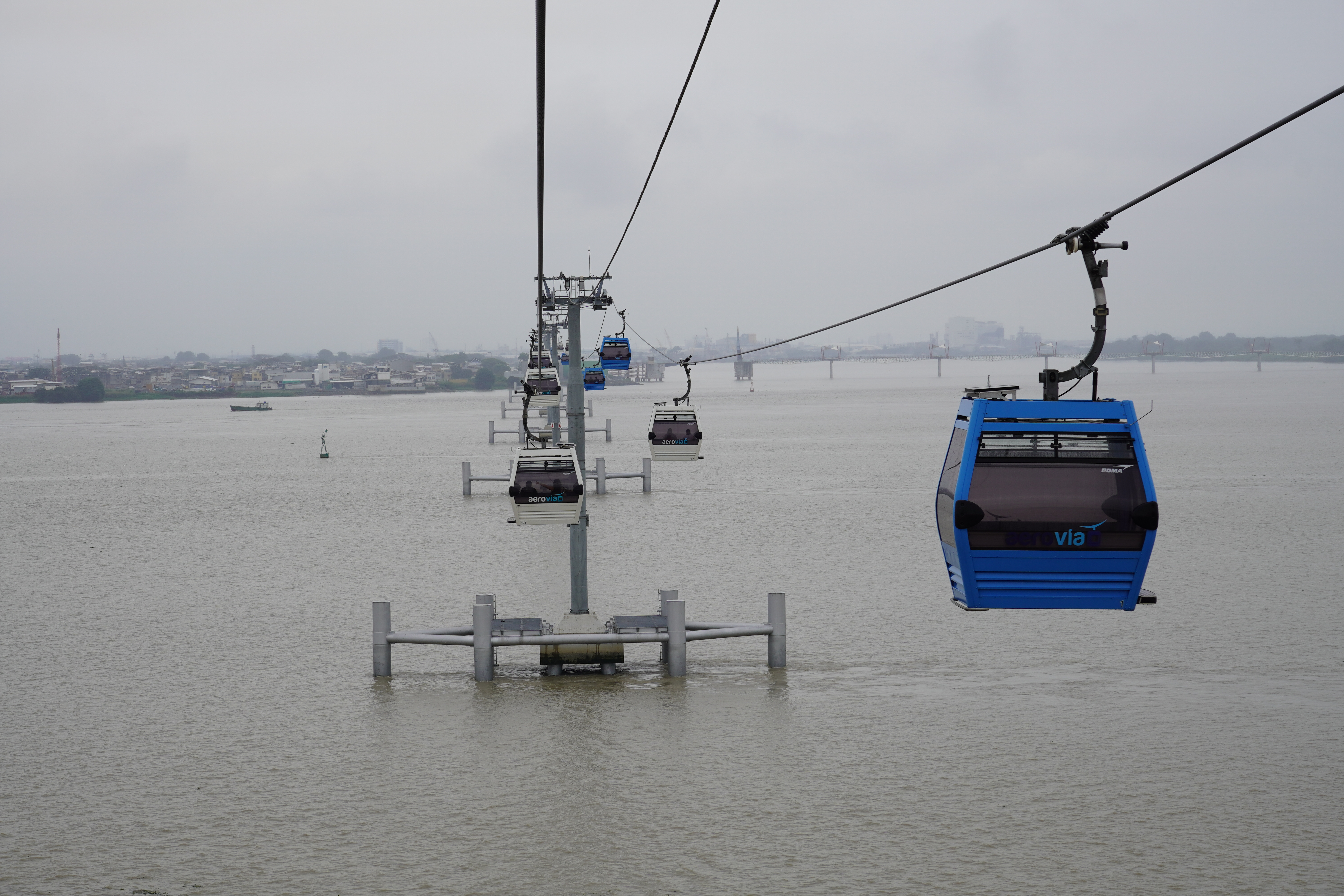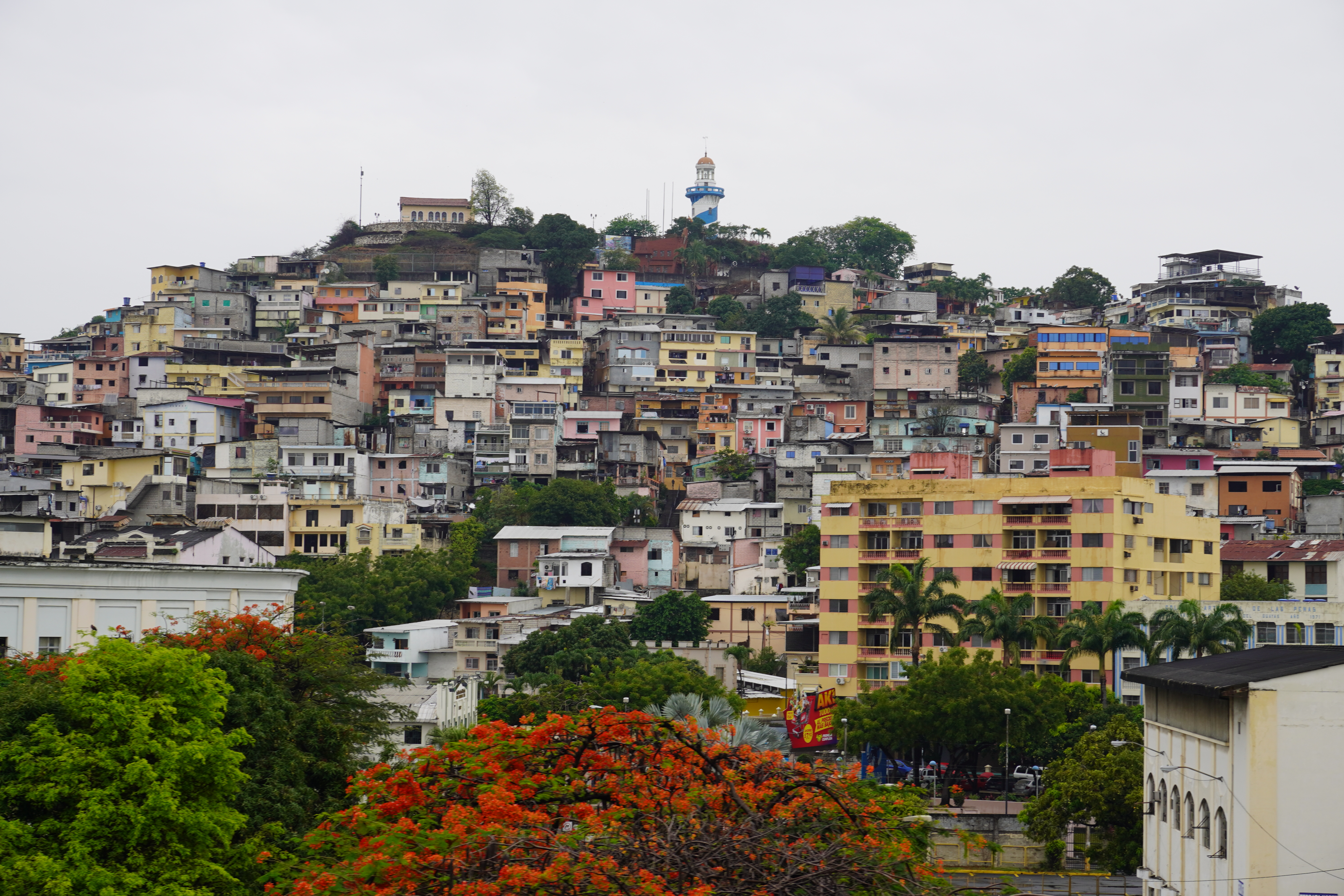 With full chöcolate bellies, we continued on to Guayaquil. Guayaquil is currently one of the most dangerous cities in South America, as the city is an important hub for the cocaine trade. But that was not why we were here. We had a safe parking spot in mind and still did a bit of sightseeing: a visit to the Mall de Sol, a ride on the Aerovía (a cable car over the Río Guayas) with a beautiful view of the city’s skyline, and a visit to the city center with a delicious brunch. We felt safe in the city. We knew where we could stay and where we better not. At our parking spot, Björn fixed the roof window, we washed Rosi and packed our backpacks. Because the next trip was to the airport, which was the real reason we visited Guayaquil. We flew to San Cristobal, to the Galapagos Islands.