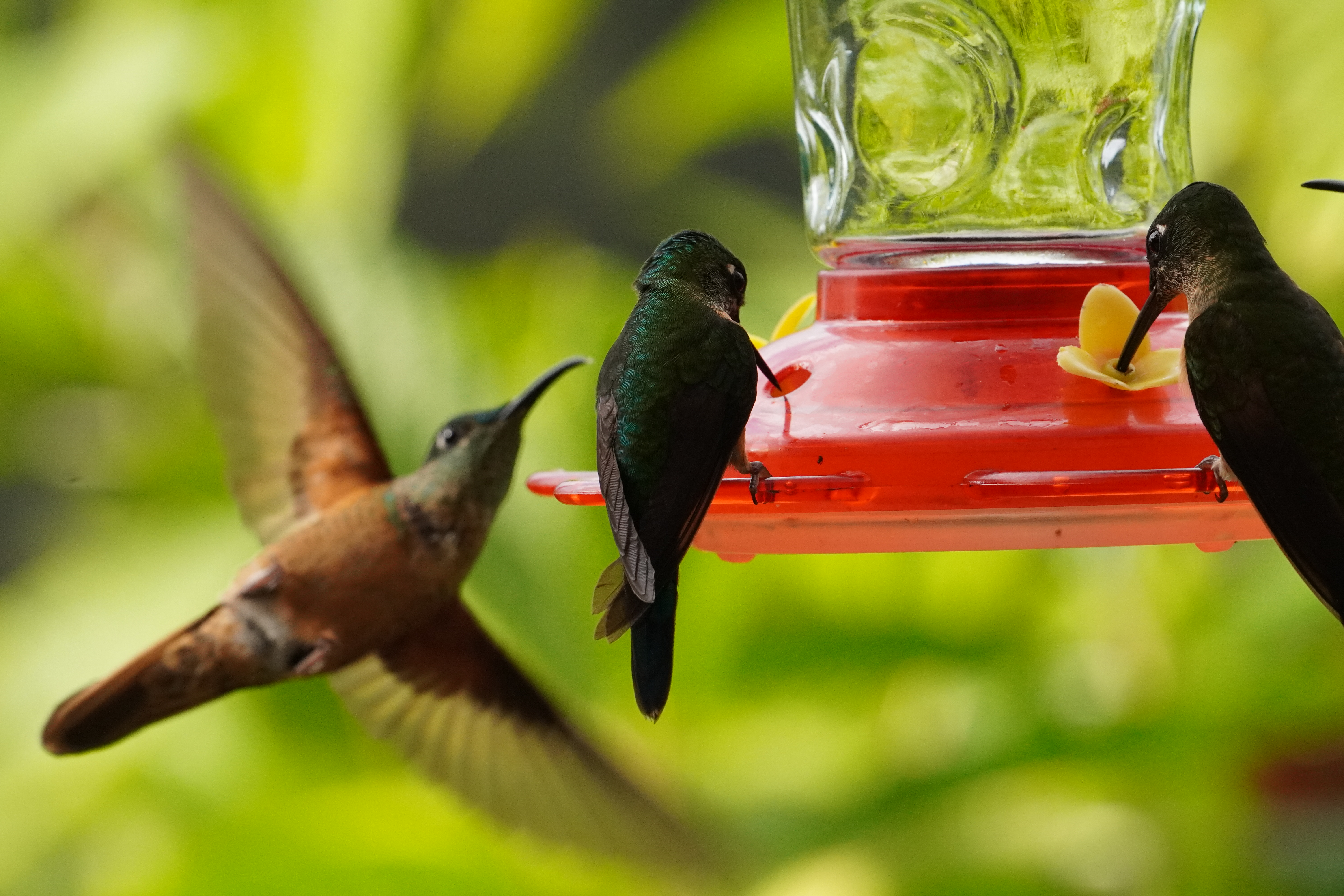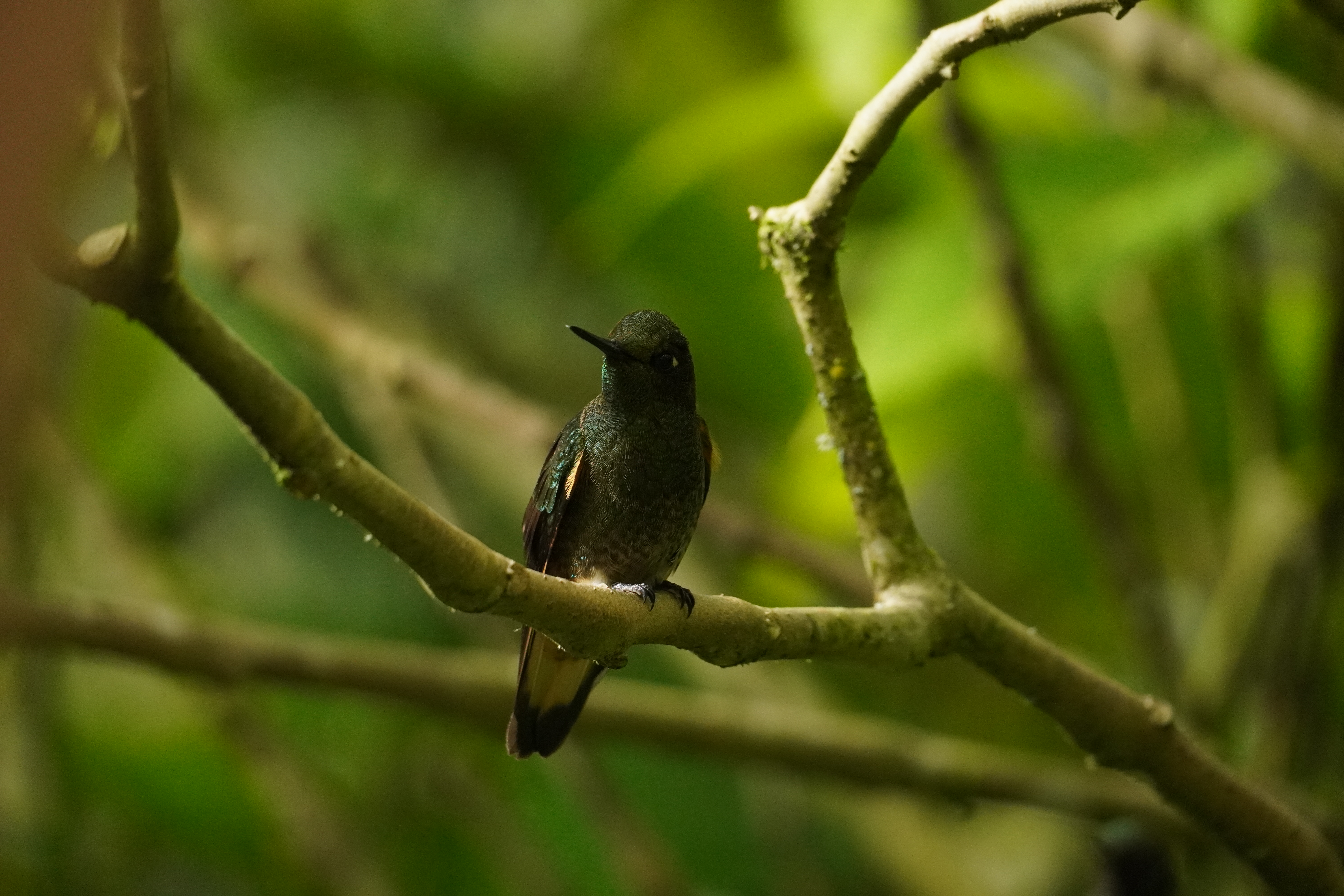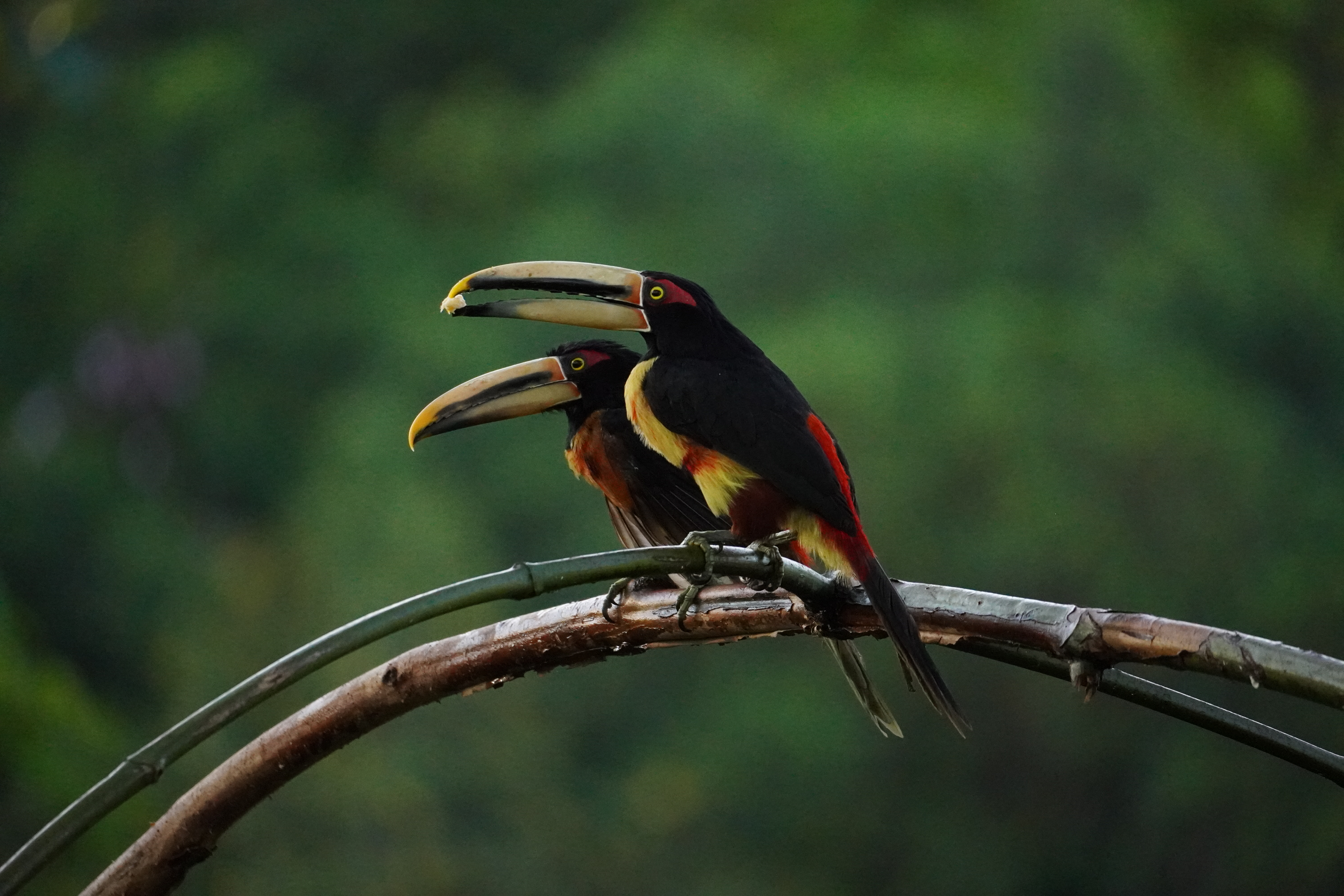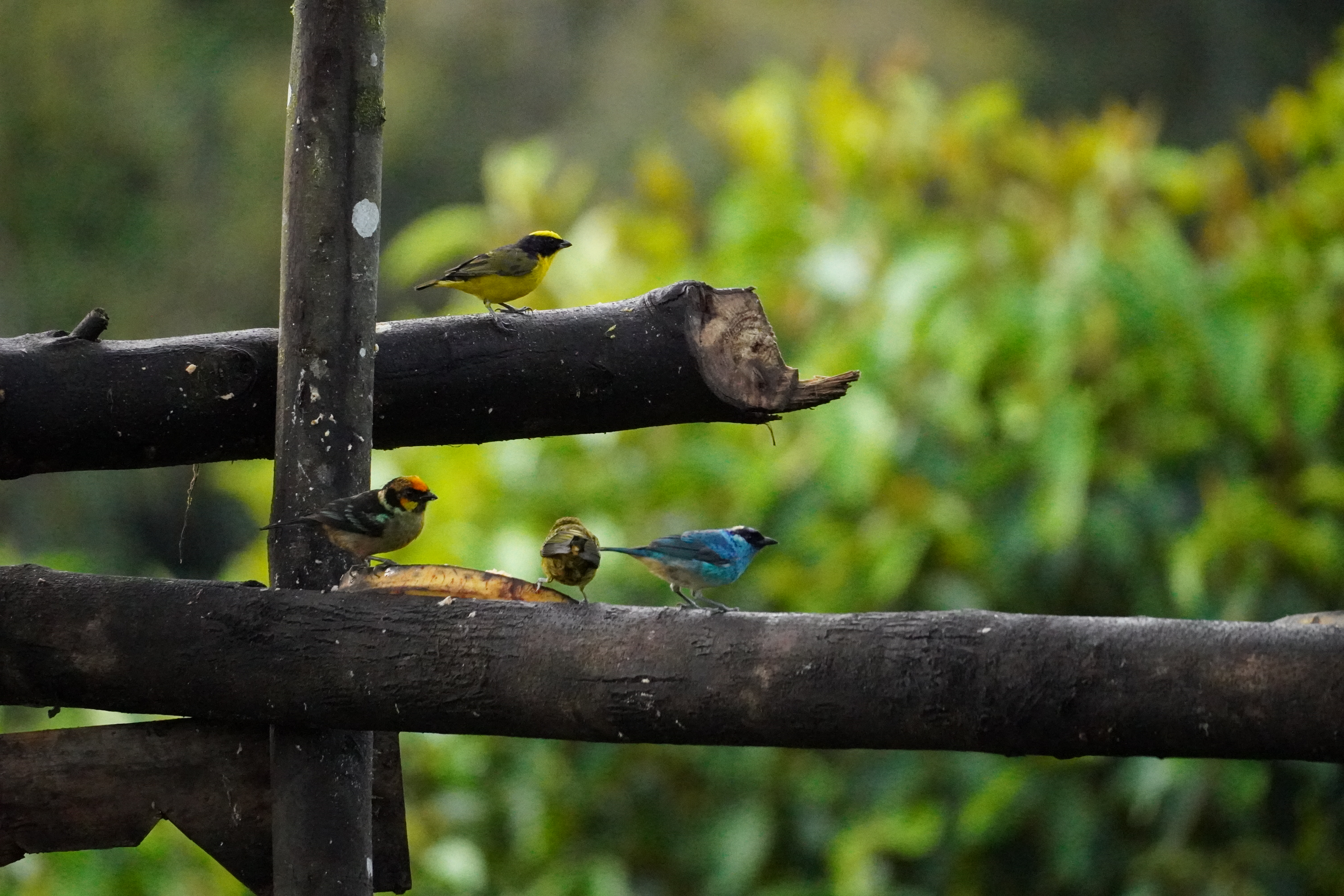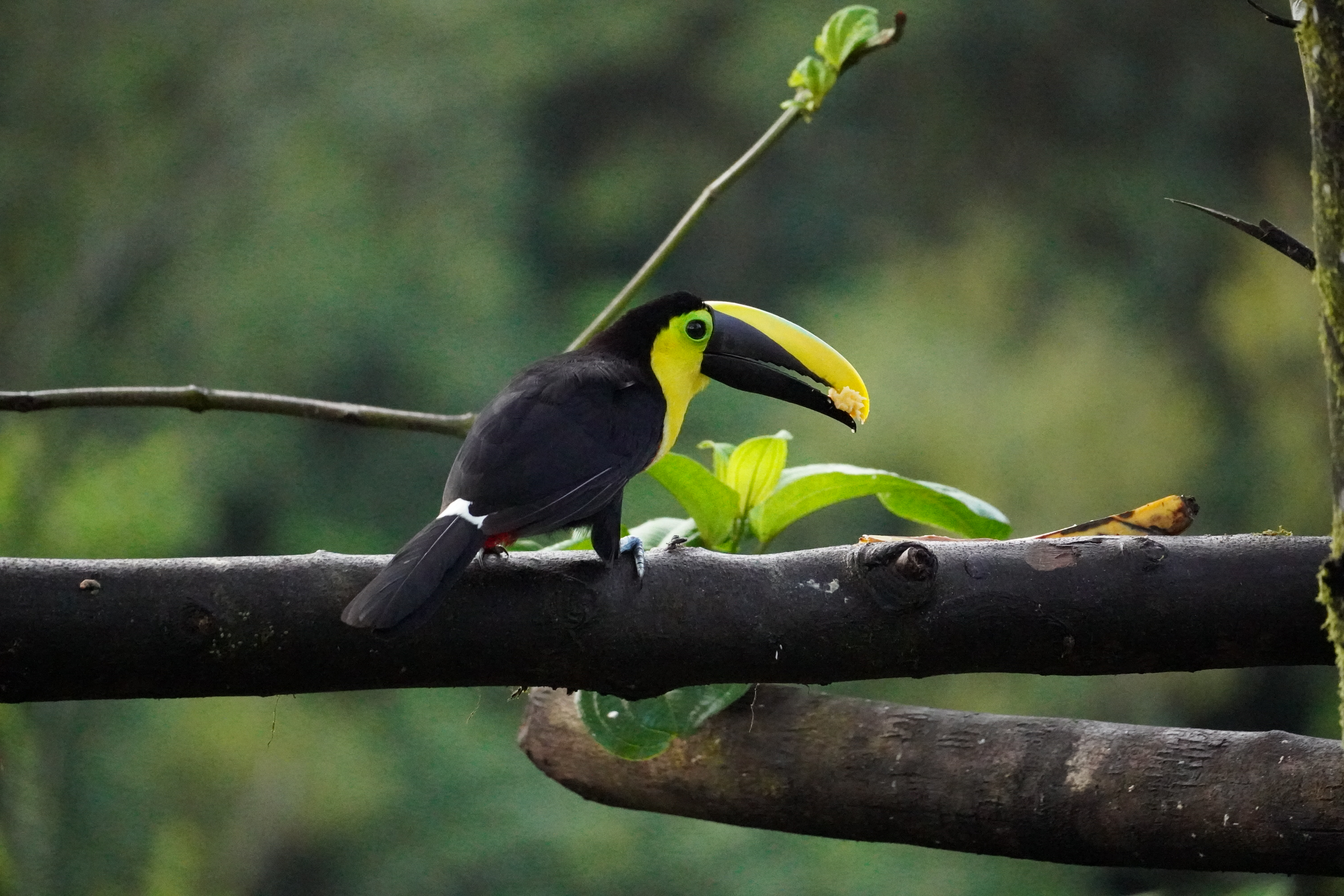 The next morning we were picked up at 6AM in the morning by Sandy and her driver (I guess he was barely 14 years old). We drove to a little lodge in the forrest and they presented us a breakfast that was better than in most Hotels, while we were watching birds. And what than happened was intense: The sun shortly after rose and Sandy found new bird after new bird within seconds. She was naming all of them and could even imitate their sounds. They were flying one after the other to the before placed bananas in front of our hideout. There were at least 6 different kind of colourful finches, two different kind of toucans and many other bigger ones that she spotted in a way that I would have never ever been able to see. At the same time there were 10-20 humming birds around us. Linda and me were totally amazed and did not even know where to look. At times it was overwhelming. While Sandy was explaining which birds was which, she thought her driver how to spot birds, discussed with the lodge owner about politics and ate breakfast and drank coffee …ALL at the same time. You could see that she was in her element and feel that this was her passion. After watching a while we went back to the car and got dropped off with Sandy in the middle of a narrow road in the cloud forrest. The next thing that happened, I have never seen before. We just walked along the road. Sandy heard a bird, named it and than made the sound of the bird, either with a speaker she had with her or just with the mouth and EVERY TIME the bird showed up. I cannot even name the birds anymore. Most of them were really colourful. If you a really into it HERE is a list of all the birds we saw.