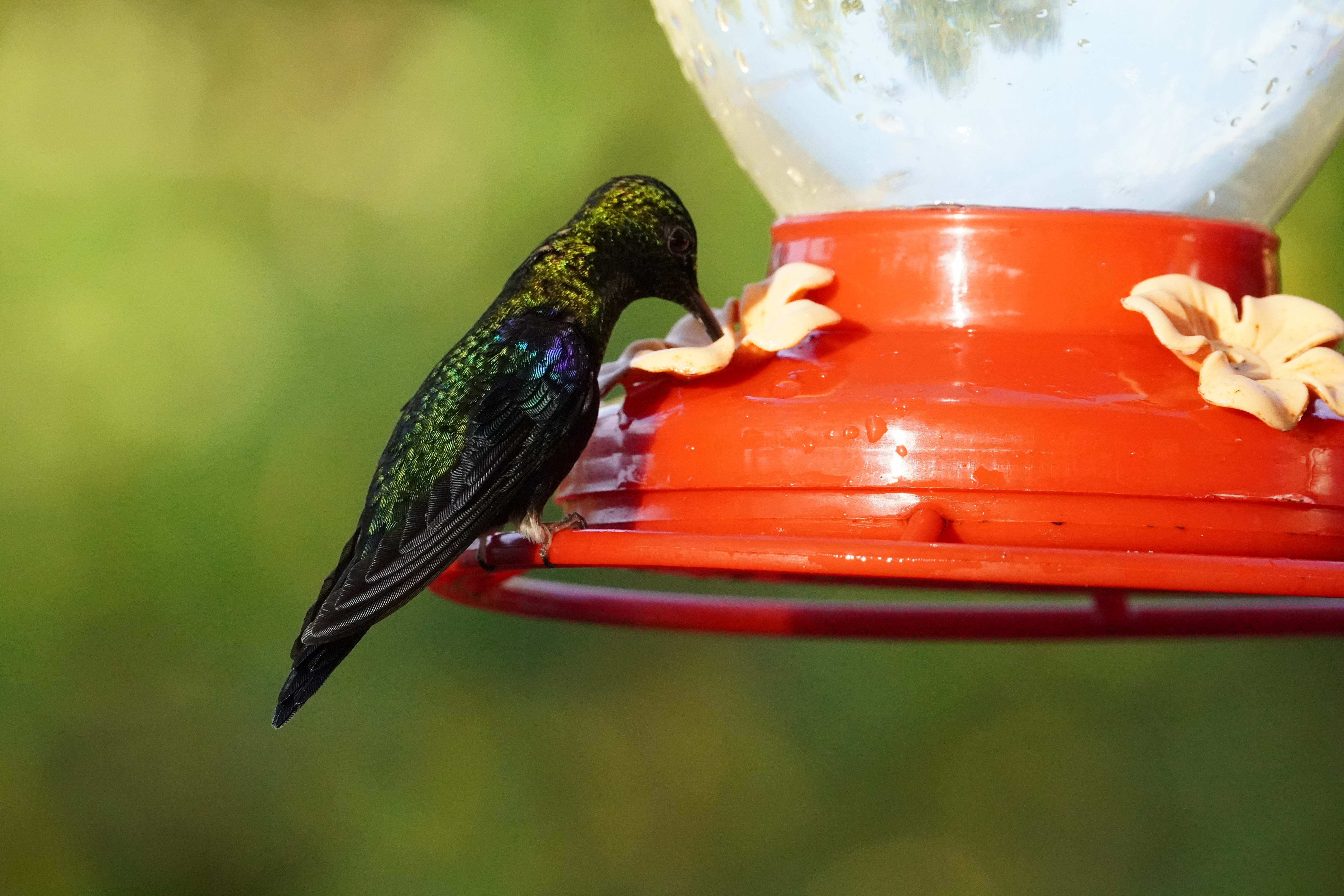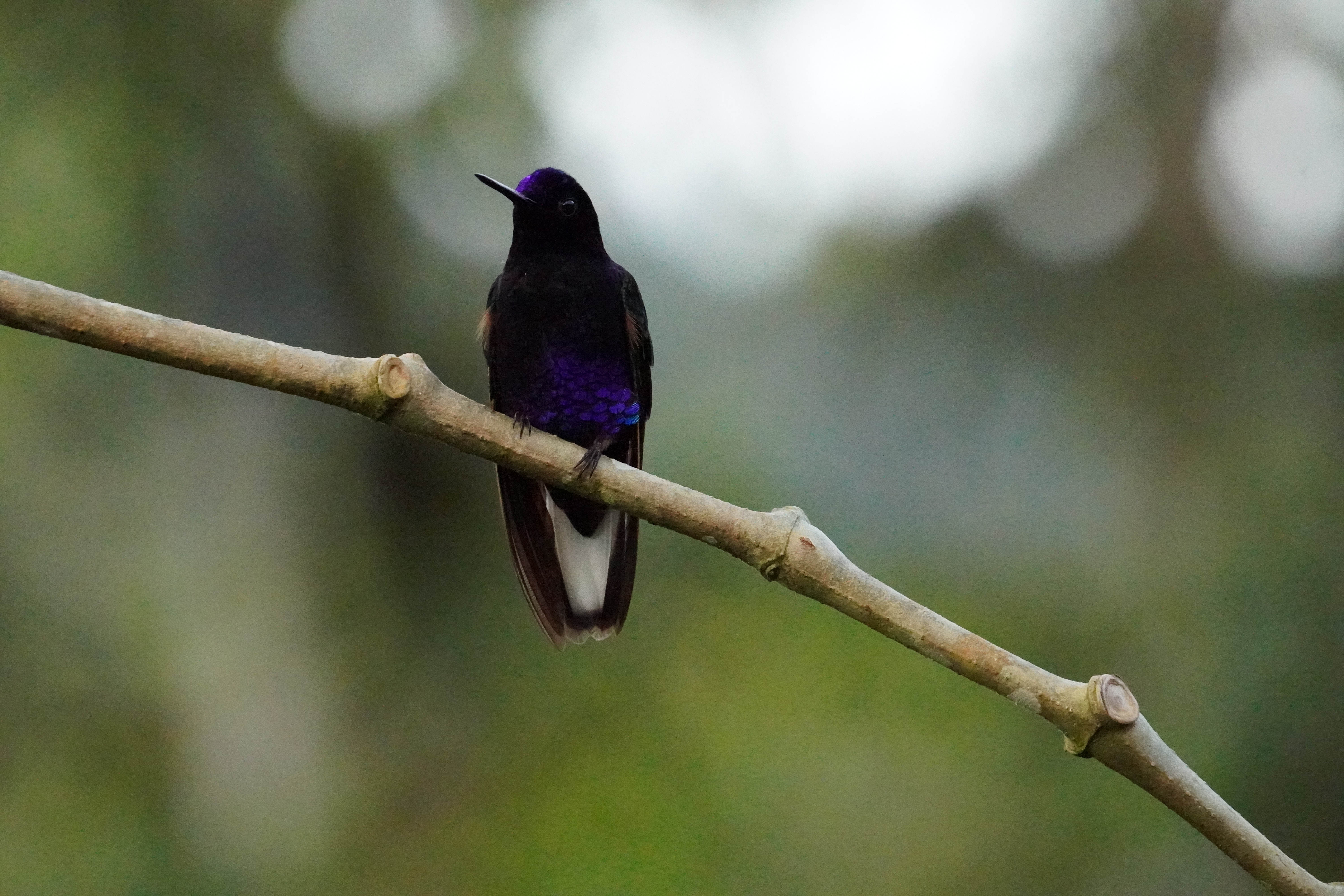 The highways in Ecuador are exceptionally good, in many cases way better than the Autobahn in Germany. Therefore we could travel way faster than in most other countries. After a few hours we passed the huge city Quito with wild highways up and down around it, crossed the equatorial line and were back on the north half of the globe. We did that on the way to Mindo a little town in the cloud forrest. The road was winding through a huge valley but in perfect conditions. We made a little stop at the Los Armadillos cafe for a coffee and because we read that you could see a lot of humming birds there…. and that was a slight understatement. The place was literally humming from the humming birds. We counted way over 15 different species of humming birds, from tiny green ones to huge black ones. The place was amazing! We had a good coffee and a fresh made sweet empanada filled with pineapple jam while the humming birds were flying all around us.