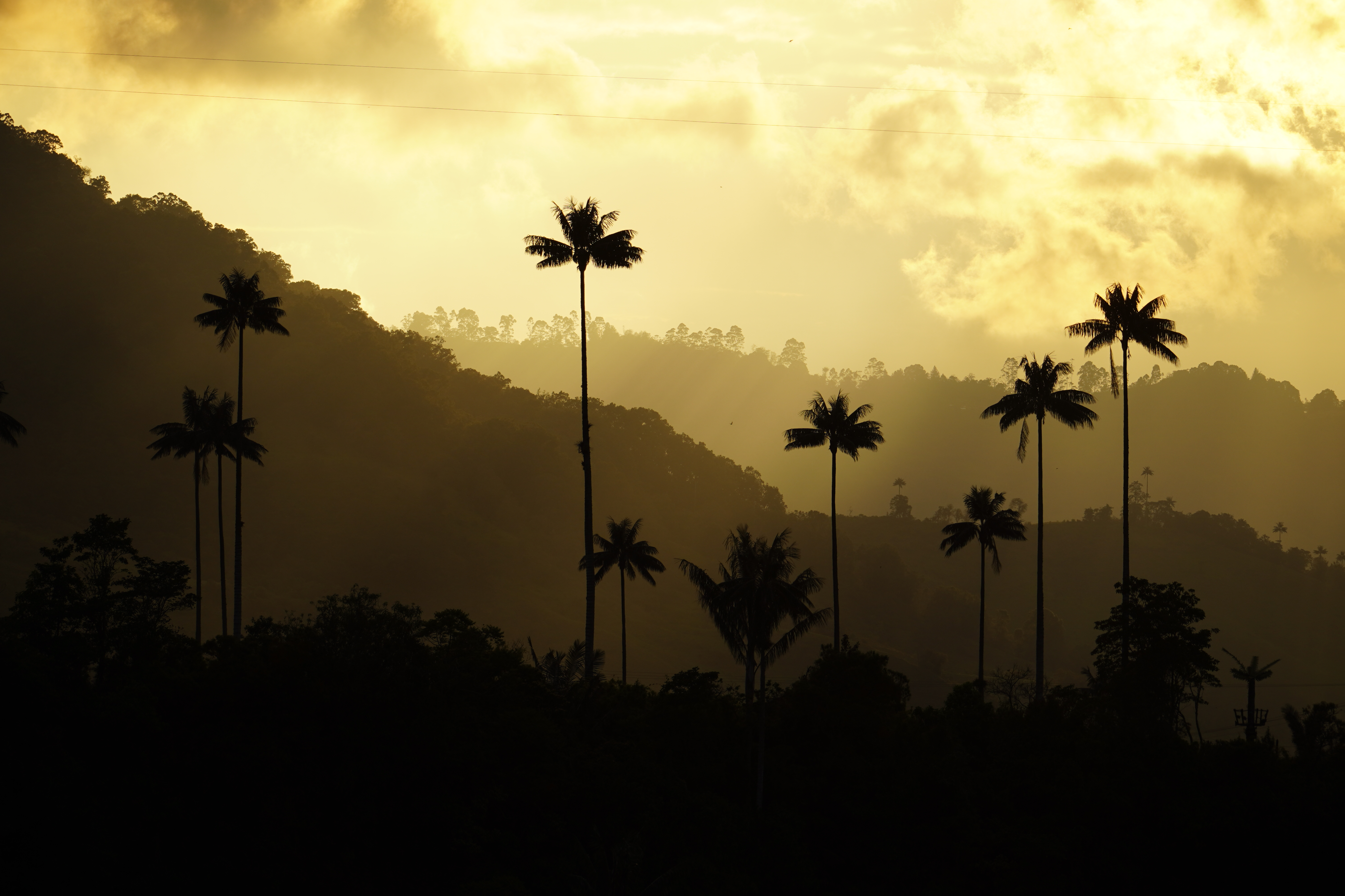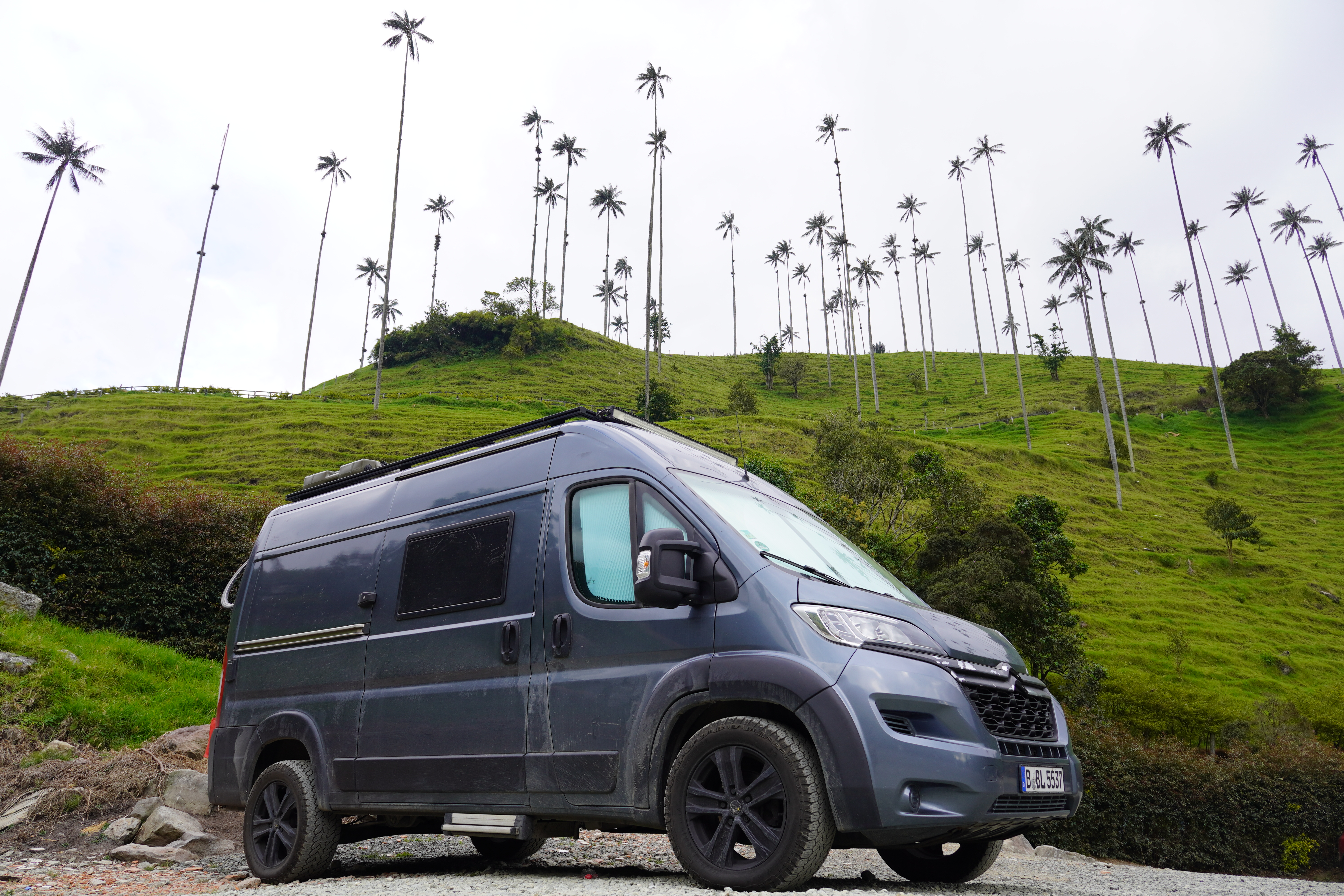 After a few days we passed the boarder to Colombia and tried to cover as many kilometres as possible, since the boarder region was supposed to be dangerous. After a few nights in really nice, but always gated sleeping spots, we made it to Salento. Salento is know for the coffee in the region around it as well as for the Cocoa valley which displays the national tree of Colombia, the wax palm. The palm can grow up to 60m of height and (unlike its normal habitat in the jungle) in the Cocoa valley a lot of them are standing free. The view is really beautiful and the palms are indeed very impressive. The whole cocoa valley is really touristic and somehow a big travel destination for all the colombians, but we could sleep at the main parking spot just under the palms and when all the tourists were gone, the place had a very different magical feeling. It does not happen too often, but here we could really enjoy the fact of sleeping in a van with an incredible sunset view from the bed.