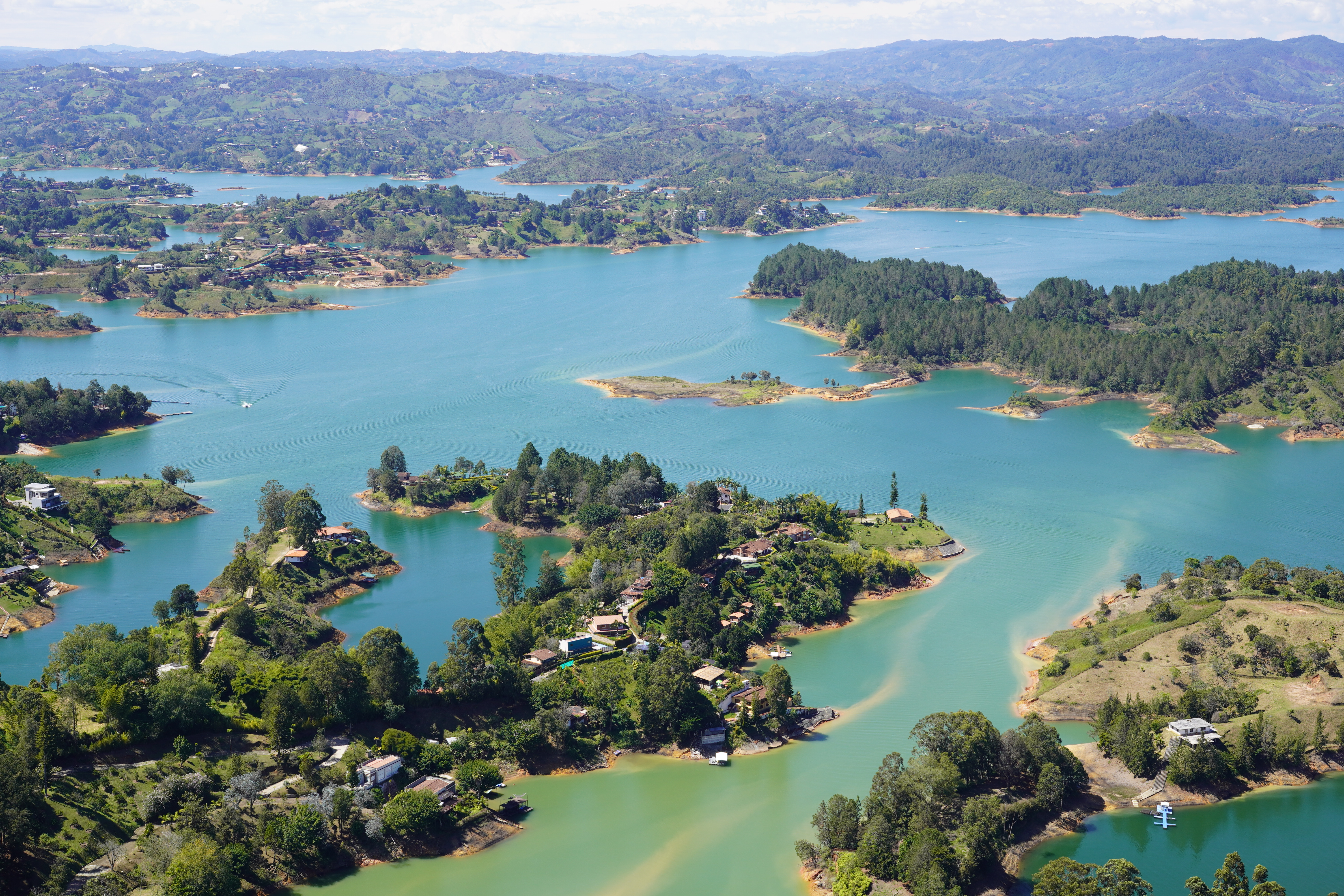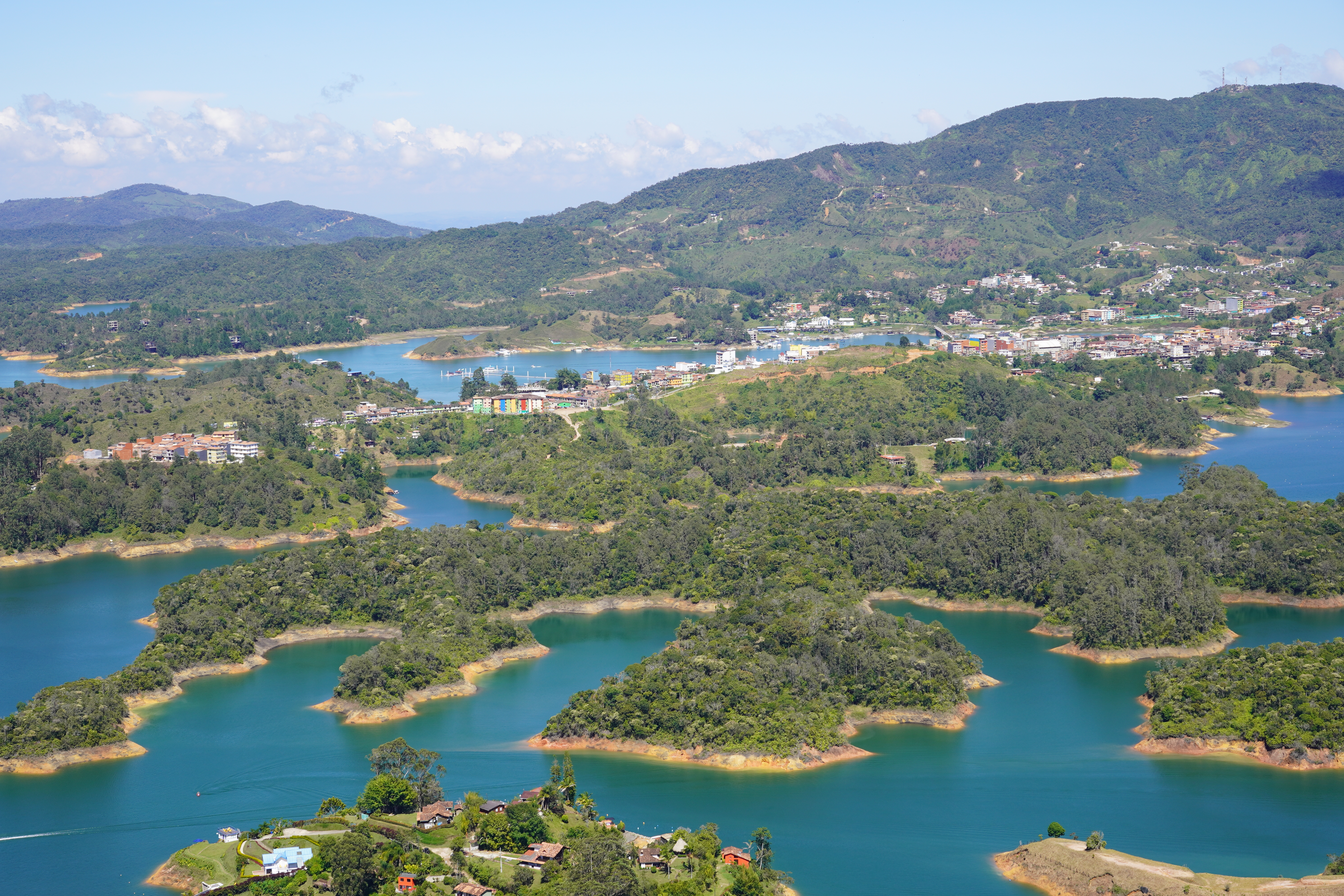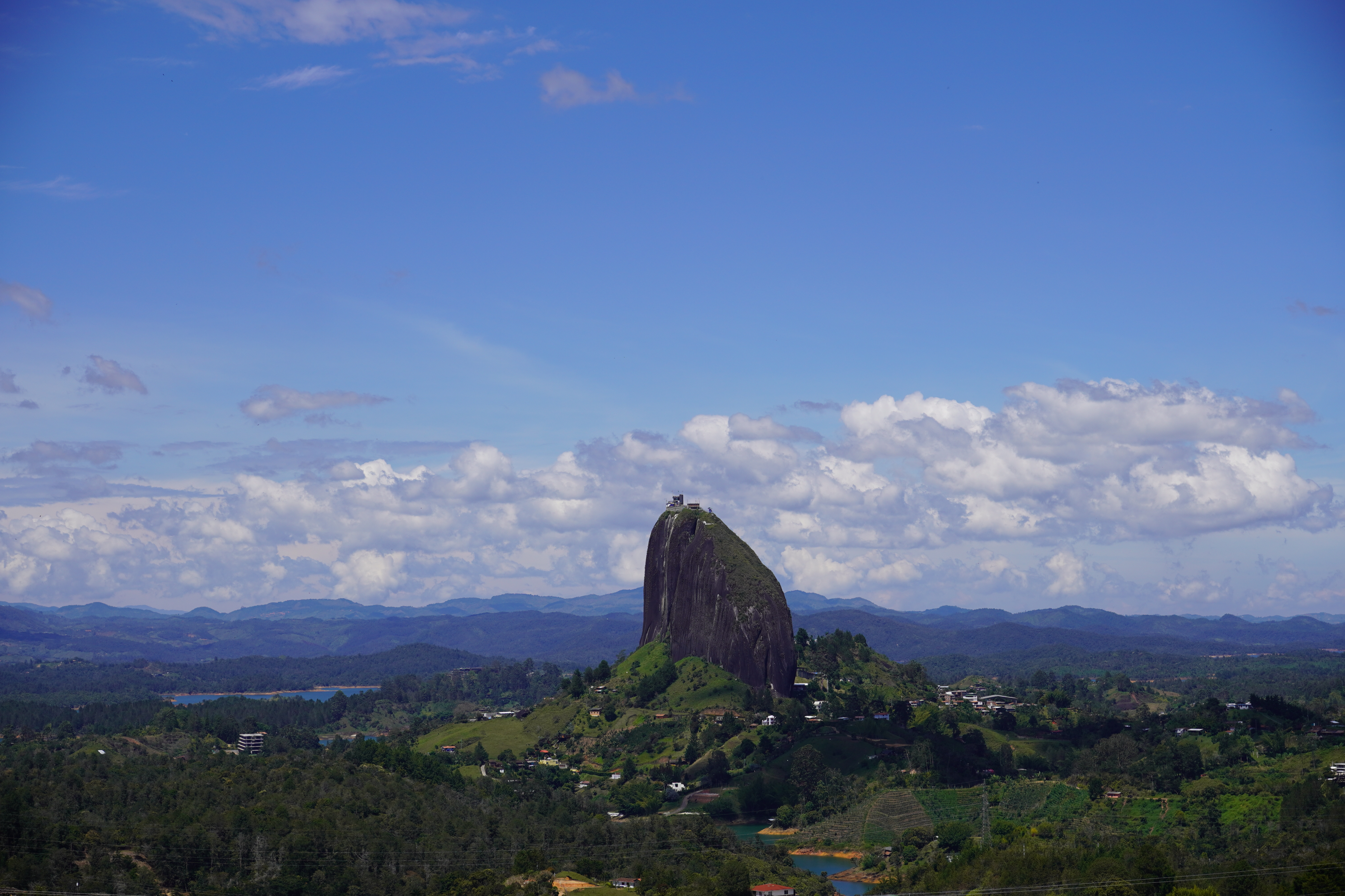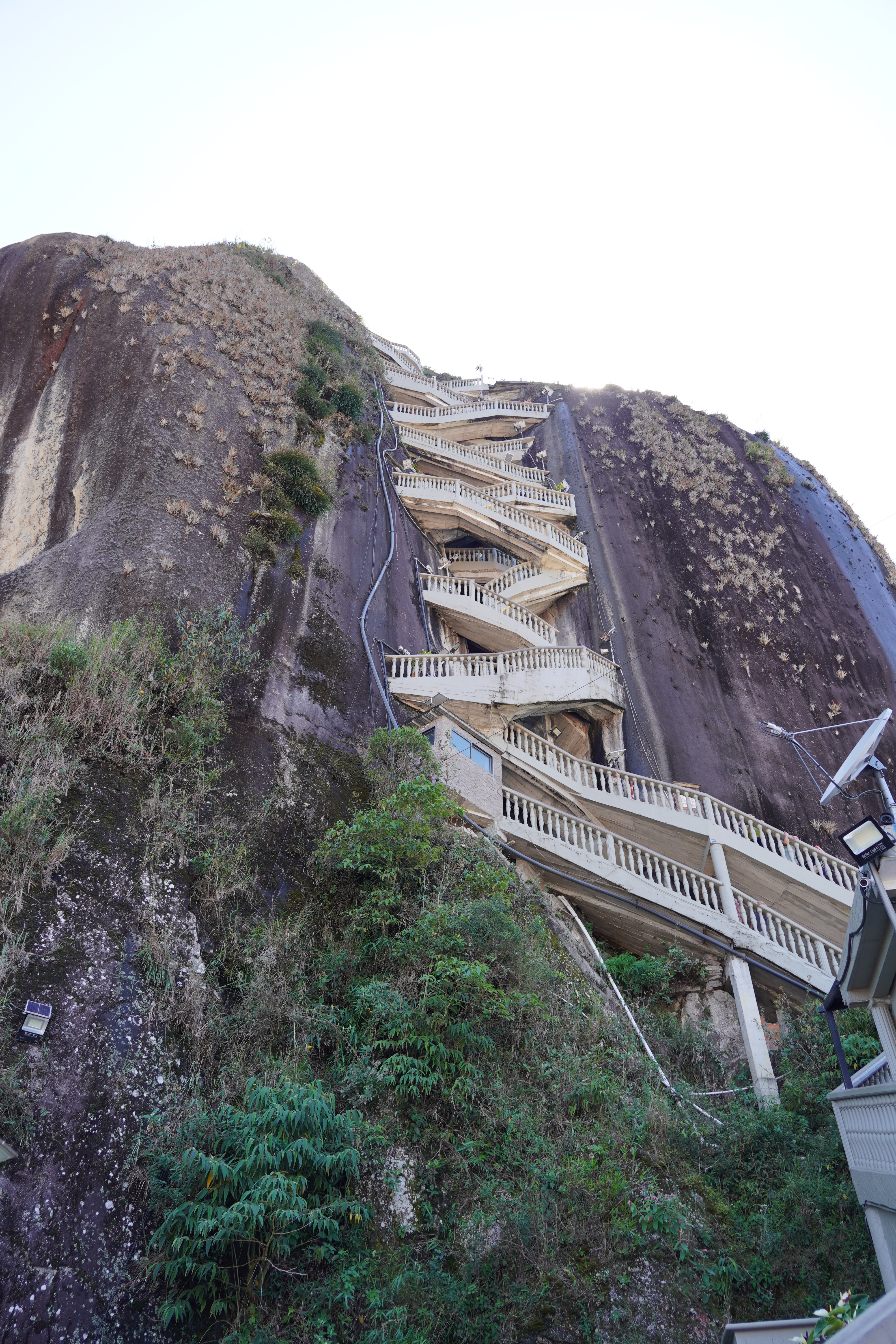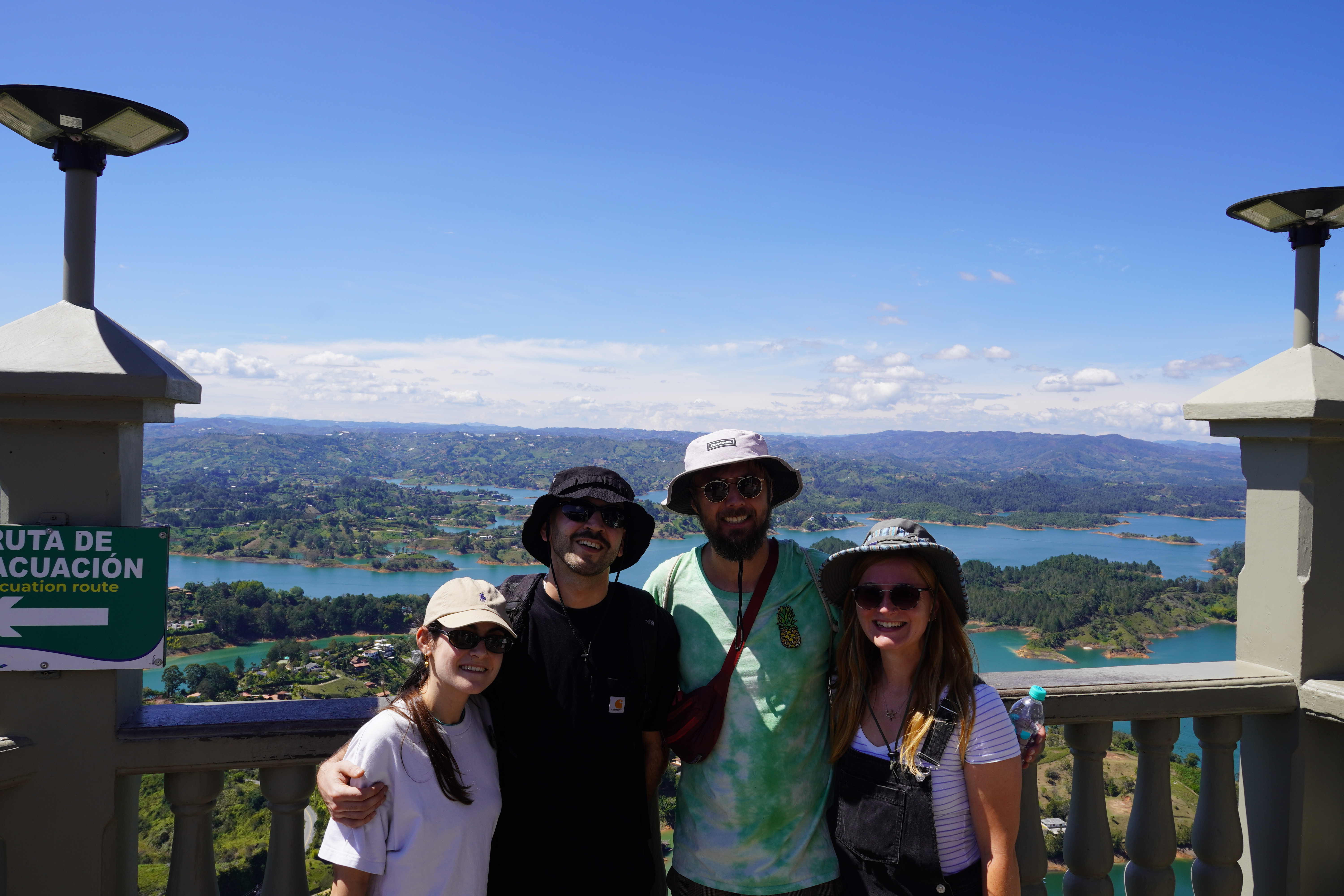 The following day we left Medellin in the direction of Guatape together with a Portuguese couple that we met on the city tour the previous day and that is living in Berlin as well. Our goal was the Piedra de Penal, a huge lava stone rock formation next to a big lake. Due to the nice conversation we had in the van I missed at least one important crossing in the direction of the rock, and we ended up on a tiny unpaved road through the hills, which was unplanned but rewarded us with a nice view of the rock. You can hike up the rock over about 700 steps that are built into a crack on the side. Since the rock is free standing we were rewarded with amazing views of the surrounding beautiful lake landscape.