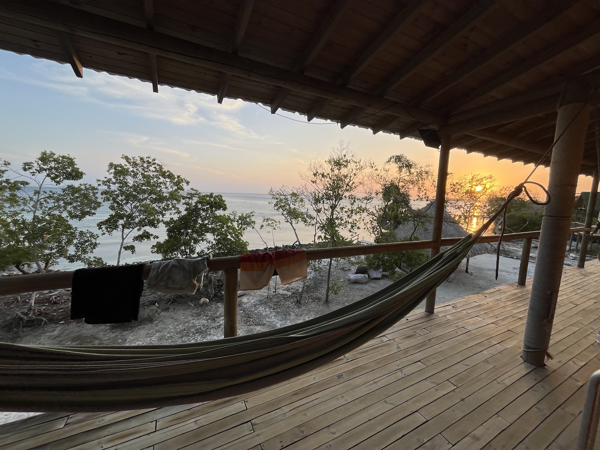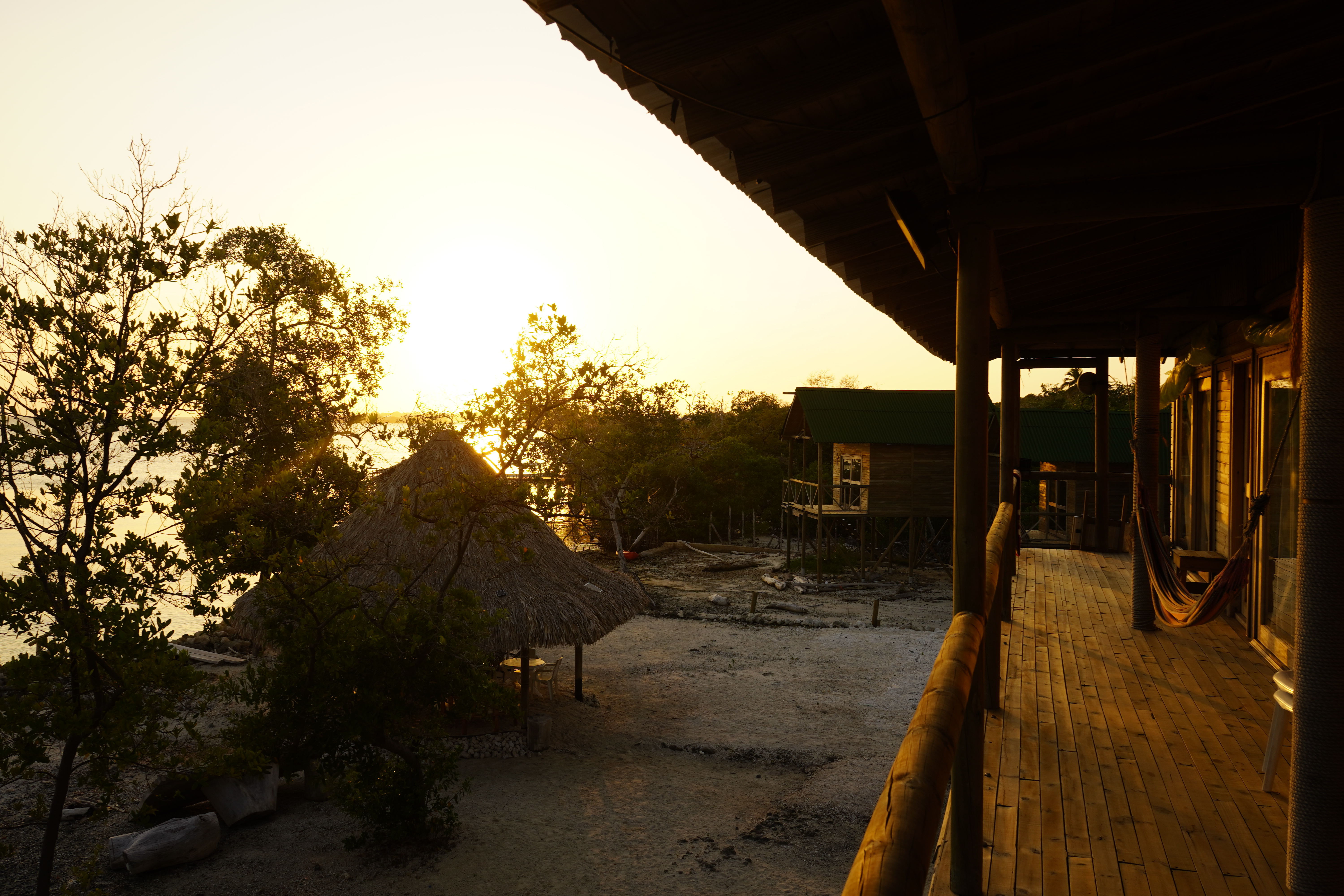 After a 2.5 h boat ride we arrived on the little island of Tintipan, where we had booked an Air bnb. It turned out that we were the only guests and the only other location we could reach without a boat was the hostel that was a little hike away from our Air bnb. As planed we did absolutely nothing there. We were sleeping long, reading in the hammock and dipping in the warm water once or twice a day. While we sat in the warm water left and right from us the pelicans we diving in the water to catch some fish. It was so pristine and quiet and so far from the noise of Cartagena. A few times we snorkeled also but beside a few fishes there was not much to see. On our third and last day we rented a little kayak and paddled up and down the island and after dark we did a little „tour“. For this tour the son of the Air bnb owner drove us with a boat in the mangroves and told us to jump in the pitch black water, while only the moon was providing some light. I was still hesitating, but Linda was already in the water and we started to see what we came for. The water around Lindas feet and hands was slightly glowing in a yellowy golden tone. I jumped in the water as well and the longer we waited the more intense the light became. If we moved our hands very slow we could see light sparkling in the water. It was beautiful and somehow mystic to see it, and it is a bioluminescense defense mecanism of plancton in the water. I remember that I had seen this years ago night diving in Thailand but Linda had never seen it before and we both agreed that this was the perfect ending of our relaxing few days in the Carribean. The next day we were picked up on the pier of the Airbnb and drove back to Cartagena where we checked in a hotel close to the Airport. The following day we would fly to Leticia in the Amazon rain forest for one week that turned out to be another highlight of the trip.