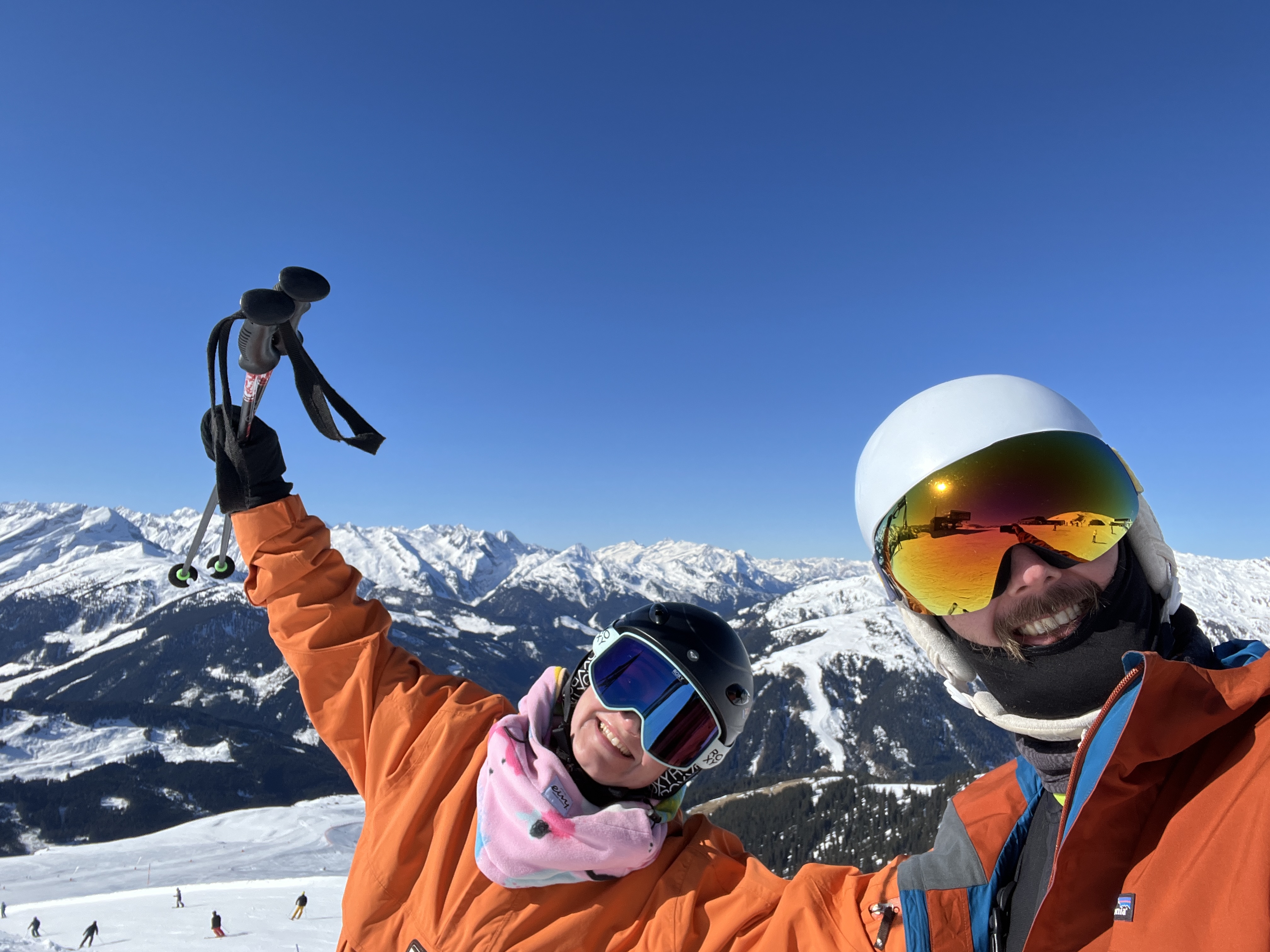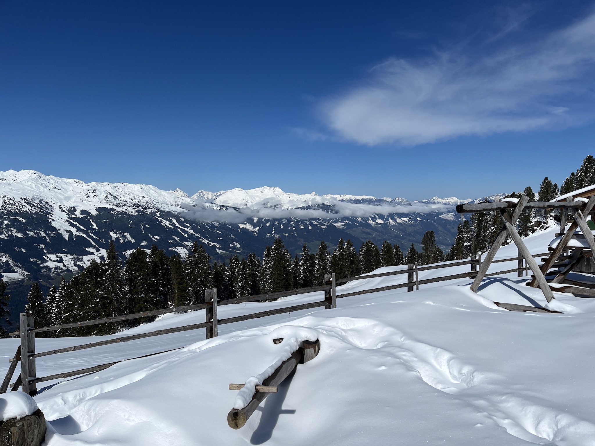 The next day we arrived in the Hotel „Das Gerlos“ and I did not know before that we booked into a very stylish design hotel. Never before have I seen a Hotel where everything was designed in one design language, from the free matches over the bath robe, to the design of the spa area. Everything looked perfect, but not only that. Everything also worked perfectly. The bed was incredibly comfy, we could park Rosi, right in front of the door, the ski slope ended directly at the hotel and the breakfast we got the next day was hands down the best breakfast I ever got in a Hotel. All in all we were unbelievably happy. We rented skis for Linda and hit the slopes the next morning, where we were surprised again: The snow was perfect. It had just snowed the last days and the conditions were pretty good. So we just enjoyed the perfect weather and great snow…. Of course the snow was not so perfect any more in the late late afternoon, which was the downside of the sun, but at this time we were already in the sauna and could see how the half drunken duchies tried to manoeuvre around the moguls on the slope. It was exactly what we had hoped for and we tried to put as many kilometres of slope as possible into each day. The first day we wanted to start easy but ended up skiing about 60km of slope.