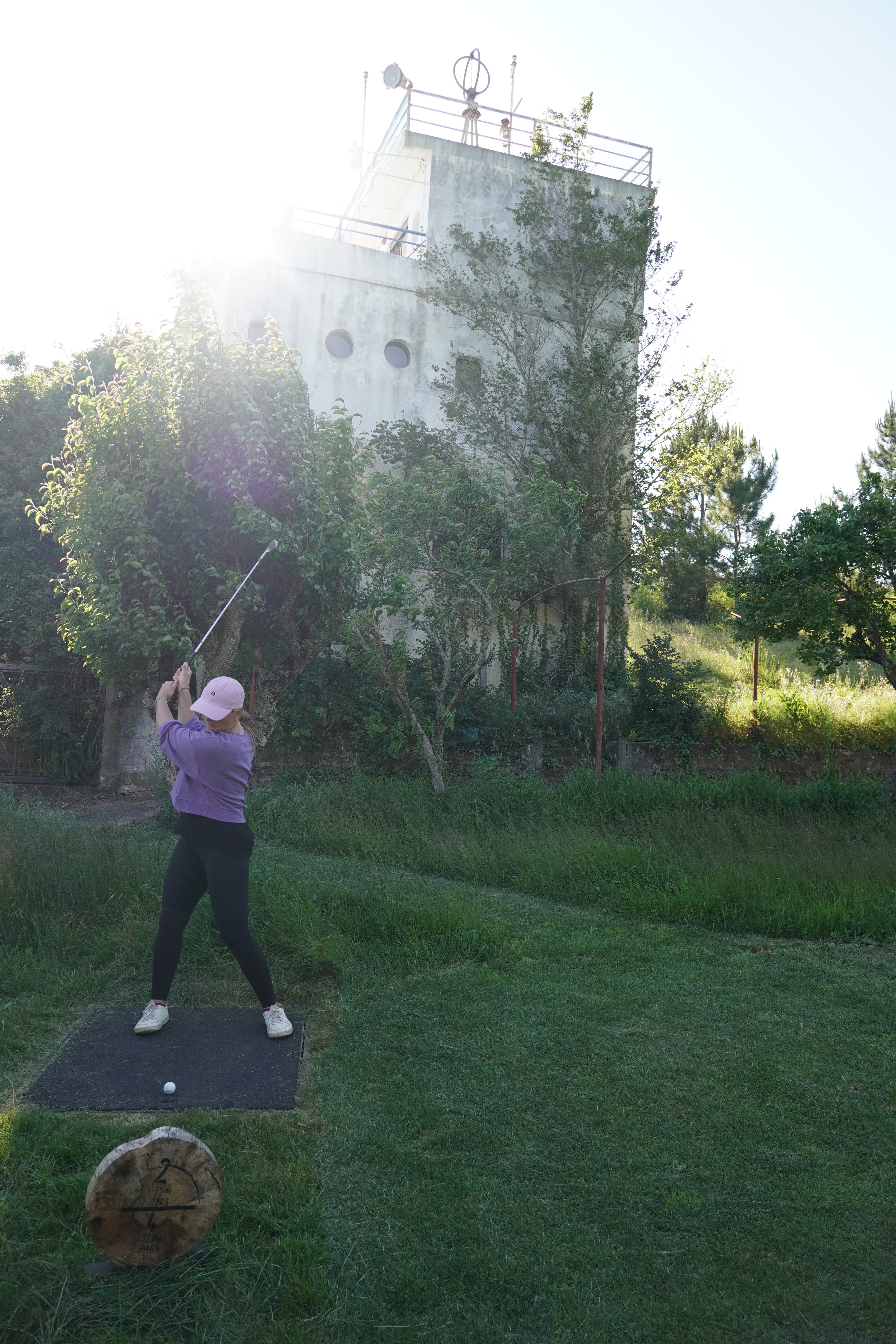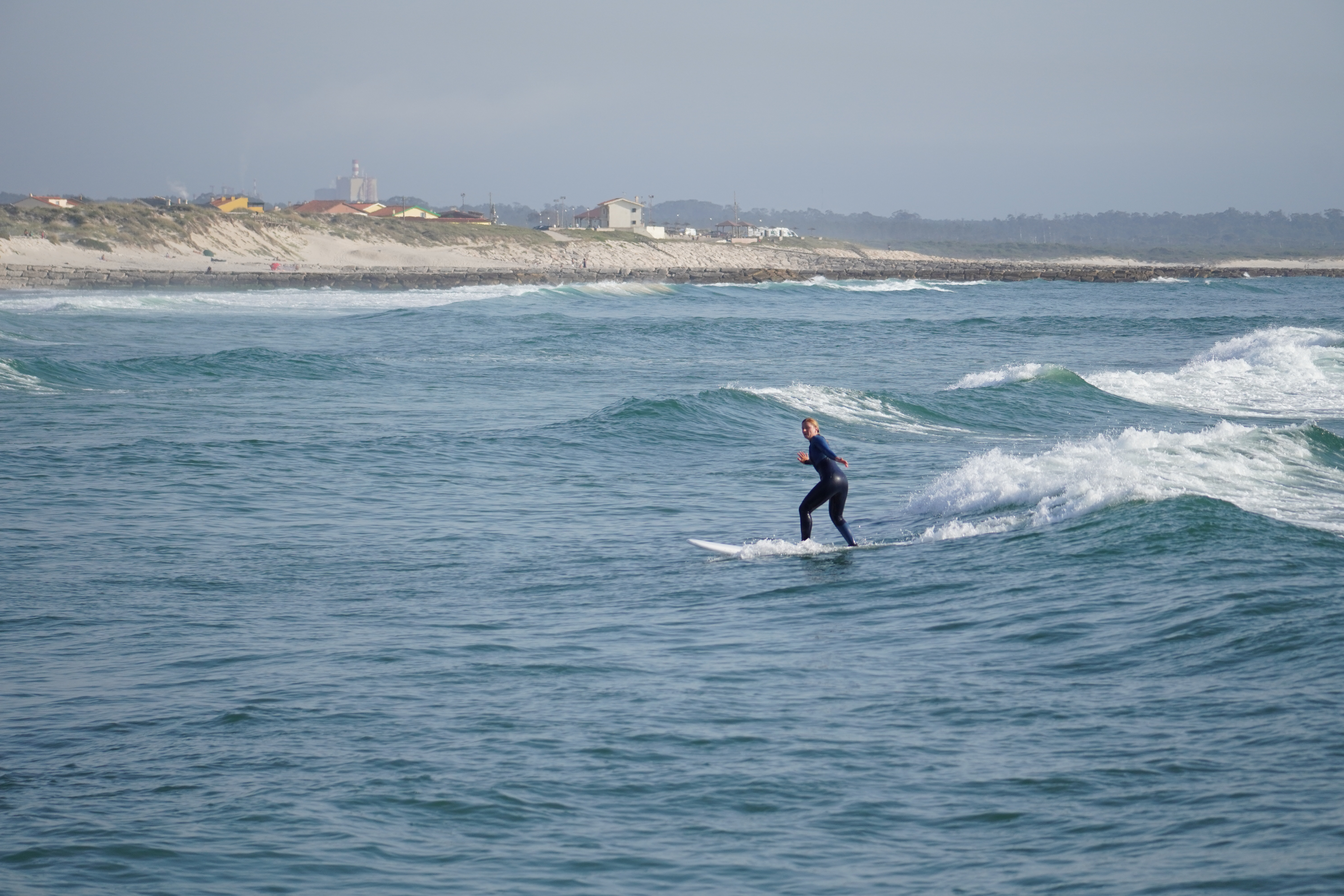 We stayed at Janga wonderland and this place it hard to describe. It is a huuuuge area with three big houses on it. In one house the owner couple lives. The former pro surfer Yoyo Terhorst and his girlfriend renovated this place. In the two other houses there are the rooms for the guests. The rooms are big and the furniture is pretty simple. Everything is a little run down, which is understandable, since it is hard to take care of such a big place. There is a pool, a billiard table, a gym, a sauna, a yoga room and even a six hole gold course…. It is insanely big. The sad thing for us was, that no-one was there. It was just us and one other couple. We were a little disappointed, since we had expected something else, but we tried to make the most of it. Every day we could book surf lessons and this is exactly what we did. Linda got a surf lesson every day and I took tow surf lessons and after that just took the transfer to the beach to go surfing. Here we had the benefits from the few people in the camp. Linda got a 1:1 coaching almost every day and the Waves in Figueira da fox were incredibly good. We had the best surf sessions since Mancora, Peru and made amazing progress. In that regard we really got what we were looking for. Also we used the billiard table and pool and even got a golf introduction. Linda turned out to be a natural talent at golfing and although I went crazy on my incredibly bad shots it was nice to try something else. We left Figueira da Fox with the feeling of great progress in surfing but not really satisfied in what we had imagined in a surf camp. Nevertheless it felt so good to have sore muscles on a daily base because of surfing and the regular yoga session we had done as well.
