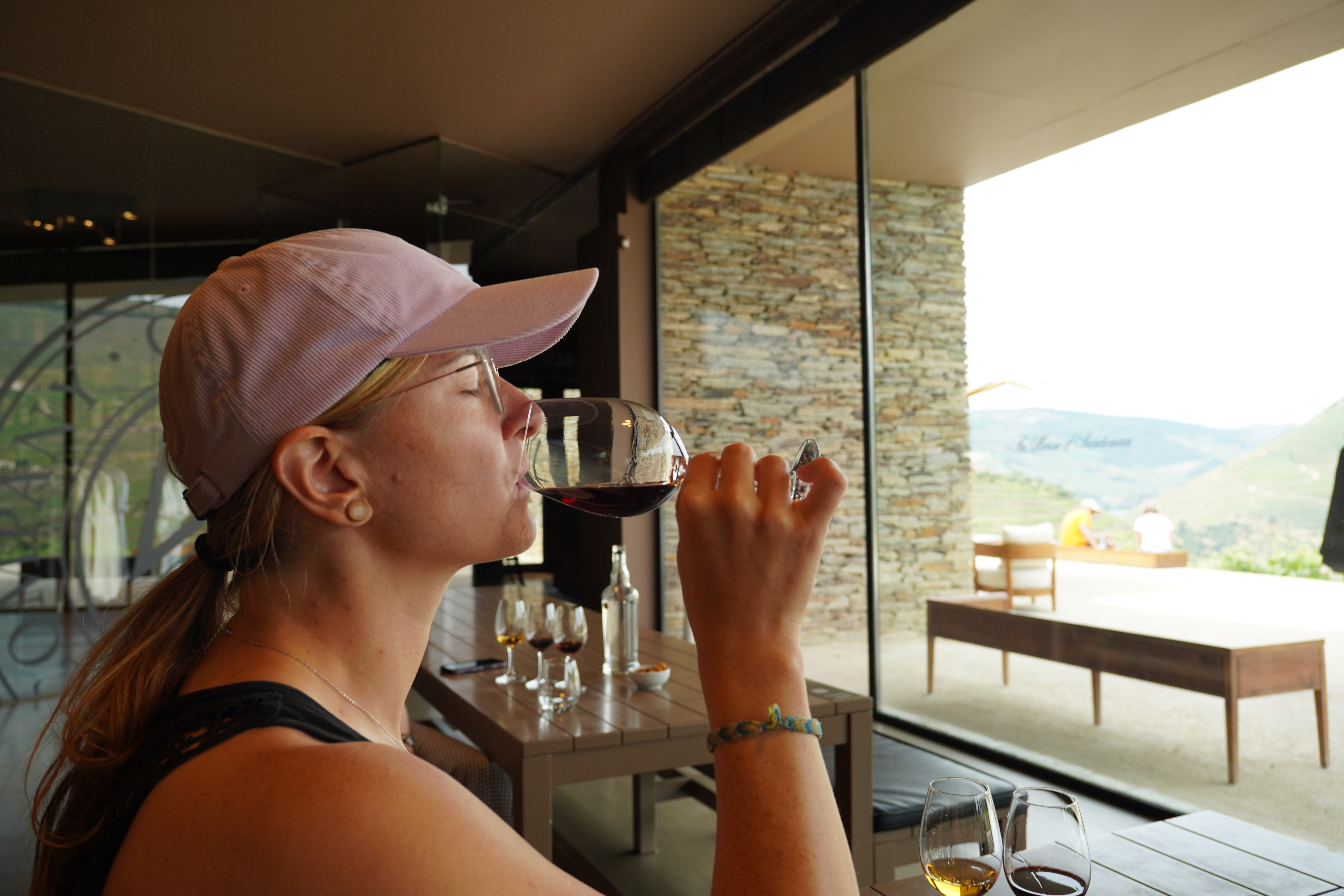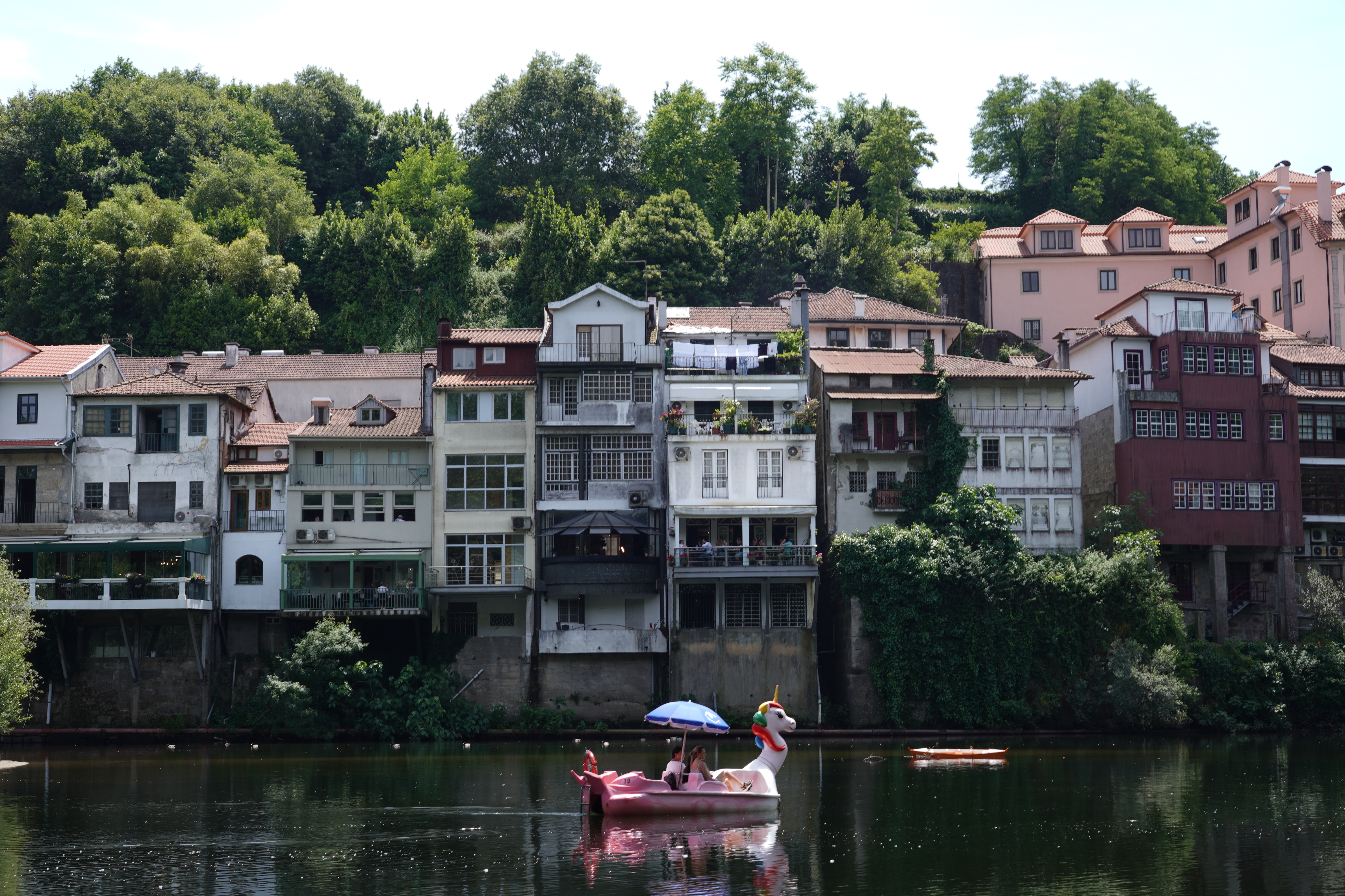 From there we wanted to visit Porto but somehow the only good spot to camp with Rosi was full and so we decided to do something that not a lot of travellers do in Portugal – we drove inland in the direction of the Douro valley. This is a huge wine area and the heart of the Portwine production of Portugal. On the way there we stopped in the little town of Amarante, which has a beautiful old city center around an old bridge and we had to try the local specialty of penis shaped cakes, which is somehow a mix of the rural Portuguese humor and the old beliefe that eating it supports your fertility. Further in the direction of the Douro valley we found one of our most amazing free camp spots in Europe. It was down in a valley next to a little river with a tiny beach protected by the trees. We camped there for a nights could cook outside and even go for a skinny dip in the small river.