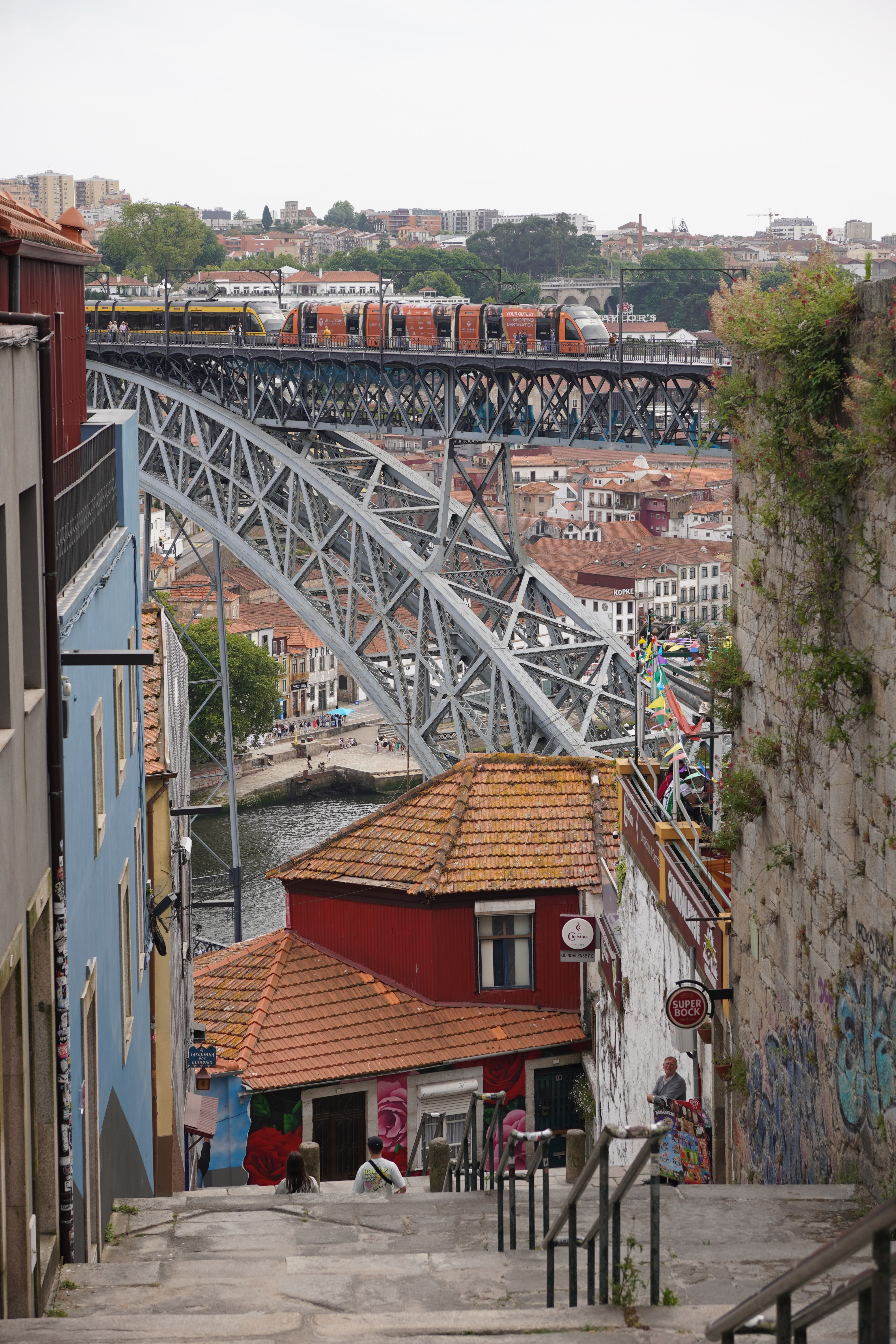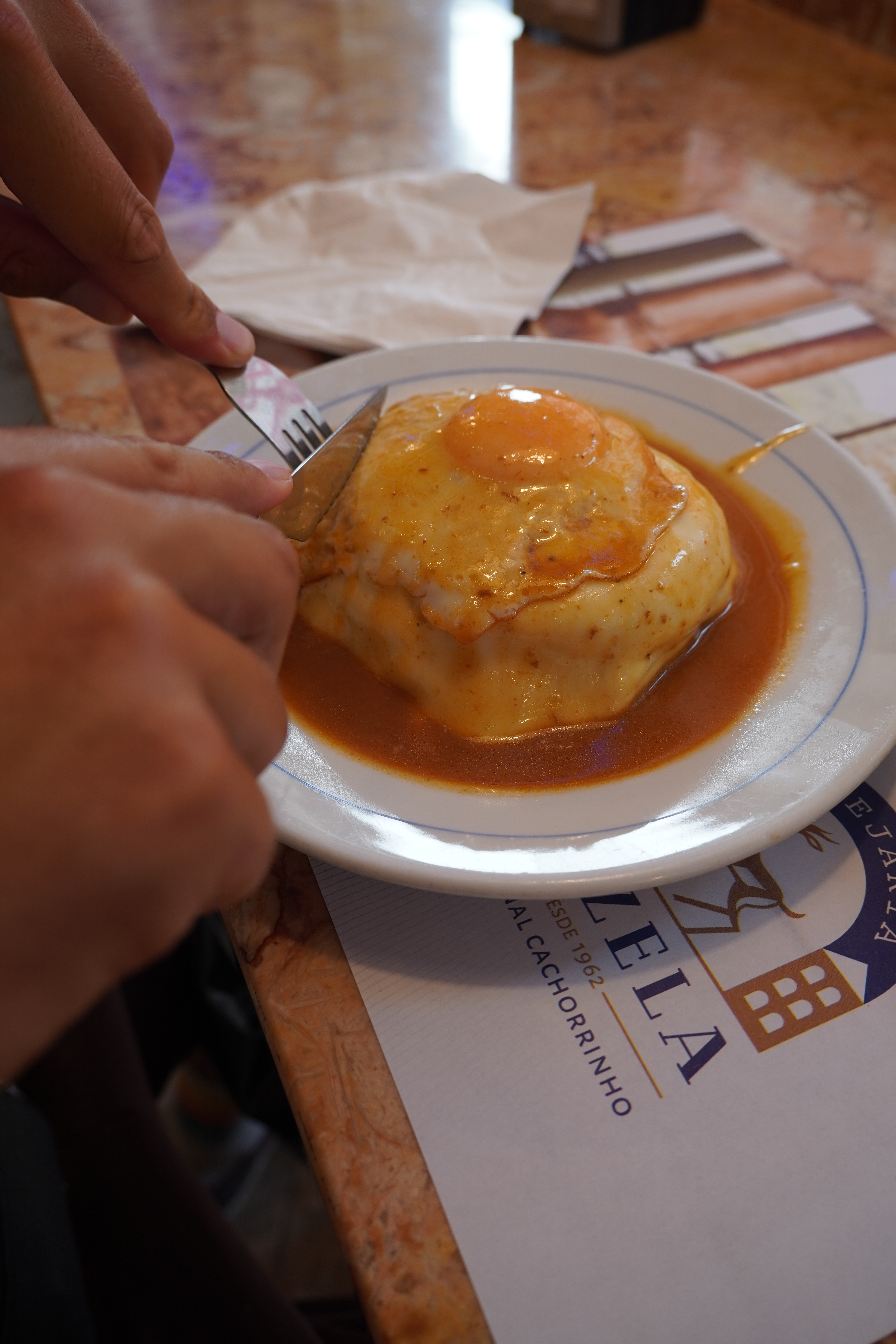 The next morning we drove to the Quinta do Seixo, where Linda had booked a tour for us. This wine yard is the place where the famous Sandeman portwines are being produced, the area looks a lot like the Mosel region in Germany and the highly motivated guide gave us an amazing tour through their production facilities which ended with a nice wine tasting. I was never a fan of Portwine, but I have to say that I really enjoyed the wines we tested here. From the wine tasting we drove straight to Porto we we now got a spot at the nice private camping behind a little mechanic out of town. The next morning we took an uber into Porto and did a nice walking tour through the city. In the beginning we were not so convinced, but as soon as we entered the Mercado de Bolhão we were mesmerized. It was an old market that was renovated and offered everything from portugal – fresh as well as canned. Of course there were a lot of toursists there but the whole vibe was still great. We tried cheese, sardines, oysters and of course portwine. Happy and completely filled we got closer to the river and Porto became more and more beautiful. There are a lot of the old houses with colourful ceramic tiles on the front. The city is also incredibly full of tourists but we still enjoyed it and I even got to try the famous local dish Francesinha, which is a sandwich with meat, ham, cheese and an egg. All drowned in a heavy gravy. Not light at all, but still an experience.