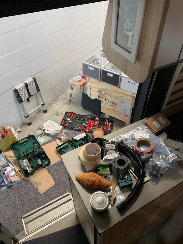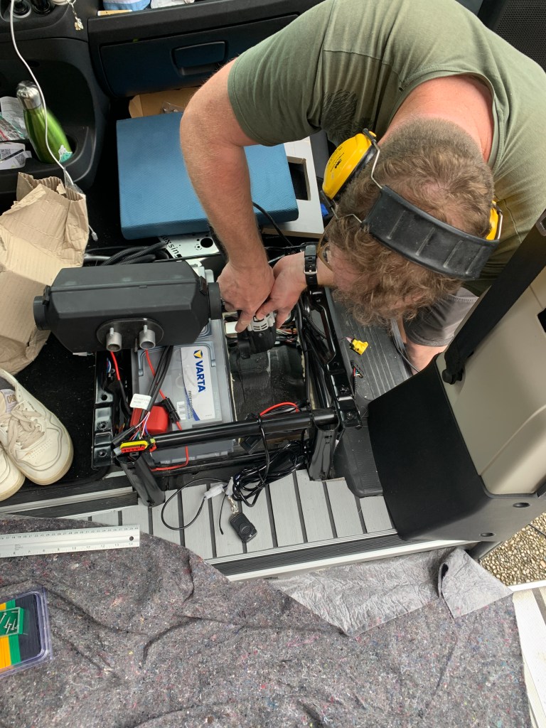 Rosi has a very well functioning gas heater, but gas is not so easy to get in south america, and we need it to cook as well. Sinde we will travel to colder places, where we need heating we wanted to install a Diesel heater as well, so I just bought one and than found out that it is again really expensive to get it installed. But my friend Frederik said he could help and he did! I could have not managed without him and his tools. We built in the Diesel heater ourself and now can rely on two separate independent heating systems, that shall bring us through the coldest winters. Thank you again, Frederik! At the same time Frederik helped us to install a really helpful drawer under the cabinet bench.