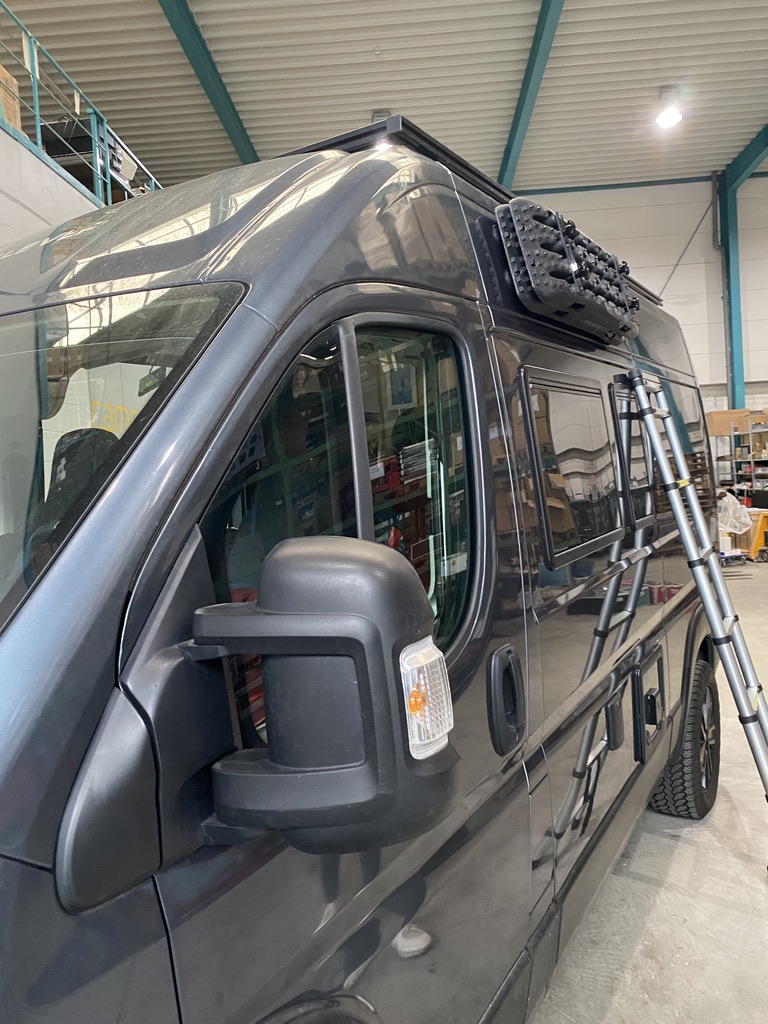 We found the perfect option with the PushRack bike rack from Push components, that we mounted ourself thanks to their perfect online tutorial and so far we are pretty happy with it. The clue is that the bikes are mounted vertically to the right backdoor. That makes the vehicle longer, but does not affect the ability to climb steeper hills. Let’s see how it will survive this trip.