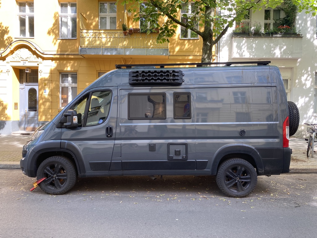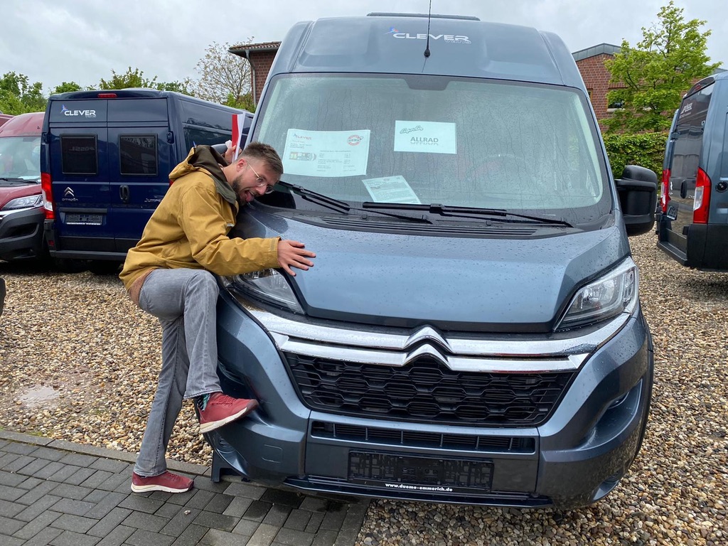 The Citroën Jumper was built into a camper van by Clever. It is the Clever Tour Model 540 from 2020 with some extras, I would have never chosen myself (like paying extra for a coated bumper) The van was an exhibition model and that is also the reason for the extras… like bright red leather seats… (who does that?) But when I talked to a friend abbot the van she said: „Cute, rose seats, you could call her Rosi“. Truth be told the seats are not rose, they are red, bright dark red, but I took the name proposal, and from that point on the van was called Rosi.