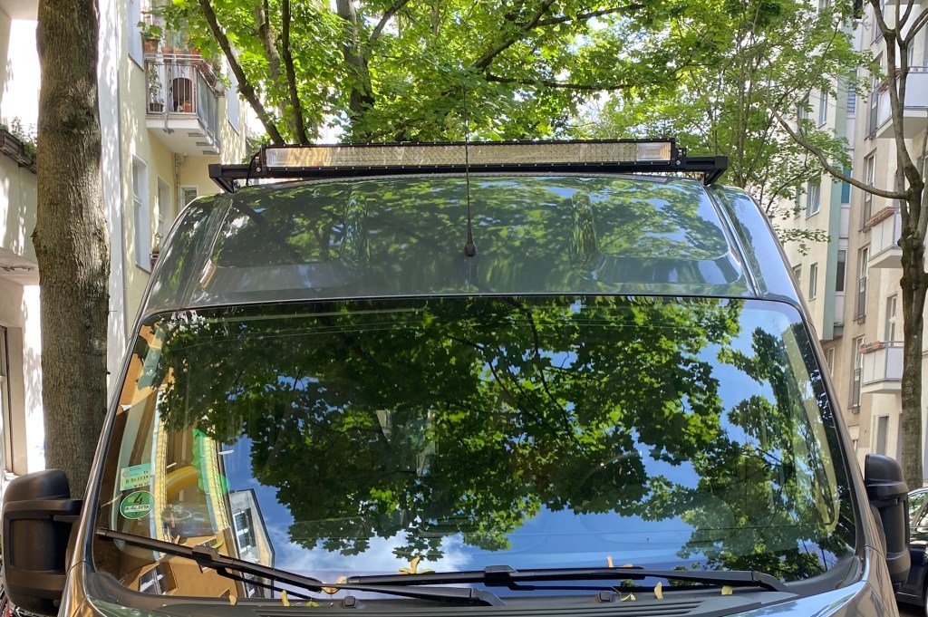 I also wanted to have a badass lightbar, if we arrive on a camp ground at night or if we drive in the snow…. also it looks cool. It was pretty easy to install and can light up a full camp ground.